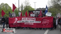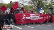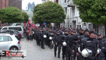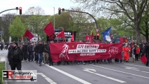 Um 18:26 Uhr setzte sich ein von einer Privatperson unter dem Tenor „Krieg und Krise haben System – G20 entern, Kapitalismus versenken! Heraus zum revolutionären 1. Mai!“ angemeldeter Aufzug ausgehend vom Bahnhof Sternschanze in Bewegung. Zu diesem Zeitpunkt nahmen etwa 1.300 Personen an dem Aufzug teil. Im weiteren Verlauf stieg die Zahl der Teilnehmer weiter an. In der Spitze begleiteten insgesamt etwa 2.500 Personen den Aufzug bis zum Schlusskundgebungsort am Jungfernstieg. Dort beendete der Versammlungsleiter gegen 20:31 Uhr die Versammlung. Vereinzelt kam es zur Zündung pyrotechnischer Gegenstände/Rauchkörper und zu Vermummungen. Im Verlauf der Schlusskundgebung warf eine Person im Bereich Jungfernstieg einen pyrotechnischen Gegenstand in Richtung der Polizeibeamten. Diese Person wurde daraufhin vorläufig festgenommen. Es handelt sich hierbei um einen 26-jährigen Deutschen. Ansonsten verlief die Veranstaltung störungsfrei.