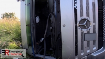 Bis 9.20 Uhr heute Morgen dauerten die Bergungsarbeiten im Autobahndreieck Neuss-Süd nach einem Lkw-Alleinunfall gestern, bei dem sich der Fahrer leichte Verletzungen zuzog.