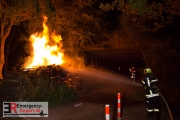 Die Feuerwehr Neuss wurde am Sonntagmorgen gegen 03:00 Uhr auf die Kölner Straße im Neusser Augustinusviertel alarmiert. Anwohner hatten ein Feuer in einem Waldstück an der Autobahn bemerkt. Bei Eintreffen der Feuerwehr standen auf ca 20 qm² gestapelte Baumstämme im Vollbrand. Das Feuer begann bereits auf einen Baum überzugreifen. Die Feuerwehr konnte durch einen schnellen Löschangriff eine weitere Ausbreitung verhindern.