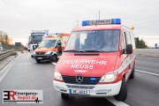 Die Feuerwehr Neuss wurde am 07.12.2015 gegen 09:15 Uhr zu einem schweren Verkehrsunfall auf die A57 in Fahrtrichtung Krefeld alarmiert. Kurz hinter der Anschlusstelle Büttgen hatte der Fahrer eines Kleinlasters, mit dem er zwei PKW transportierte, aus ungeklärter Ursache das Stauende übersehen und war auf einen Sattelzug aufgefahren. Der Fahrer wurde im Fußraum seines Fahrzeuges eingeklemmt. Die Feuerwehr befreite ihn mittels hydraulischem Rettungsgerät aus seinem Fahrzeug. Der Patient wurde durch den Rettungsdienst unter Begleitung eines Notarztes in ein Krankenhaus transportiert.