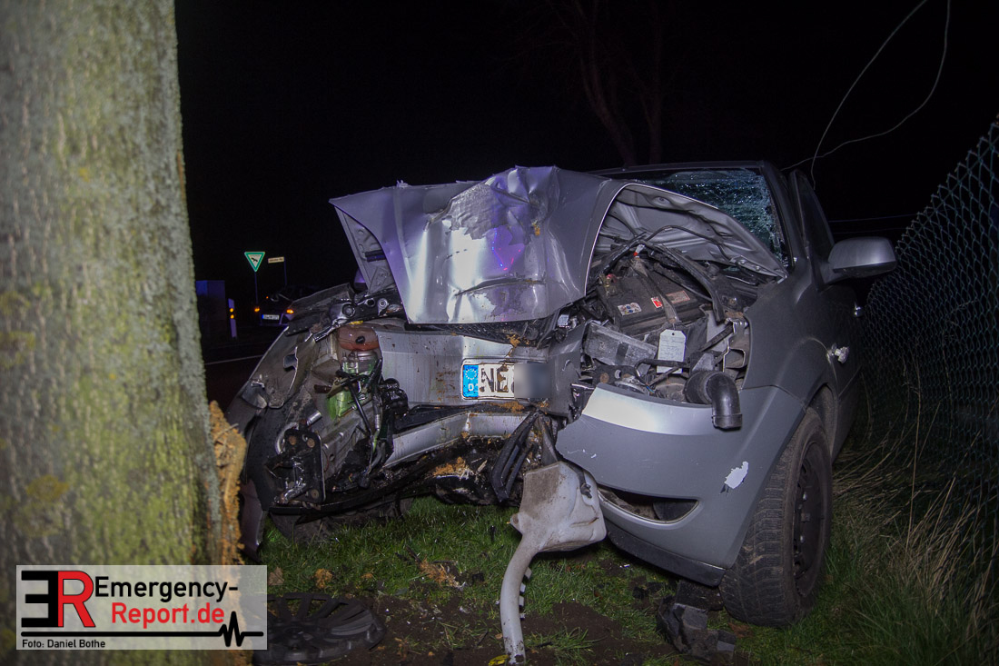 Dormagen-Gohr (ots) – Am Sonntag, den 08.03.2015, gegen 00:25 Uhr, befuhr ein 18-jähriger aus Rommerskirchen mit seinem PKW die Bundesstraße 477 (Bergheimer Straße) aus Richtung Neuss kommend in Richtung Rommerskirchen. Kurz hinter der Einmündung zum Gubisrather Weg kam der 18-jährige nach links von der Fahrbahn ab und kollidierte mit einem Baum. Durch die Kollision wurde der PKW im Frontbereich stark deformiert. Der 18-jährige wurde zur stationären Behandlung in ein Krankenhaus gebracht, Lebensgefahr besteht nicht. Die Ermittlungen zur Unfallursache dauern an. (pi)