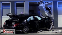 Mettmann (ots) – Am frühen nächtlichen Donnerstagmorgen des 09.04.2015, gegen 02.40 Uhr, beobachtete eine Streifenwagenbesatzung der Velberter Polizei einen schwarzen PKW Mercedes S350, der durch die Innenstadt von Velbert-Mitte fuhr. Am Steuer der großen Luxuslimousine saß ein auffallend junger Mann. Deshalb entschlossen sich die Beamten das Fahrzeug zu kontrollieren, als dieses von der Poststraße in die Offerstraße einbog. Doch kaum leuchteten vom Dach des Streifenwagens deutliche Anhaltezeichen, beschleunigte der Mercedes seine Fahrt über die innerstädtische Straße. Als der hinterherfahrende Streifenwagen daraufhin auch noch das Blaulicht einschaltete, um auf sich aufmerksam zu machen, schaltete der Mercedes-Fahrer seine Fahrzeugbeleuchtung komplett ab. Gleichzeitig wurde der S350 offenbar mit starker Motorleistung beschleunigt und raste mit weit mehr als 100 km/h davon. Am Ende der Offerstraße, wo diese in die quer verlaufende Noldestraße mündet, verlor der Fahrer des Mercedes, gerade noch im Sichtbereich der Beamten, die Kontrolle über die schwere Limousine. Trotz starker, ABS-unterstützter Notbremsung auf den allerletzten Metern, überquerte der PKW die Noldestraße und deren Gehweg in Höhe des Hauses Nr. 5. Mit großer Wucht prallte die Limousine dann in die Hauswand und kam mit der Fahrzeugfront in Praxisräumen des Gebäudes zum Stillstand.