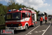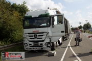 Eine 67-jährige Neusserin befuhr mit ihrem Auto die St. Antoniusstraße aus Rosellen kommend in Richtung Schlicherum. An der Kreuzung zur Kreisstraße 30 kam es, aus bislang ungeklärter Ursache, zum Zusammenstoß mit einem querenden Sattelschlepper, der in Richtung Hoisten unterwegs war. Durch den Aufprall überschlug sich der Pkw und kam auf dem Dach zum Liegen. Beide Insassinen mussten durch Rettungskräfte aus dem Wagen befreit werden. Die 89-jährige Beifahrerin erlag kurz darauf ihren schweren Verletzungen. Ein Rettungshubschrauber brachte die 67-Jährige in ein Krankenhaus. Der 56-jährige Lkw-Fahrer aus Neuss erlitt einen Schock.