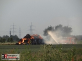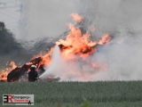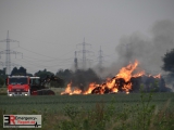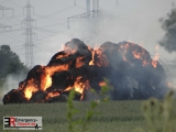 Um 19.03 Uhr erreichten mehrere Notrufe die Feuerwehrleitstelle und meldeten ein Feuer am Pfarrer-Holl-Weg in Angermund. Eine rund 6 Meter hohe Strohmiete brannte auf einer Länge von über 30 Metern. Die Feuer- und Rettungswache Flughafenstraße, die freiwillige Einheit aus Angermund, zwei große Tanklöschfahrzeuge sowie Sonderfahrzeuge der Technikwache Posener Straße eilten zur Brandstelle und setzen einen massiven Löschangriff ein. Mit einem Teleskoplader der Feuerwehr, bestückt mit einer Heugabel, zogen die Einsatzkräfte das brennende Heu auseinander. Nur so konnte das gepresste Heu weiter gelöscht werden. Zwei Traktoren verteilten das Brandgut weiter auf der Wiese. Mit C-Löschrohren und Wasserwerfern gelang es den Einsatzkräften alle Glutnester zu ersticken. Rund 50 Strohballen wurden vernichtet. Für die rund 35 Feuerwehrleute dauerte der Einsatz vier Stunden. Die Kriminalpolizei hat Ermittlungen aufgenommen.
