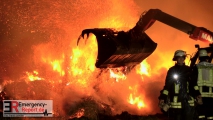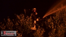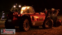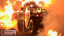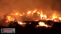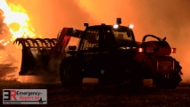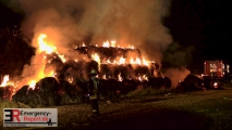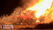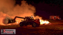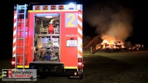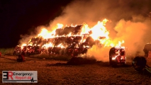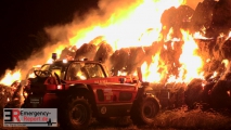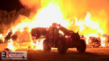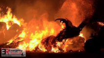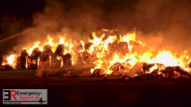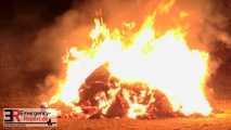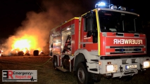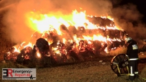Um 00.53 Uhr, wurde die Feuerwehr nach Kalkum zum Gerichtsschreiberweg gerufen. Rund 70 Strohballen standen lichterloh in Brand. Die Einsatzkräfte aus Kalkum und die der Feuerwache Flughafenstraße konnten den Feuerschein auf der Anfahrt bereits bestätigen und forderten Verstärkung an. Aufgrund der starken Rauchentwicklung musste zunächst die Danziger Straße von der Polizei gesperrt werden. Abermals setzten die Brandbekämpfer mehrere Löschrohre und Wasserwerfer ein und zogen mit dem Teleskoplader und zwei Traktoren das brennende Heu auseinander, um die Strohballen löschen zu können. Diese kräftezerrenden Arbeiten, die teilweise mit Harke, Schaufel und Dunghaken durchgeführt wurden, dauerten mehrere Stunden. Das Löschwasser musste im Pendelverkehr mit Tanklöschfahrzeugen zum Brandort gebracht werden.