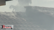 Die erste Lageerkundung durch Einsatzleiter Philipp Schroeder ergab den Vollbrand eines größeren Flachdachanbaus im rückwärtigen Bereich einer Doppelhaushälfte. Die Flammen hatten zusätzlich bereits auf das Erdgeschoss des Haupthauses und dessen Dachkonstruktion übergegriffen. Ebenfalls betroffen waren beide angrenzenden Nachbarhäuser. Hier hatte sich der Brand auf den Dachstuhl bzw. die angrenzende Garage ausgeweitet. Eine zunächst vermutete Menschenrettung – der Aufenthaltsort des Eigentümers wurde im Gebäude vermutet – konnte glücklicherweise bereits nach wenigen Augenblicken entkräftet werden.