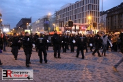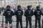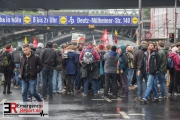 In den Mittagsstunden setzte sich ein Aufzug mit mehreren tausend Gegendemonstranten vom Heumarkt über die Deutzer Brücke bis zum Ottoplatz in Bewegung. Im Bereich des Deutzer Bahnhofs hatten Demonstrationsteilnehmer zwei Bühnen für Musik- und Redebeiträge aufgebaut. Zur gleichen Zeit bewarfen etwa 150 Gegendemonstranten die Beamten auf dem Auenweg. Die Polizisten setzten daraufhin Schlagstöcke und Pfefferspray ein. Etwa zwei Stunden später wurde aus einer Gruppe von etwa 20 vermummten Personen heraus die Seitenscheibe eines Streifenwagens eingeworfen. Hierbei erlitt ein Beamter, der auf der Deutzer Freiheit ohne Schutzausrüstung zu Verkehrsmaßnahmen eingeteilt war, leichte Schnittverletzungen. Im Bereich der Opladener Straße/Deutz-Mülheimer Straße sperrte die Polizei die Zufahrt zur Versammlung „Köln 2.0“. Als die Kräfte gegen Ausschreitungen zwischen rechten und linken Demonstranten einschritten, richtete sich die Gewalt plötzlich gegen die dort eingesetzten Beamten. Nach kurzem Einsatz des Wasserwerfers beruhigte sich die Lage. Die um 15:30 Uhr auf dem Barmer Platz gestartete Kundgebung „Köln 2.0“ wurde um 17.40 Uhr vom Versammlungsleiter beendet. Gegen 17 Uhr wurde ein spontaner Aufzug vom Ottoplatz bis zum Kölner Hauptbahnhof angemeldet, der ohne größere Zwischenfälle seinen Zielort erreichte. Neben den Demonstrationen fanden noch weitere Großveranstaltungen in Köln-Deutz statt, unter anderem ein Ligaspiel der Köln Haie sowie eine Veranstaltung im Tanzbrunnen. Bereits frühzeitig hatte die Polizei Köln Kontakt mit den Verantwortlichen aufgenommen, um die Einschränkungen für die Gäste so gering wie möglich zu halten. Polizeipräsident Wolfgang Albers bedankte sich noch am Abend bei allen Beamten, die einen komplexen Einsatz zu bewältigen hatten. Er betonte: „Ich bin froh, dass ein Großteil der Gegendemonstranten meinem Appel gefolgt ist und ein friedliches Zeichen gegen rechte Gewalt und Fremdenfeindlichkeit gesetzt hat“. (af)
