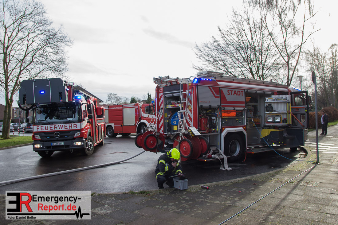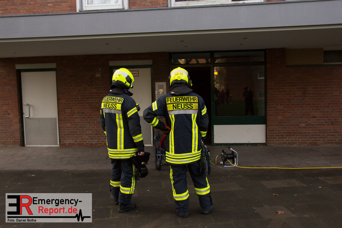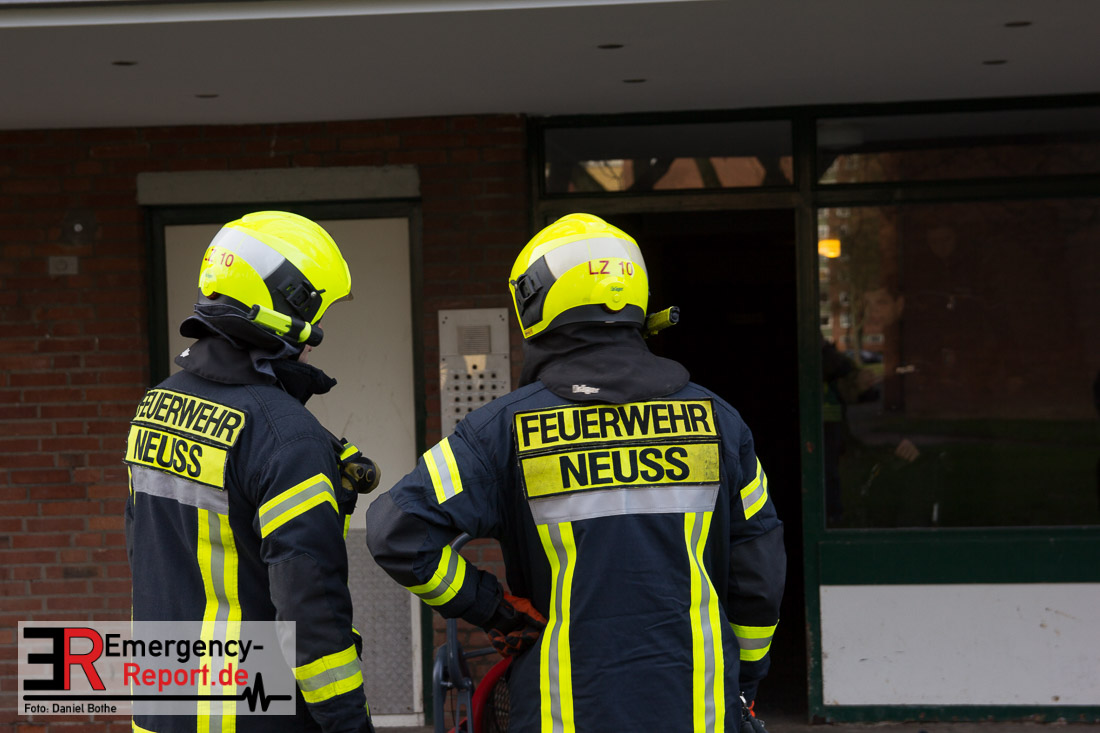 Die Feuerwehr Neuss wurde am 31.12.2015 gegen 11:10 Uhr auf die Wilhelm-Leuschner-Straße in den Stadtteil Weckhoven alarmiert. Anrufer meldeten eine verrauchte Wohnung im 1. OG eines Hochhauses. Bei Eintreffen der Feuerwehr wurde festgestellt, dass es auf einem Balkon gebrannt hatte und das Feuer bereits von selbst erloschen war. Die Wohnung sowie das Treppenhaus waren leicht verraucht. Die Feuerwehr löschte die Fensterfront zur Sicherheit ab und setzte Hochleistungslüfter ein um das Treppenhaus zu entrauchen. Eine Person wurde durch den Rettungsdienst betreut. Die Person erlitt nach ersten Informationen eine leichte Rauchgasvergiftung. Ob eventuell Silvesterfeuerwerk das Feuer ausgelöst hat muss durch die Polizei ermittelt werden.
