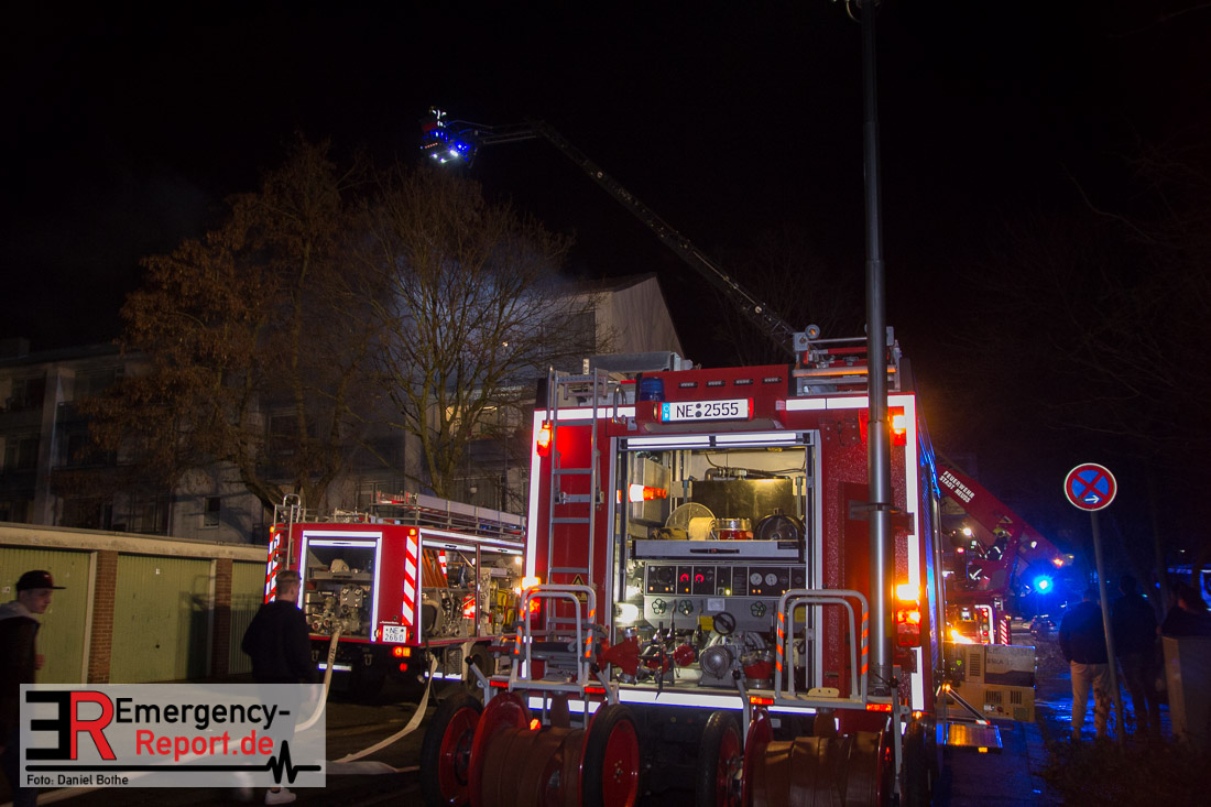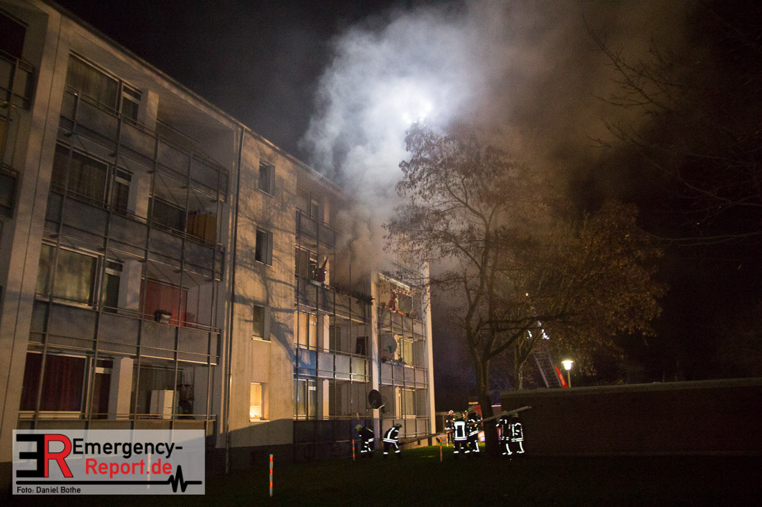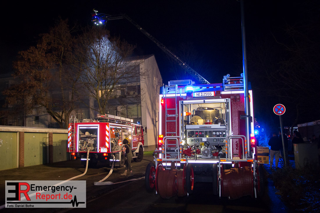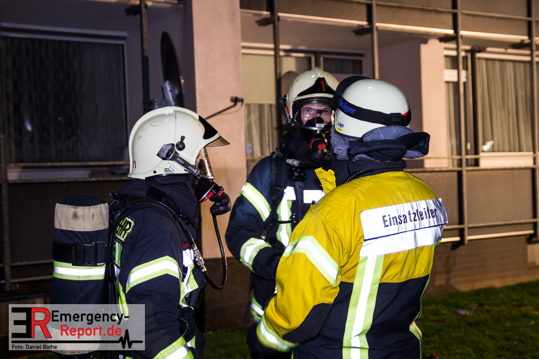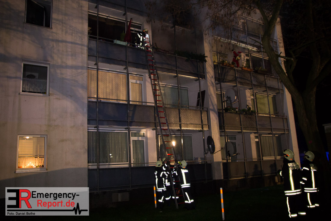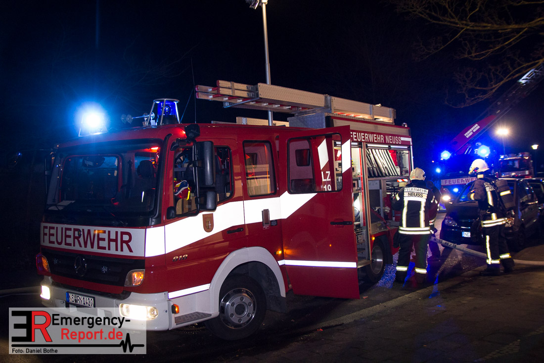 Die Feuerwehr Neuss wurde am Silvesterabend gegen 21:45 Uhr auf die Straße „Am Hohen Weg“ in den Stadtteil Weissenberg alarmiert. Auf dem Balkon eines Mehrfamilienhauses war im 2. Obergeschoss ein Feuer ausgebrochen. Bei Eintreffen der Feuerwehr schlugen Flammen vom Balkon einer Wohnung in der zweiten Etage. Umgehend wurde mit den Löscharbeiten mittels eines Außenangriffs begonnen. In der verrauchten Brandwohnung traf ein weiterer Trupp auf den Wohnungsinhaber. Dieser wehrte sich vehement dagegen von den Wehrleuten aus dem Gefahrenbereich gebracht zu werden. Im Hausflur klammerte er sich immer wieder krampfhaft an das Treppengeländer. Erst als die Polizei ihm Handschellen angelegt hatte konnte er aus dem Haus gebracht und dem Rettungsdienst übergeben werden. Die Feuerwehr rettete ebenfalls eine Katze aus der verrauchten Wohnung, sie wurde einem Tierarzt übergeben. Der Bewohner der Brandwohnung leistete im Rettungswagen, auf der Fahrt ins Krankenhaus und auch noch im Krankenhaus Widerstand. Er trat u.a. um sich und versuchte zu beißen. Zudem bespuckte und beleidigte er die Polizeibeamten, Rettungskräfte und Krankenhausbeschäftigten. Nach ärztlicher Untersuchung im Krankenhaus wurde er in das Neusser Polizeigewahrsam eingeliefert. Da er noch einen offenen Haftbefehl wegen Widerstand hatte, wurde er am Neujahrsmorgen dem Haftrichter vorgeführt. Beim Wohnungsbrand entstand Gebäudeschaden. Die Wohnung ist nicht mehr bewohnbar. Die Kriminalpolizei hat die Ermittlungen zur Brandursache aufgenommen.