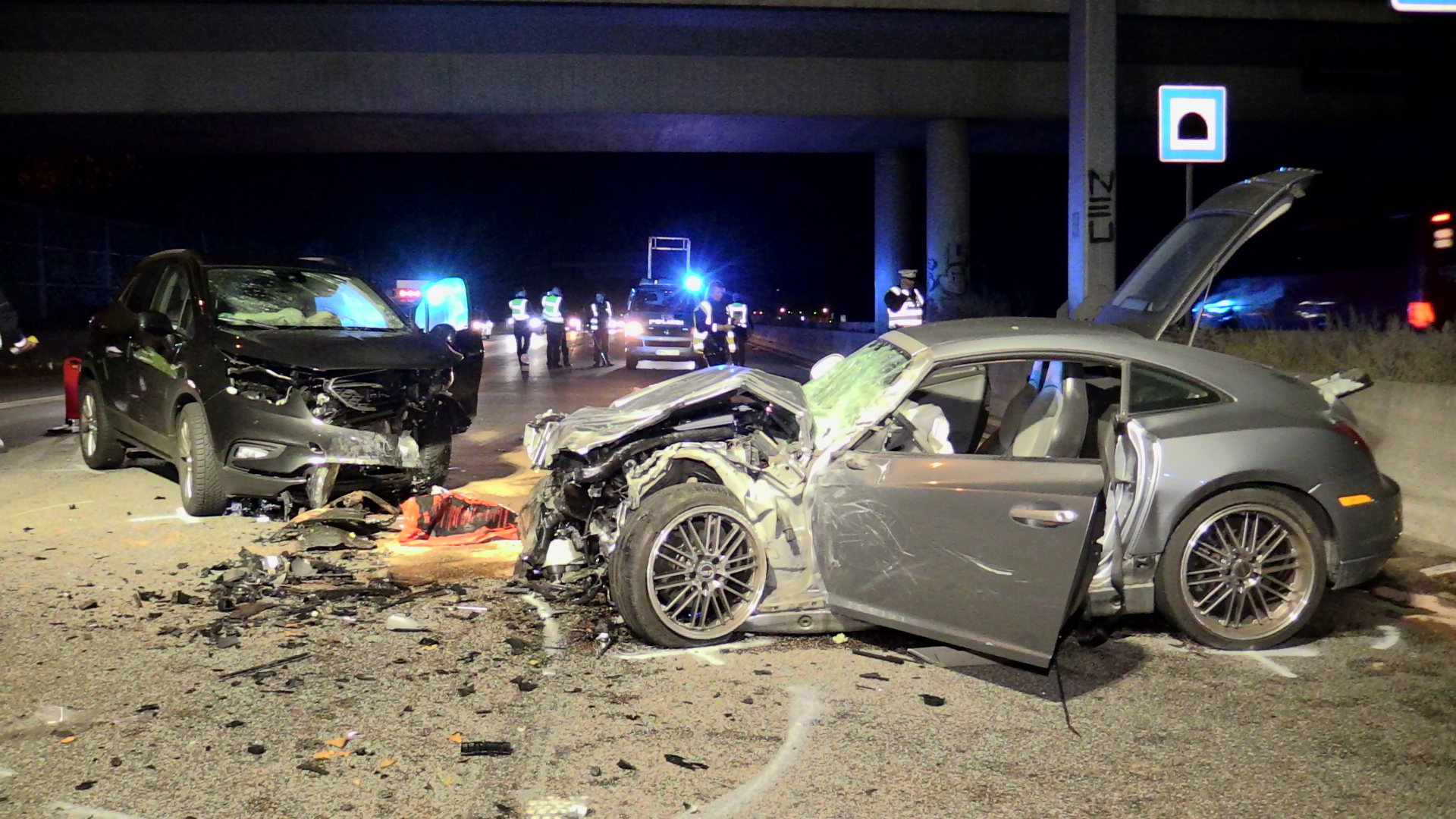 Mutmaßlicher Geisterfahrer-Unfall – 2 Schwerverletzte – Vollsperrung der Autobahn