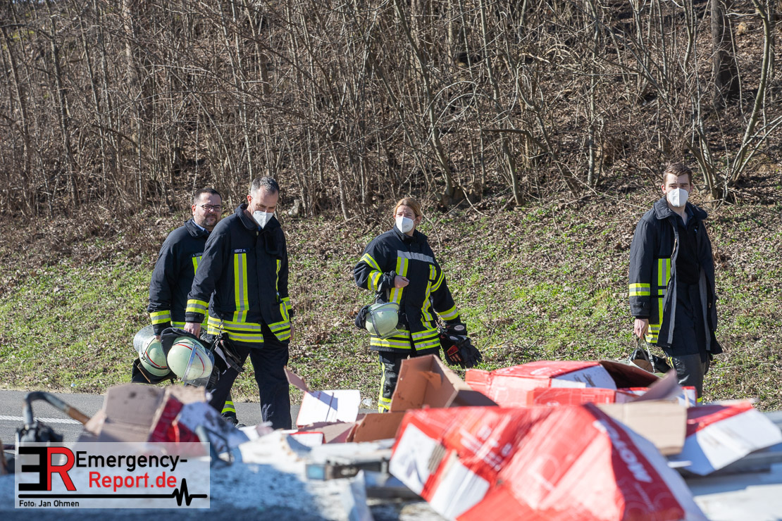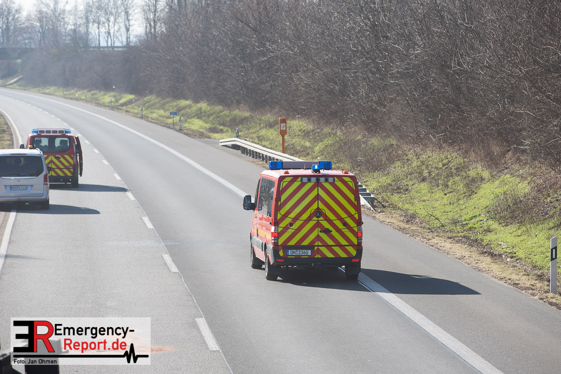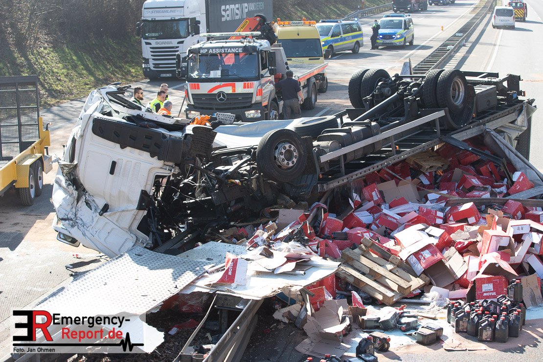 Auf der Bundesautobahn 44 bei Jülich hat sich am Montagmorgen (1. März) bei einem Alleinunfall ein Lkw (Fahrer: 46) überschlagen. Mehrere hundert mit Motoröl gefüllte Kanister sind auf der Fahrbahn zerplatzt. Die laufenden Reinigungsarbeiten auf beiden vollgesperrten Richtungsfahrbahnen werden sich sehr wahrscheinlich bis in die Abendstunden hinziehen.