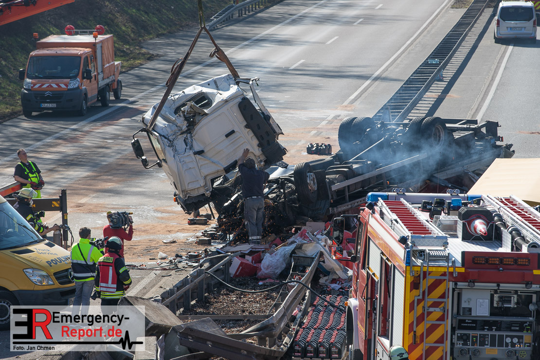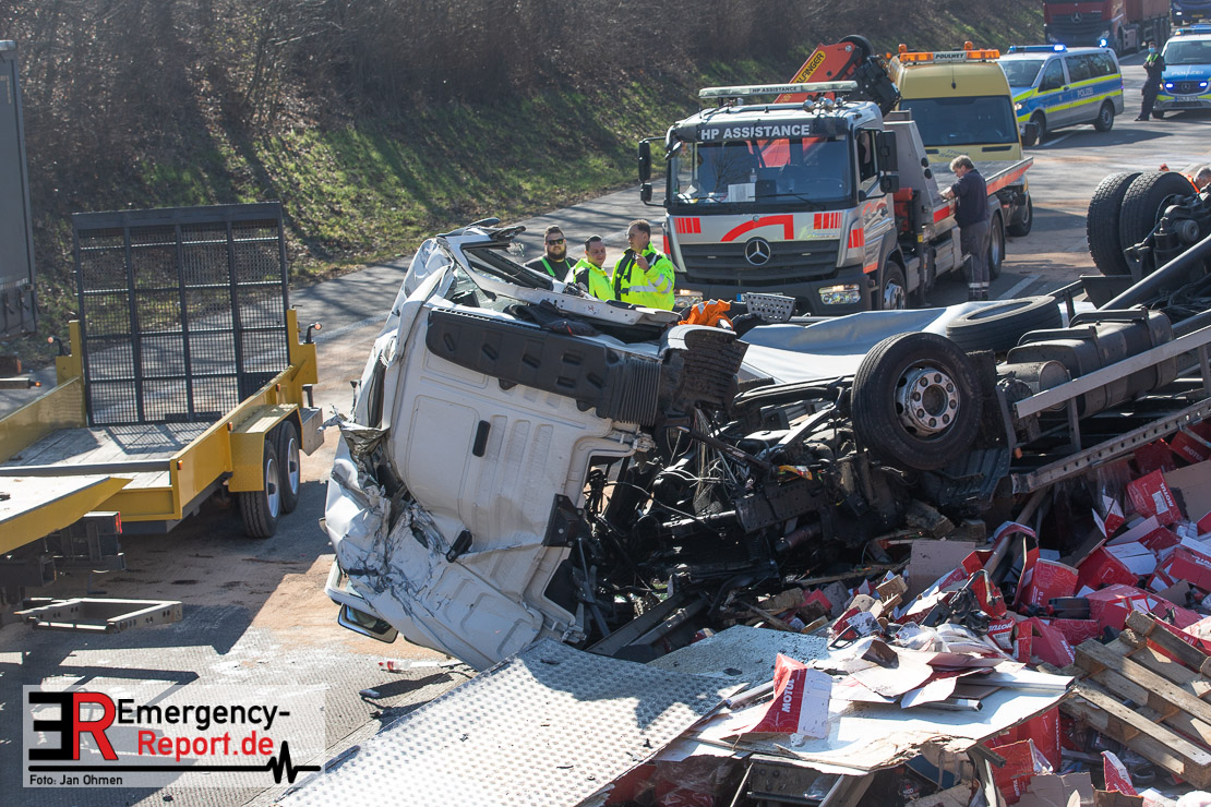Den 46-jährigen Unfallfahrer haben Rettungskräfte in eine Klinik gebracht. Nach ersten Erkenntnissen hat der in Richtung Mönchengladbach fahrende Lkw-Fahrer gegen 9.40 Uhr mit seinem 14-Tonner zunächst die Mittelschutzplanke touchiert. Das Fahrzeug überschlug sich und blieb auf dem Dach liegen.