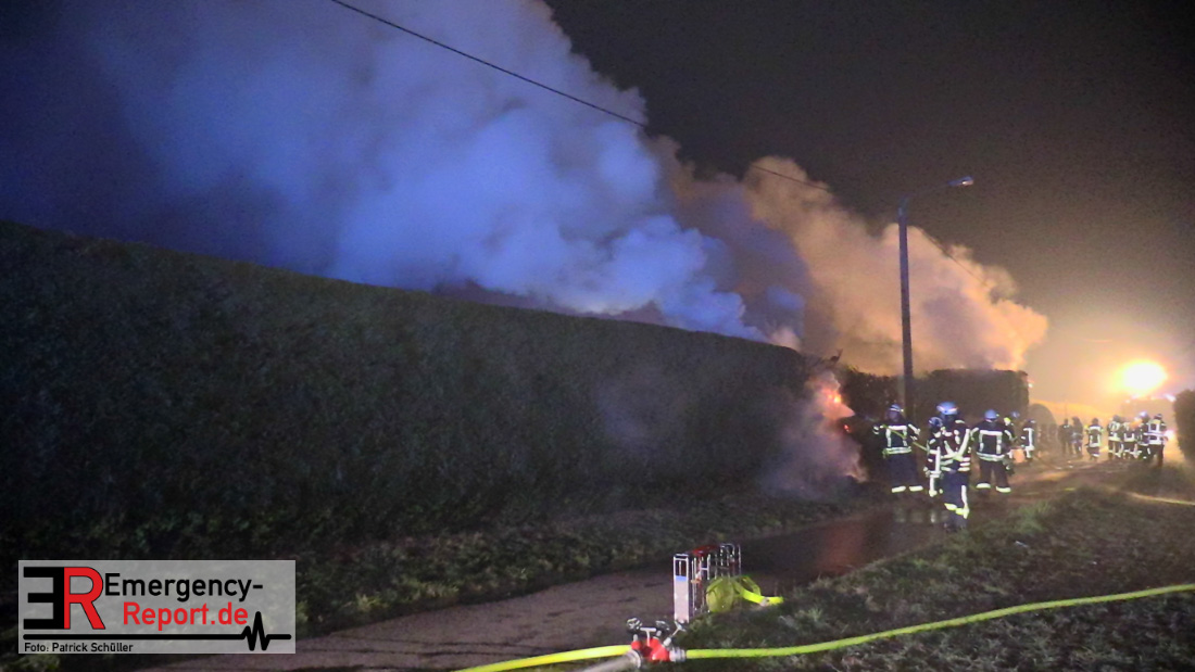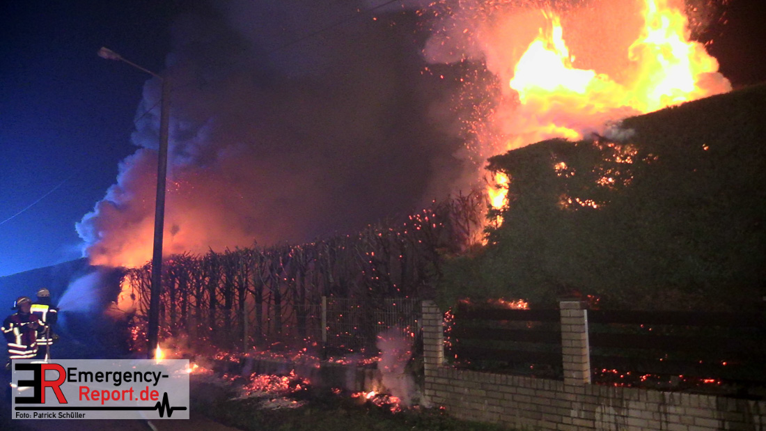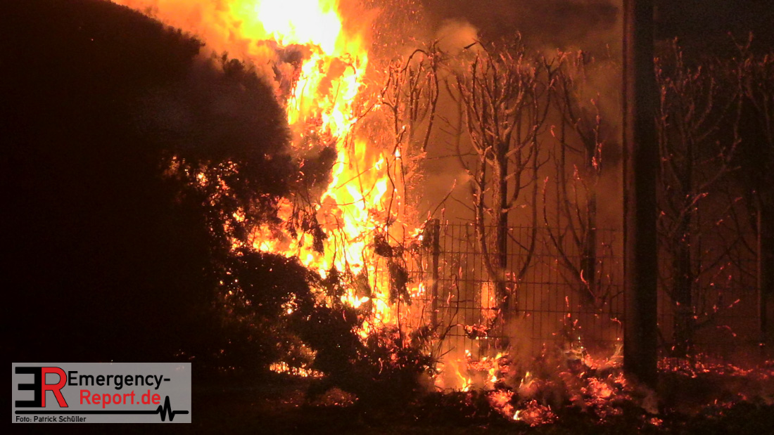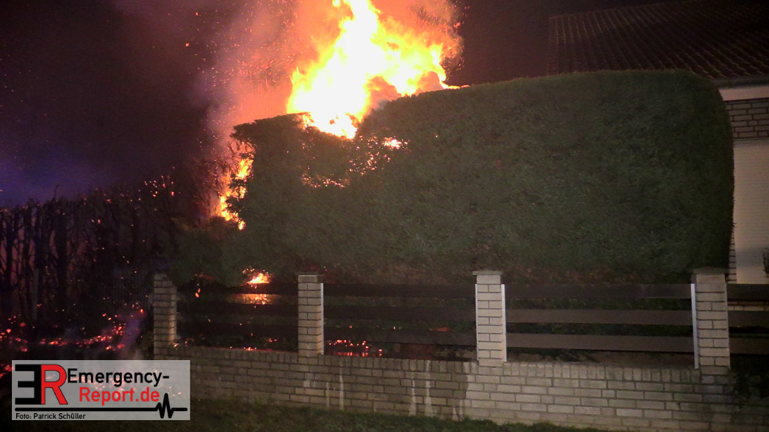 Bei Eintreffen der ersten Einsatzkräfte stellte sich heraus, dass es zu einem großen Heckenbrand mit massiver Rauchentwicklung gekommen war. Das Feuer breitete sich rasend schnell in zwei Richtungen aus, ein Wohnhaus war in akuter Gefahr.
