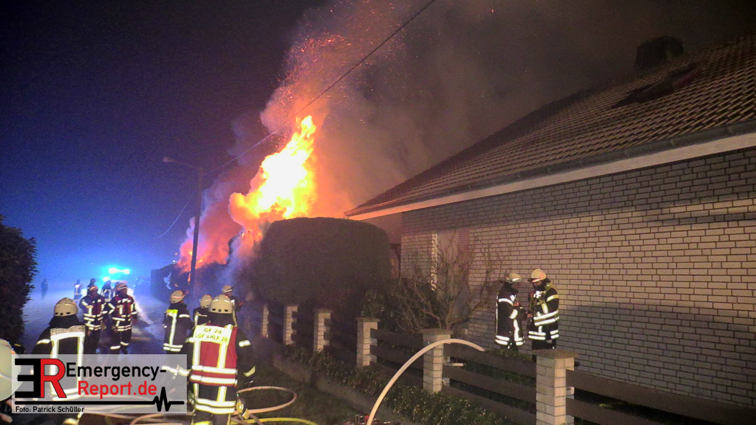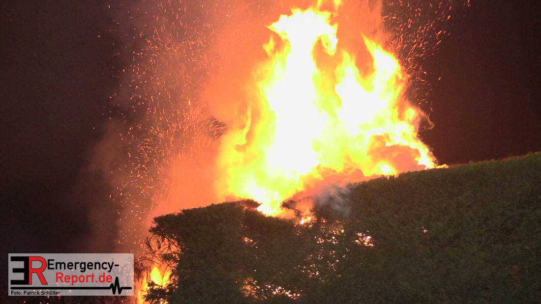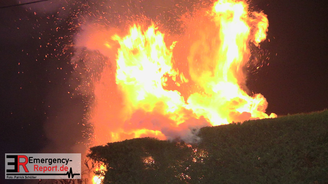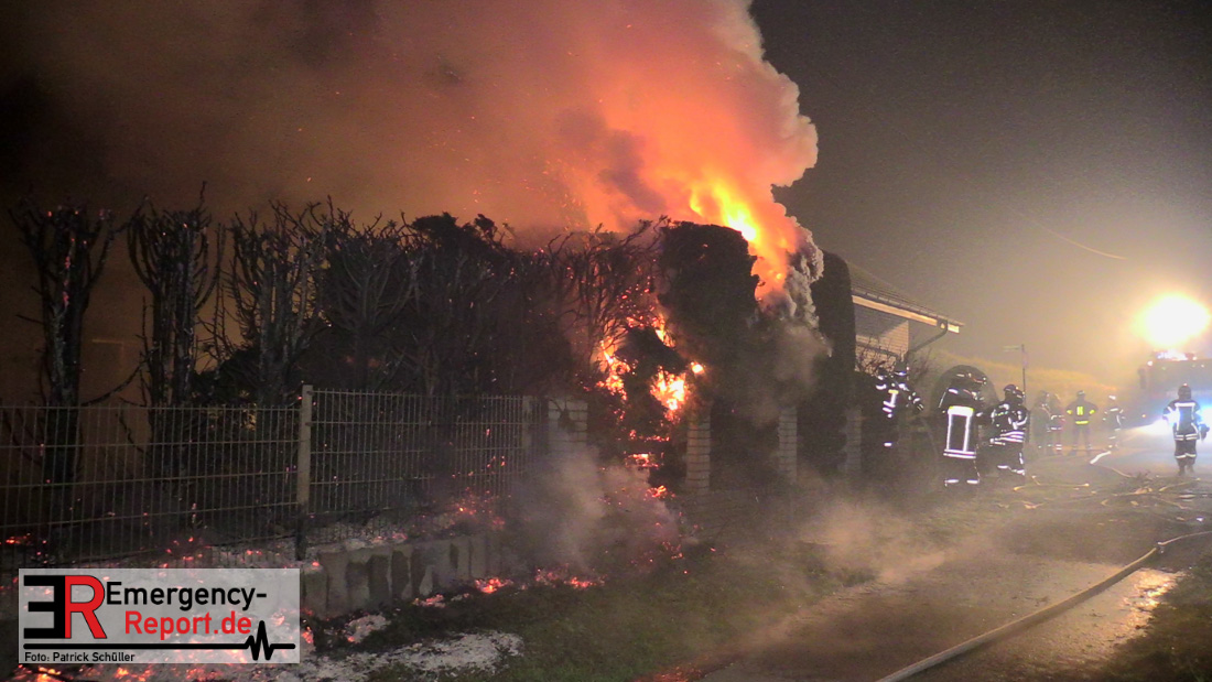 Durch den sofort eingeleiteten umfangreichen Löschangriff konnte glücklicherweise eine Brandausbreitung auf das Wohnhaus verhindert werden. Die Polizei hat die Ermittlungen zur Brandursache aufgenommen.