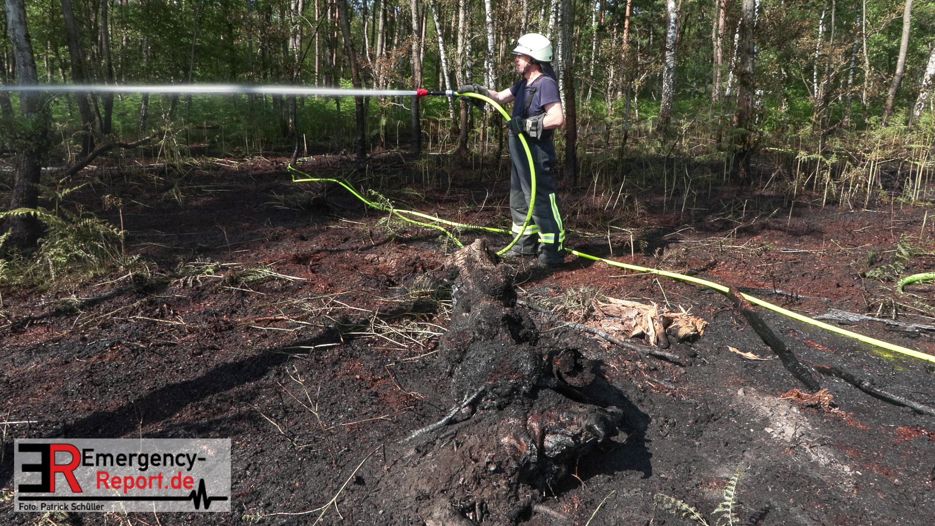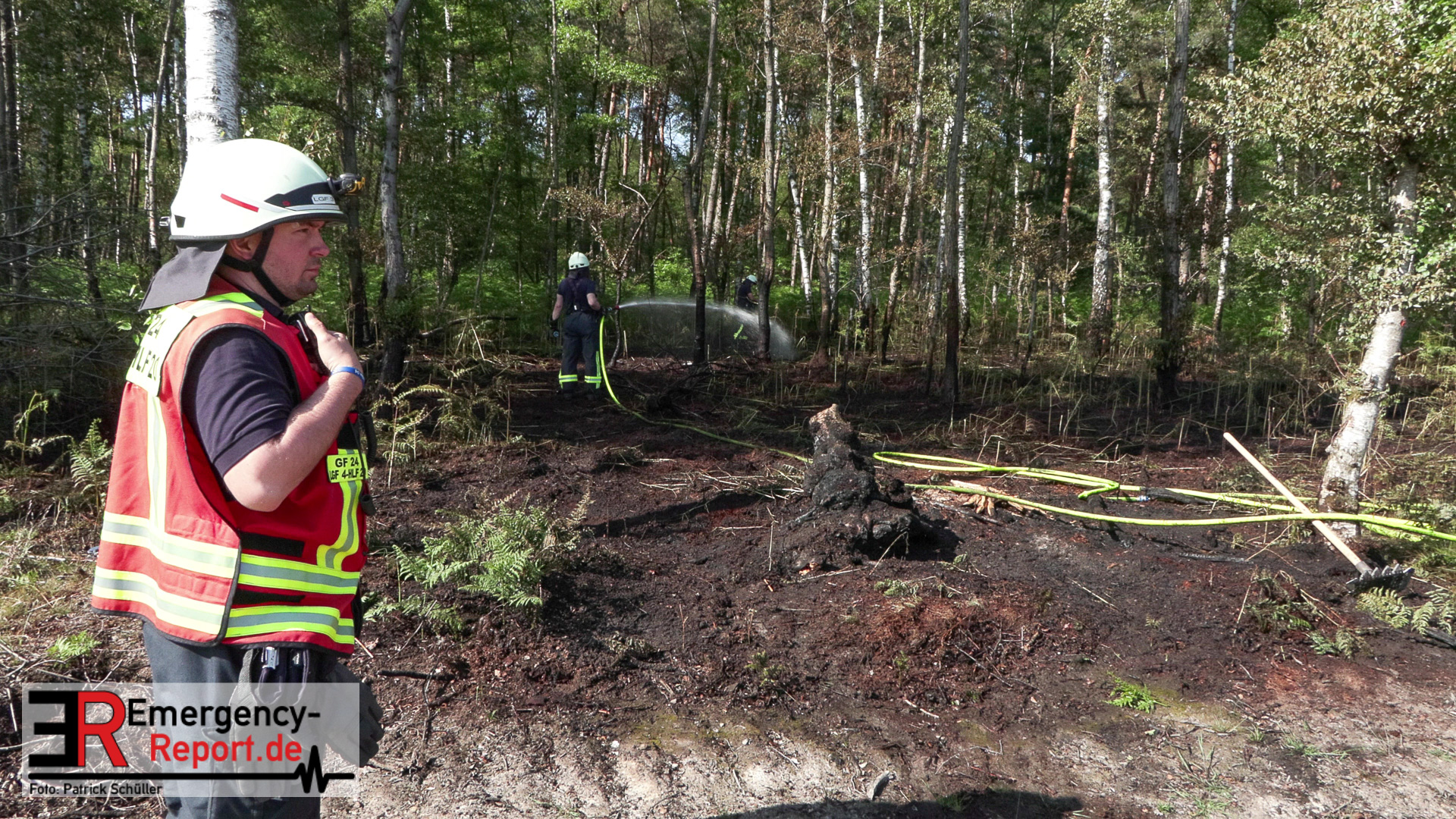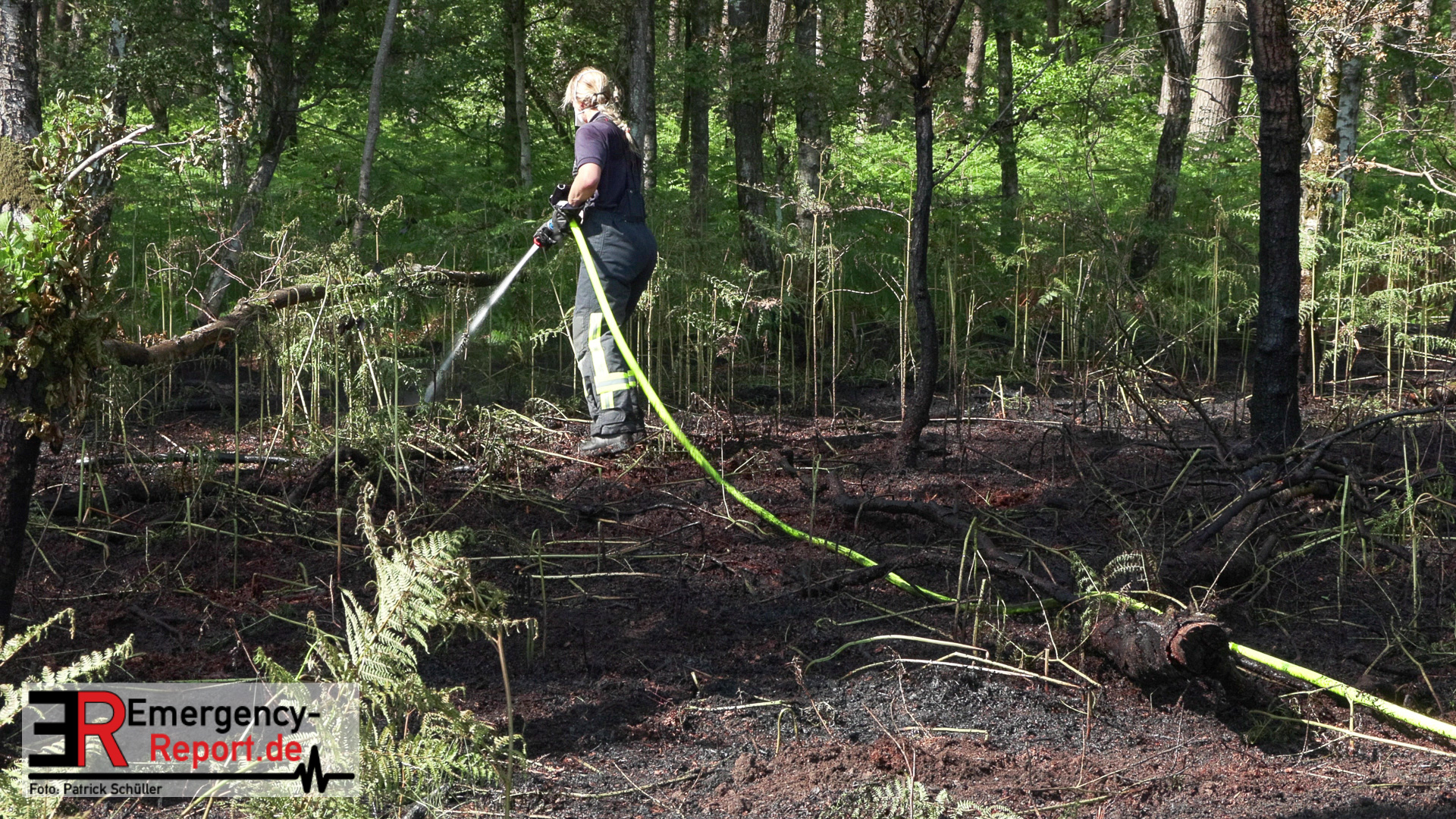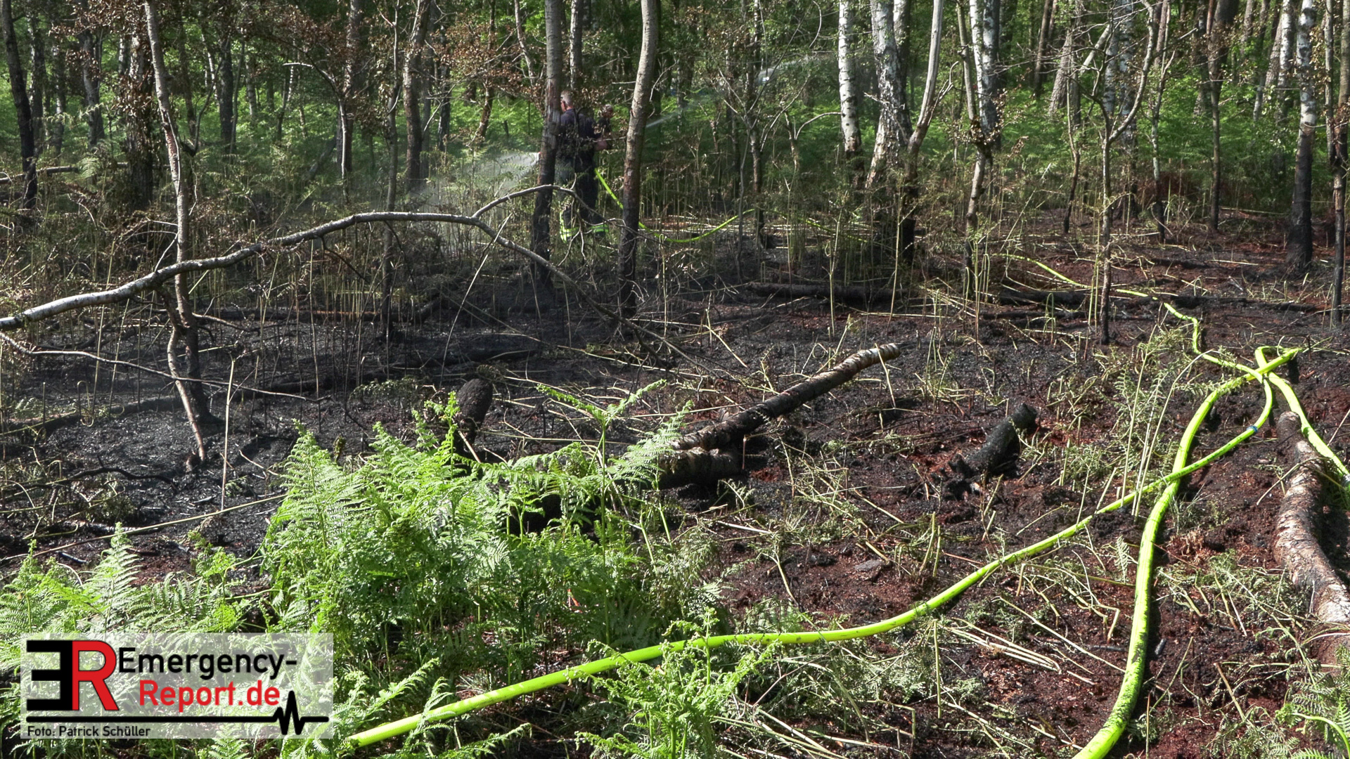 Im weiteren Einsatzverlauf wurde ein Polizeihubschrauber angefordert. Der Hubschrauber kreiste über dem Waldgebiet und kontrollierte das Further Moor auf weitere Brandherde.