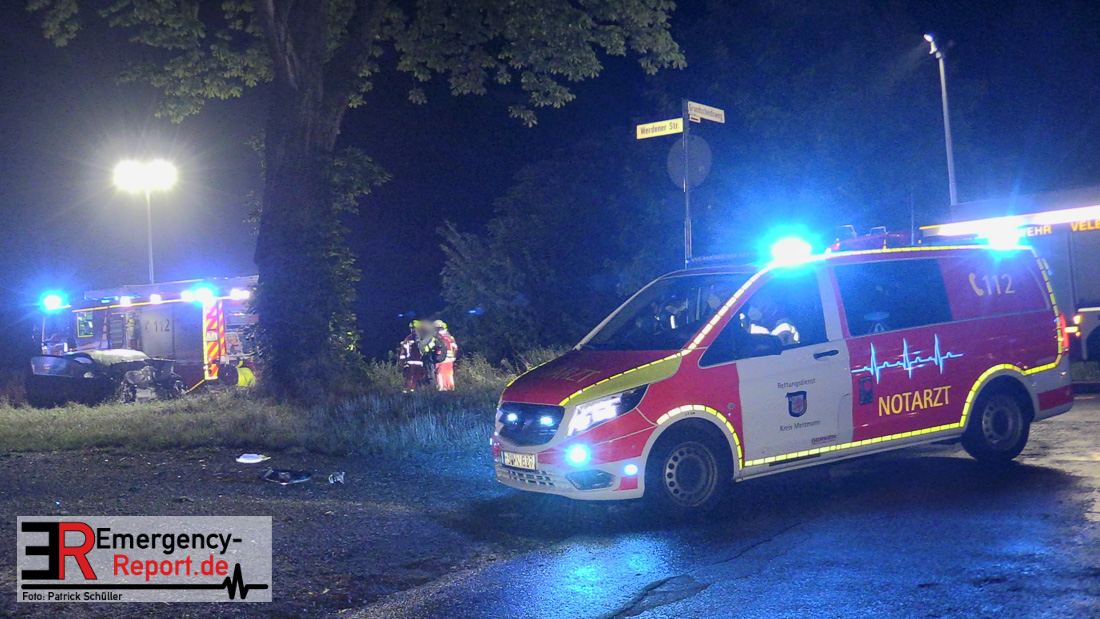 In der Nacht zu Donnerstag (01. Juli 2021) verunglückte eine 55-Jährige auf der Werdener Straße in Velbert mit ihrem Opel Corsa tödlich. Aus bisher ungeklärter Ursache kam die Velberterin von der Fahrbahn ab und stieß gegen einen Baum.