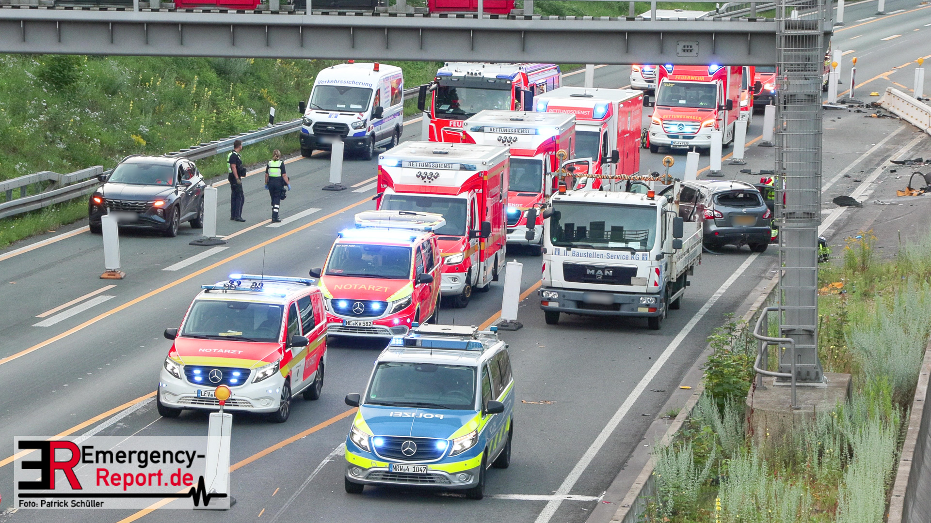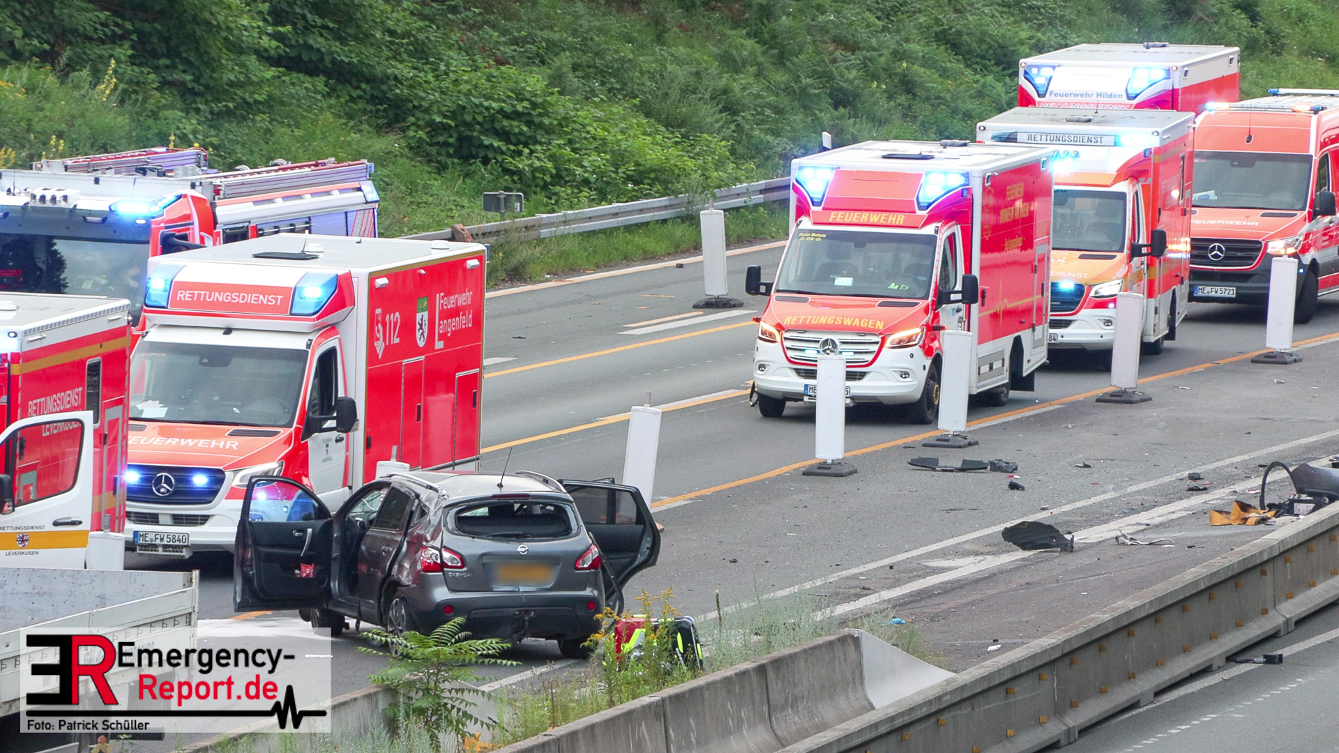 Nach derzeitigem Stand der Ermittlungen befuhr eine 27-jährige Niederländerin mit ihrem Pkw die A 3 auf dem mittleren von drei Fahrstreifen in Fahrtrichtung Arnheim. In dem Fahrzeug befanden sich drei weitere niederländische Staatsangehörige, zwei Frauen und ein Mann. An einer eingerichteten Dauerbaustelle bei Langenfeld fuhr die Fahrzeugführerin aus bislang ungeklärter Ursache in die Fahrbahnteilung, der Pkw überschlug sich und kam im Baustellenbereich auf den Reifen zum Stehen. Ein 24-jähriger Mitfahrer, der sich auf der Rückbank befand, verletzte sich lebensgefährlich, die Fahrerin schwer. Beide wurden in Krankenhäuser gebracht. Zwei weitere Fahrzeuginsassinnen (56 und 18 Jahre alt) verletzten sich leicht. An der Unfallstelle fuhr eine 59 Jahre alte Frau aus Aachen mit ihrem Pkw über Trümmerteile, wodurch dieser beschädigt wurde. Das Verkehrsunfallaufnahmeteam aus Düsseldorf sicherte die Unfallspuren.