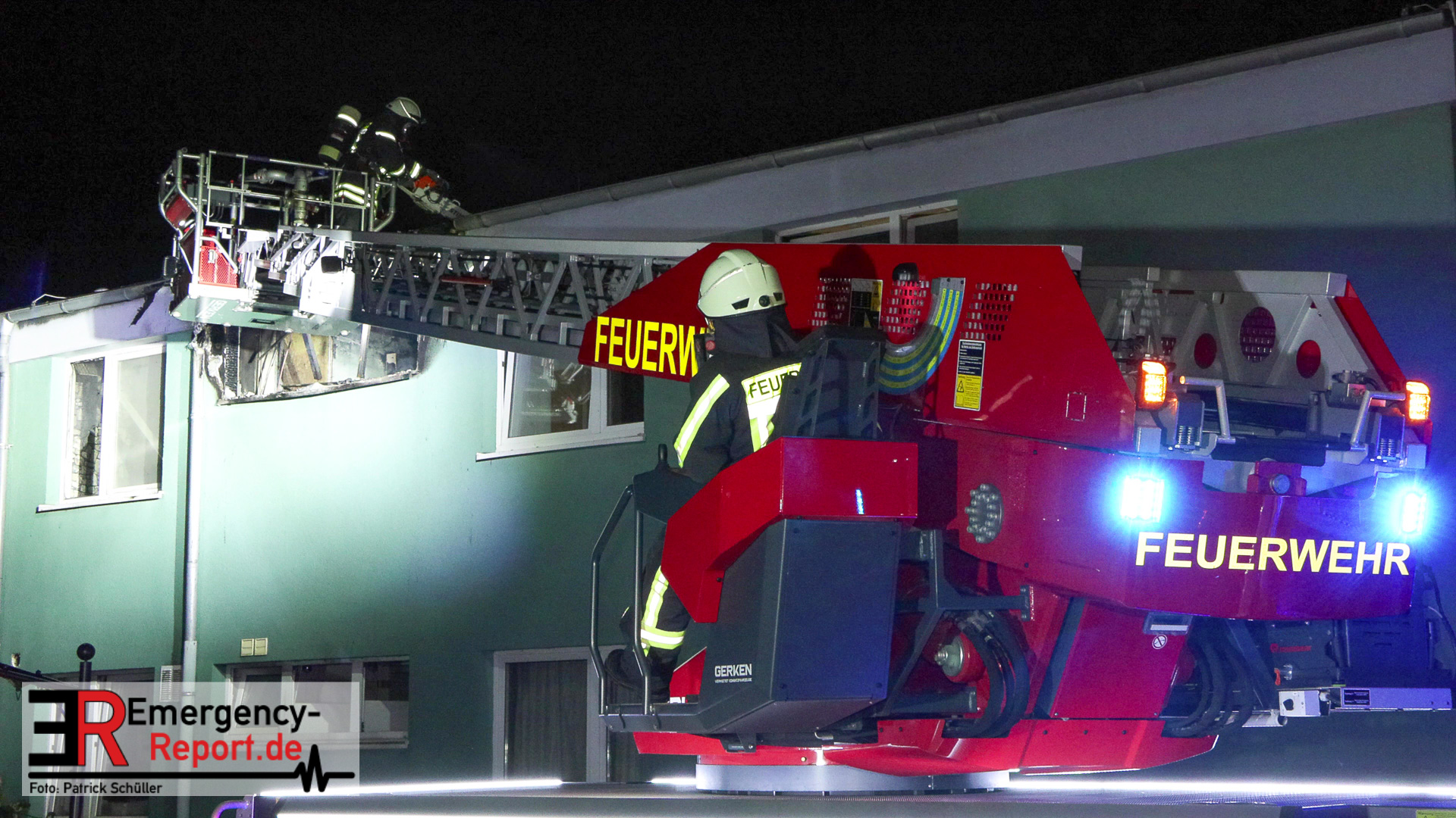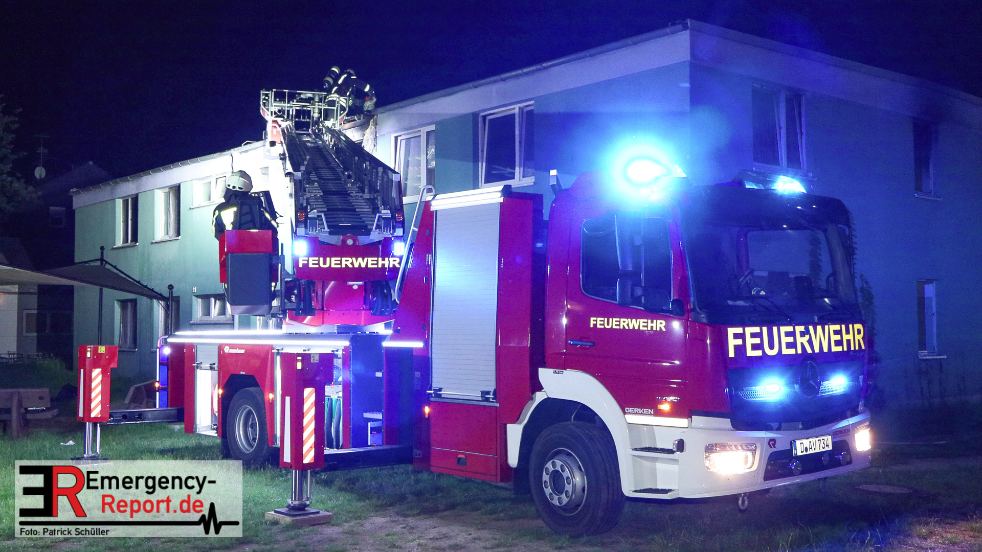 Um 23.17 wurde die Feuerwehr Langenfeld erneut zu der Flüchtlingsunterkunft an den Winkelsweg gerufen. Die ersteintreffenden Kräfte der hauptamtlichen Wache sahen Feuer aus mehreren Fenstern im Obergeschoss eines anderen Gebäudes am Standort herausschlagen. Das Feuer hatte auch schon auf den Dachstuhl übergegriffen. Unmittelbar wurde die Menschenrettung und Brandbekämpfung eingeleitet. Der Einsatzleiter erhöhte die Alarmstufe auf -Stadtalarm-, sodass alle Löscheinheiten der Feuerwehr Langenfeld zur Einsatzstelle Winkelsweg gerufen wurden. Mit dem Einsatz von zwei Drehleitern, ein Fahrzeug kam zur Unterstützung aus der Nachbarstadt Hilden, konnte hier schlimmeres verhindert werden. Die Einsatzstelle wurde in drei Einsatzabschnitte gegliedert. Drei Personen aus der Flüchtlingsunterkunft wurden verletzt. Davon wurden zwei Personen als leicht verletzt und eine Person als mittelschwer verletzt eingestuft. Diese wurden durch den leitenden Notarzt und das Rettungsdienstpersonal gesichtet und anschließend zur weiteren Untersuchung in ein Krankenhaus verbracht. Des Weiteren sind 57 Bewohner (nicht verletzt) betroffen. Das Gebäude ist durch das Feuer und den Rauch nicht mehr bewohnbar. Die Bewohner des betroffenen Gebäudes wurden in freistehenden Unterkunftsmöglichkeiten der gleichen Liegenschaft versorgt.
