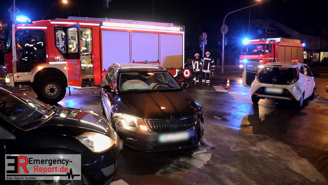 Gegen 20:20 Uhr, ereignete sich dann ein weiterer Verkehrsunfall in Langenfeld – diesmal an der Richrather Straße auf Höhe des Winkelswegs. Hier war eine 27-jährige Frau aus Haan mit ihrem Toyota Aygo über die Richrather Straße in Richtung Richrath gefahren. Dabei missachtete sie nach aktuellem Stand der Unfallermittlungen einen von rechts vom Winkelsweg anfahrenden vorfahrtberechtigten Skoda Octavia eines 55-jährigen Langenfelders. Durch die Wucht des Aufpralls wurde der Skoda dann noch in den Ford Fiesta eines 64-jährigen Langenfelders geschoben, welcher über die Richrather Straße in entgegengesetzte Richtung unterwegs war.