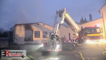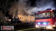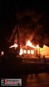 Das Feuer drohte schon in einer sehr frühen Phase auf eine angebaute Halle des selben Betriebs mit einer Grundfläche von ca. 50 mal 20 Metern überzugreifen. Daher wurde diesem Gefahrenschwerpunkt zunächst besondere Aufmerksamkeit gewidmet. Das Dach des benachbarten Objektes wurde zwar durch die Flammen erfasst. Durch massiven Einsatz von Löschwasser konnte die Ausbreitung auf das Objekt aber verhindert werden.