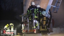 Aktuell wird über den Teleskopmast Personal eingesetzt, welches speziell gesichert Arbeiten auf dem Dach ausführt, um weitere vom Brand betroffene Bereiche zu suchen. Dabei muss das Dach zum Teil auch von außen geöffnet werden.