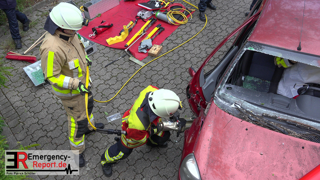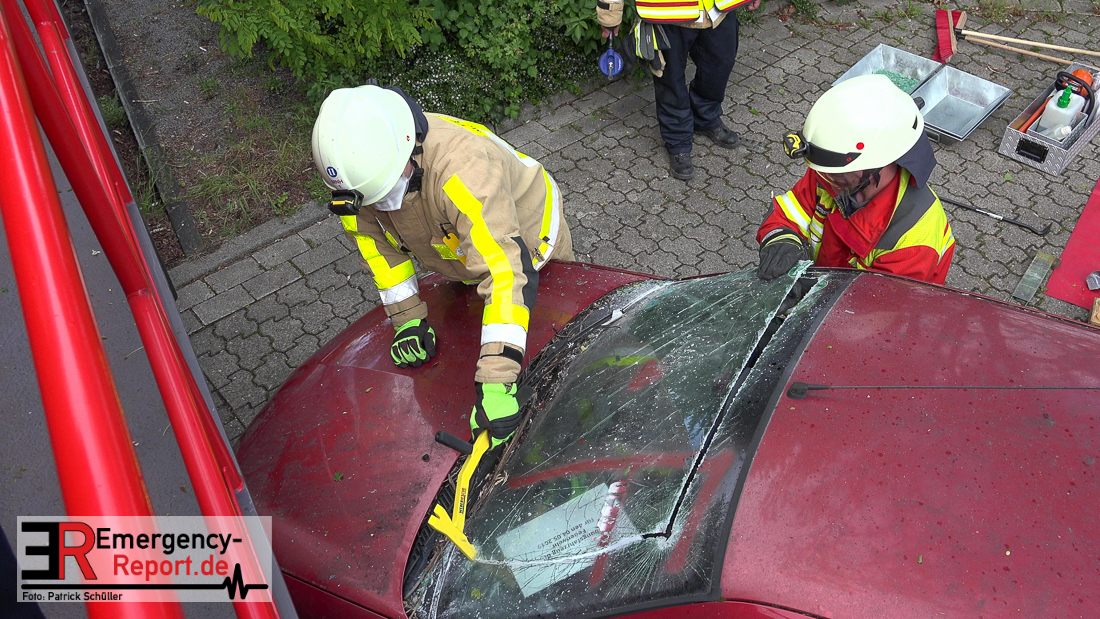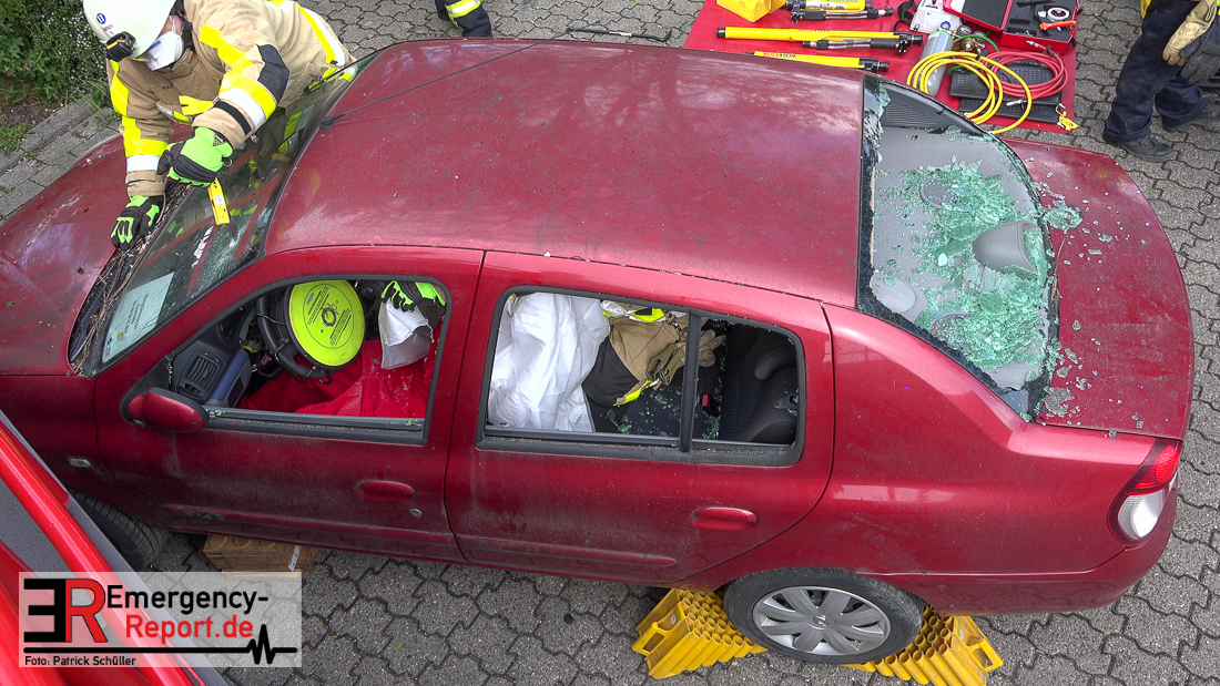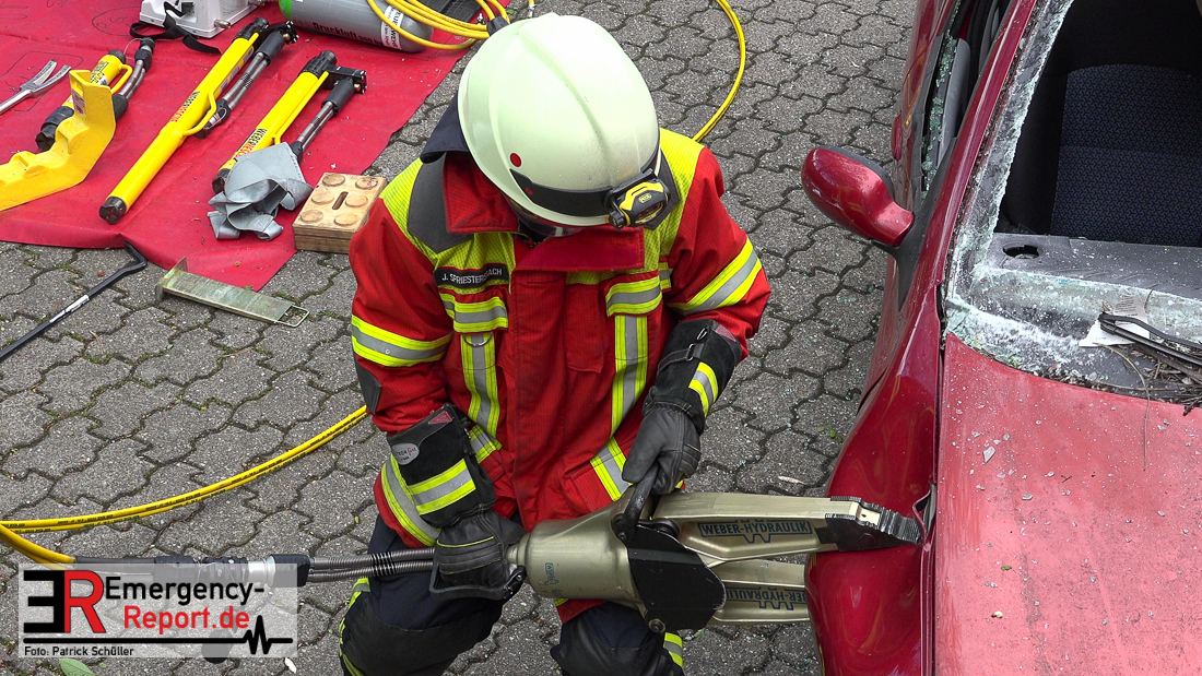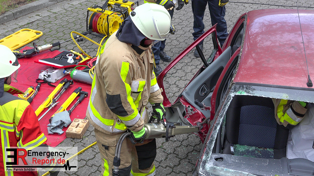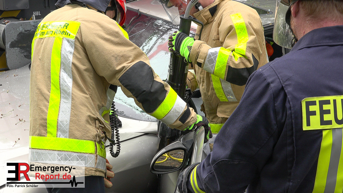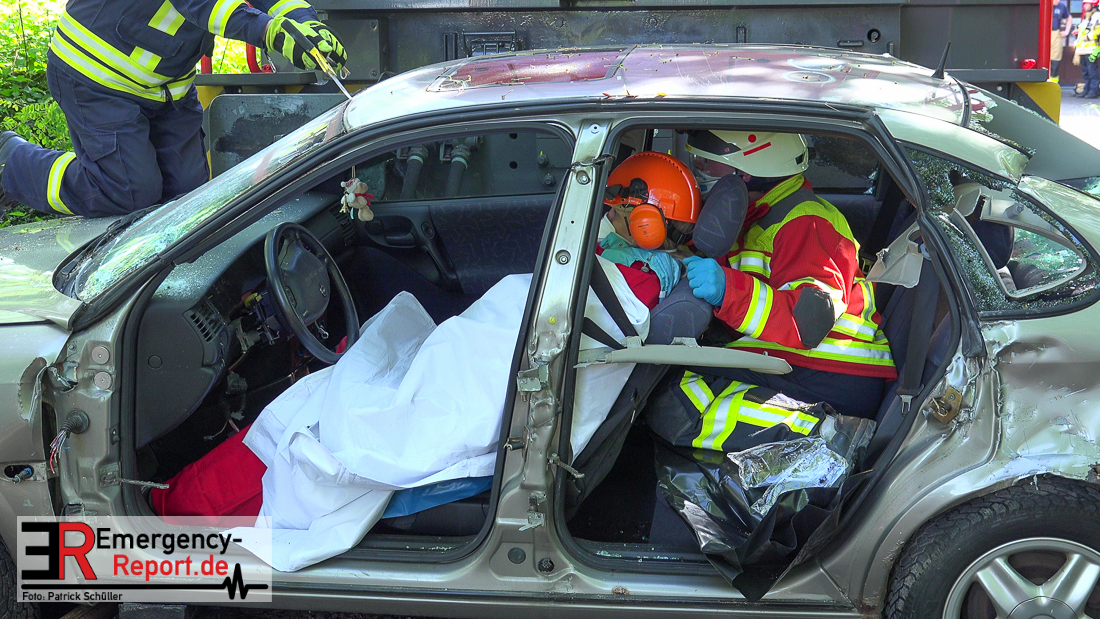 Bei Eintreffen der ersten Einsatzkräfte bestätigte sich die von den Anruferngeschilderte Lage. Nach einer umfangreichen Lageerkundung galt es die in beiden Autos eingeklemmten Fahrerinnen und den überrollten, lebensbedrohlich verletzten, Radfahrer mit hydraulischem Rettungsgerät zu befreien. Der schwer geschockte, aber unverletzte Bahnfahrer, wurde dauerhaft durch die Feuerwehrmänner betreut.