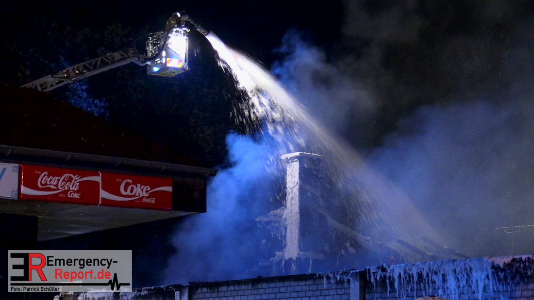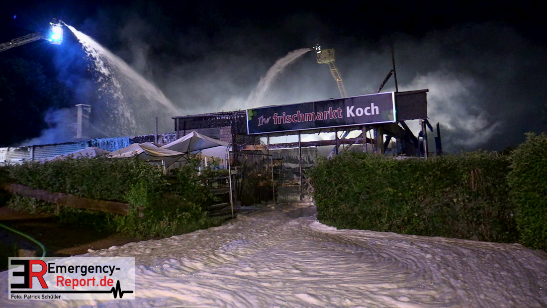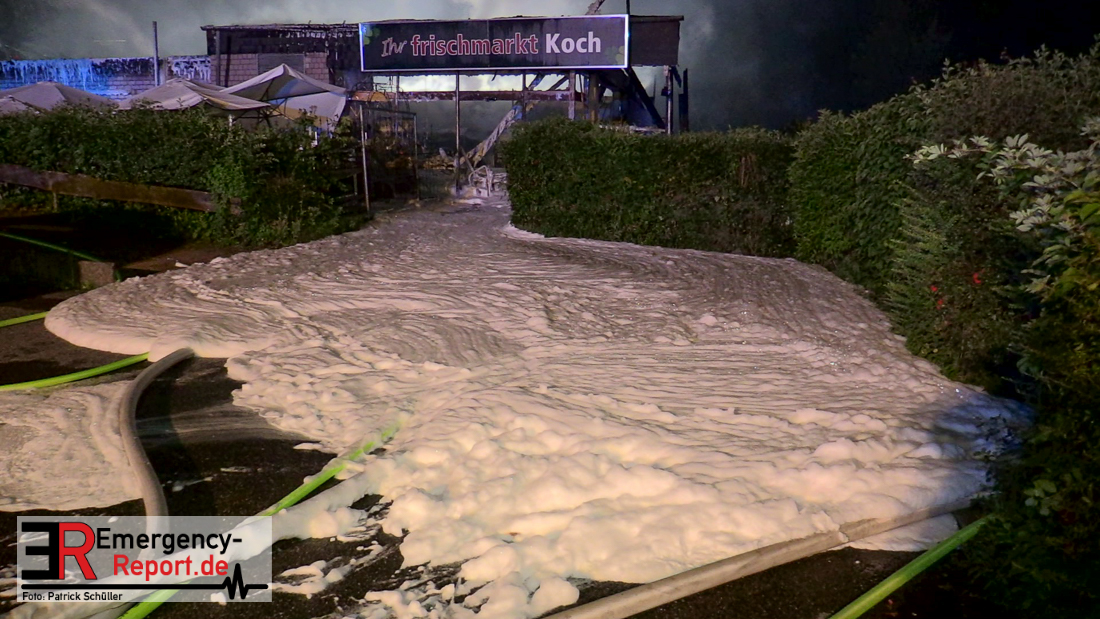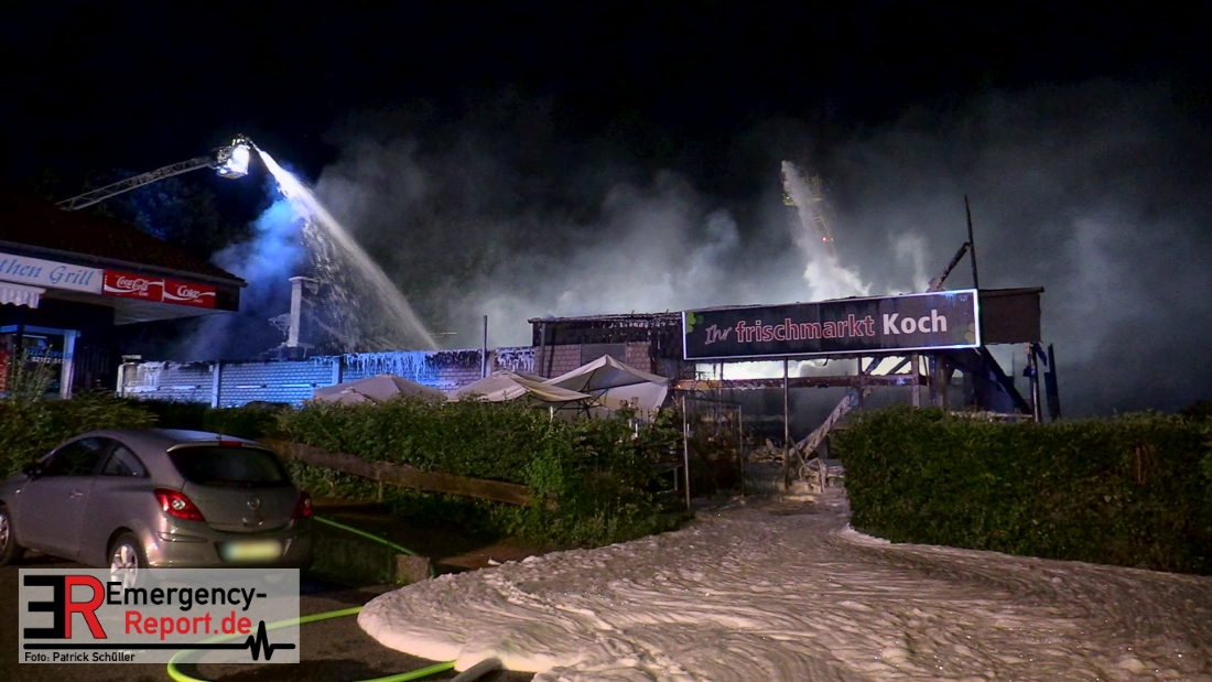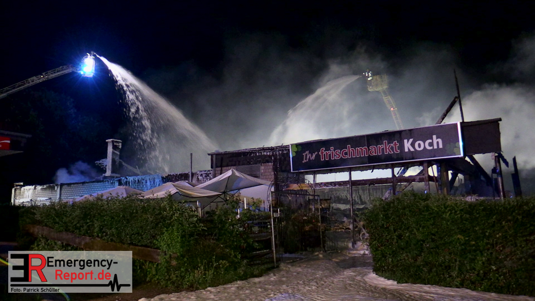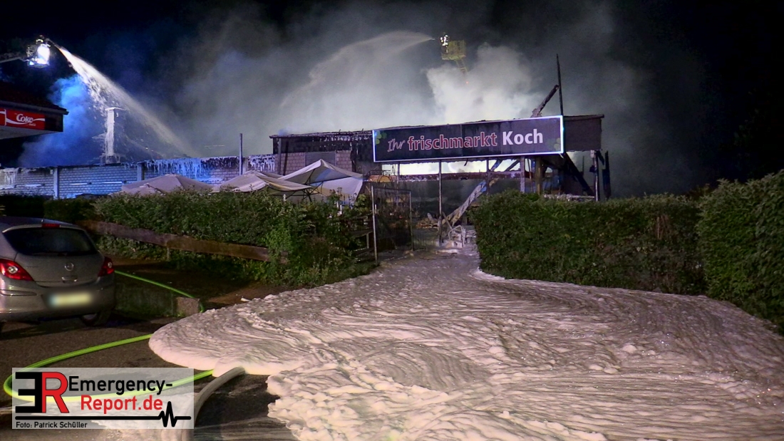 Die Feuerwehr Ratingen wurde am 04.09.2021 um 2:42 h alarmiert zu Feuerschein aus einer Bäckerei an der Steinhauser Straße in Ratingen-Homberg. Bereits auf der Anfahrt war Feuerschein über Homberg sichtbar, bei Eintreffen der ersten Kräfte brannte der etwa 650 qm große Supermarkt „Homberger Frischemarkt“ bereits in voller Ausdehnung. Die Alarmstufe wurde erhöht.
