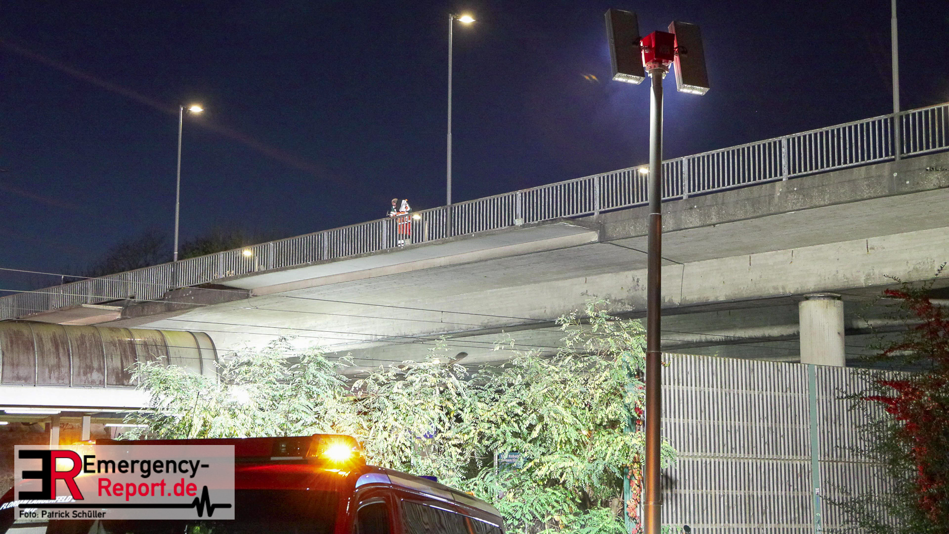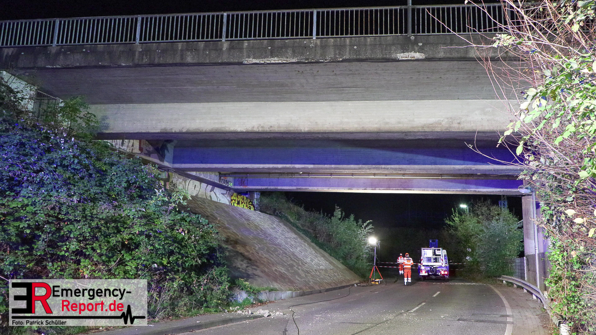 Der Statiker hat sich die Brücke angeschaut und daraufhin konnte diese für den Verkehr wieder freigegeben werden. Unterhalb der Brücke ist die Durchfahrt jedoch noch gesperrt, auch die Bahnen können noch nicht fahren, da noch ein Spezialfahrzeug für die Überprüfung des Brückenbereiches über den Schienen erwartet wird.