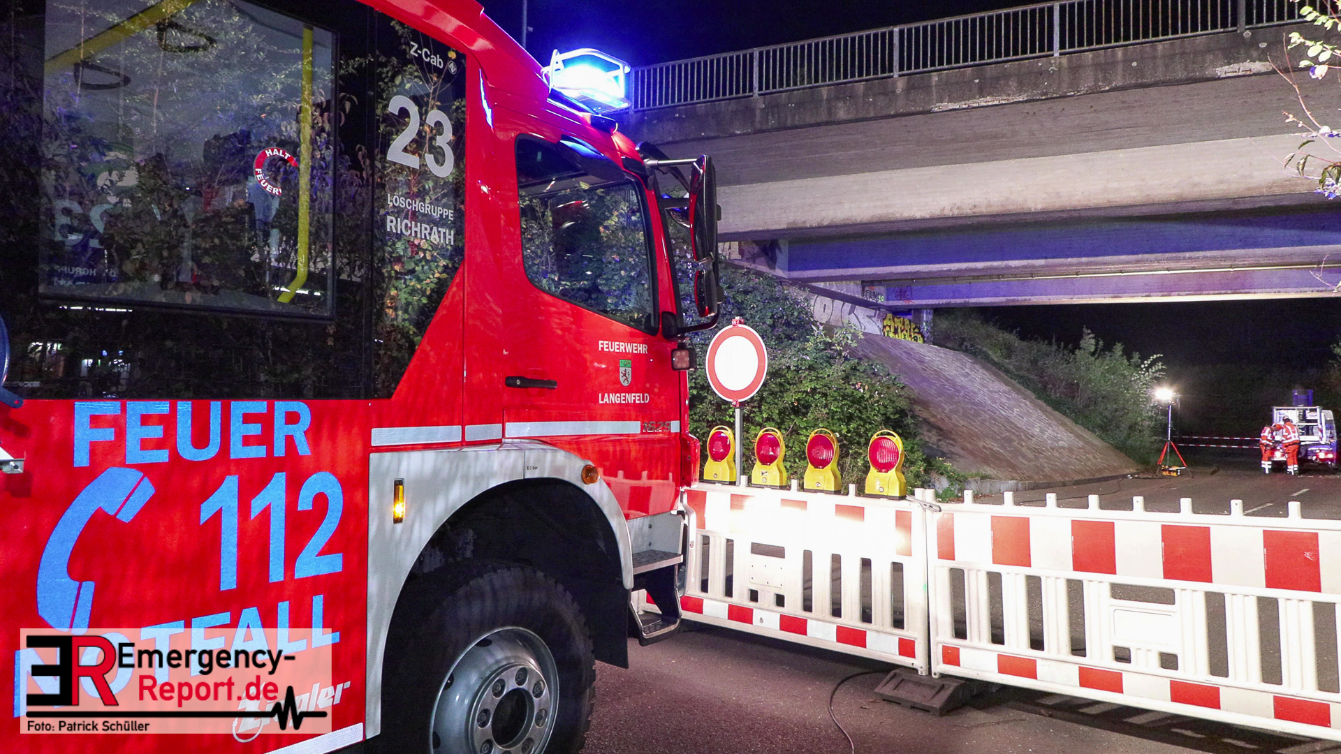 Nach umfassender Untersuchung der Brückenprüfer von Straßen.NRW ist die Brücke der L402 (Knipprather Straße) in Langenfeld verkehrssicher und weist keine statischen Schäden auf. Der Kfz-Verkehr konnte daher bereits am frühen Abend wieder freigegeben werden, nachdem die Untersuchungen des oberen Brückenbereichs abgeschlossen waren.