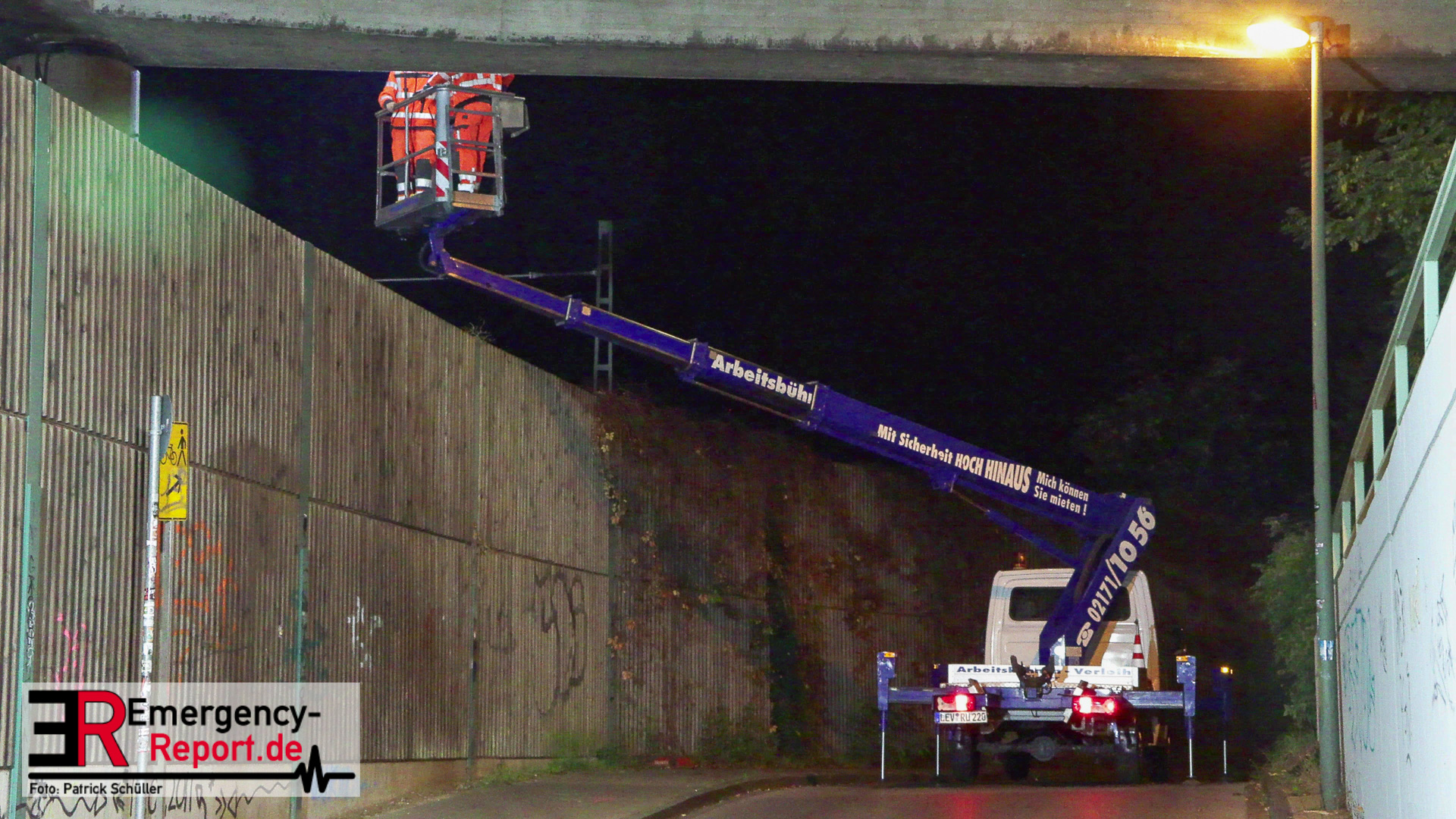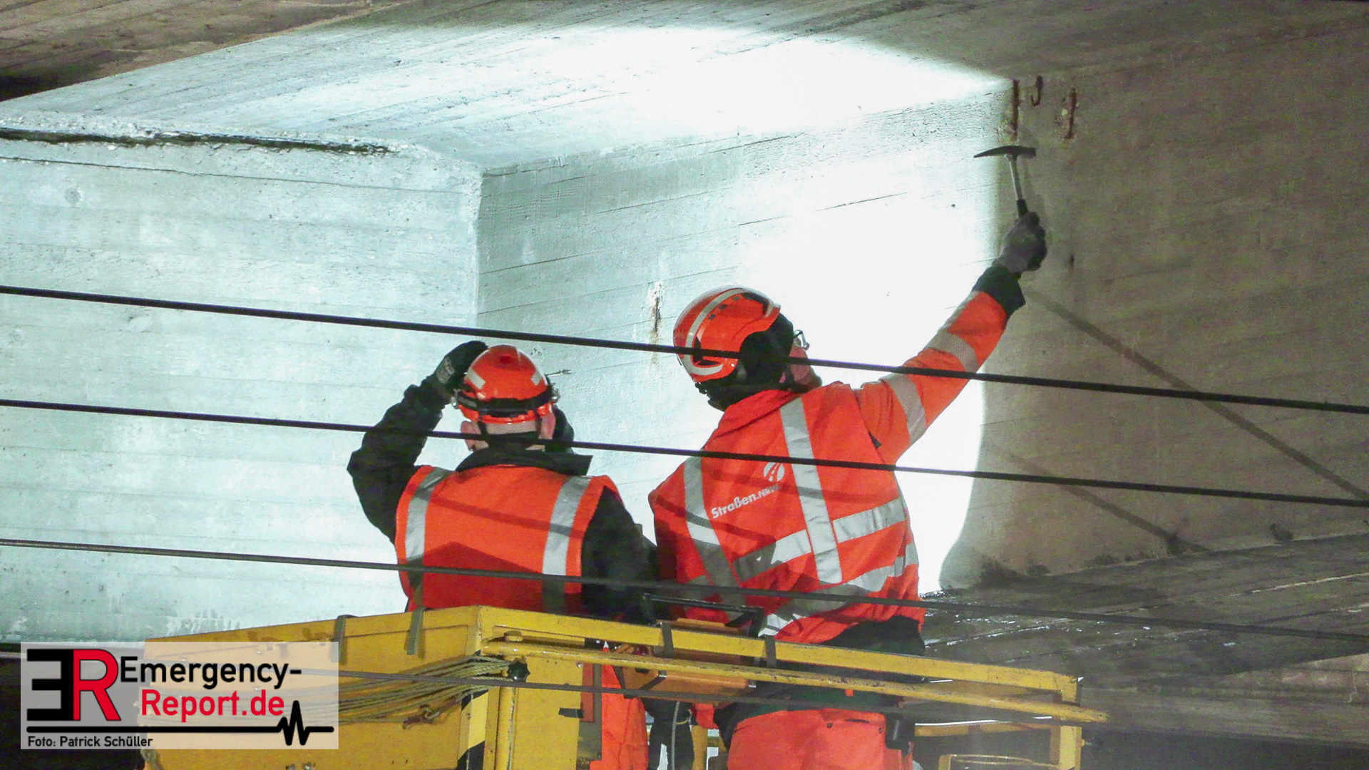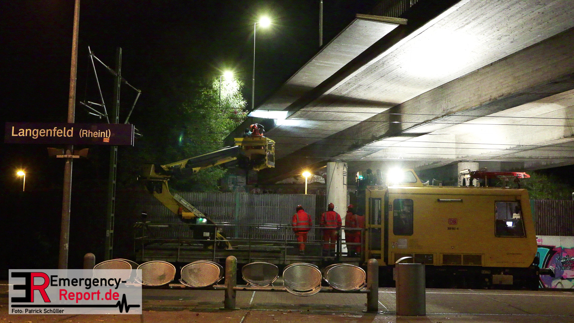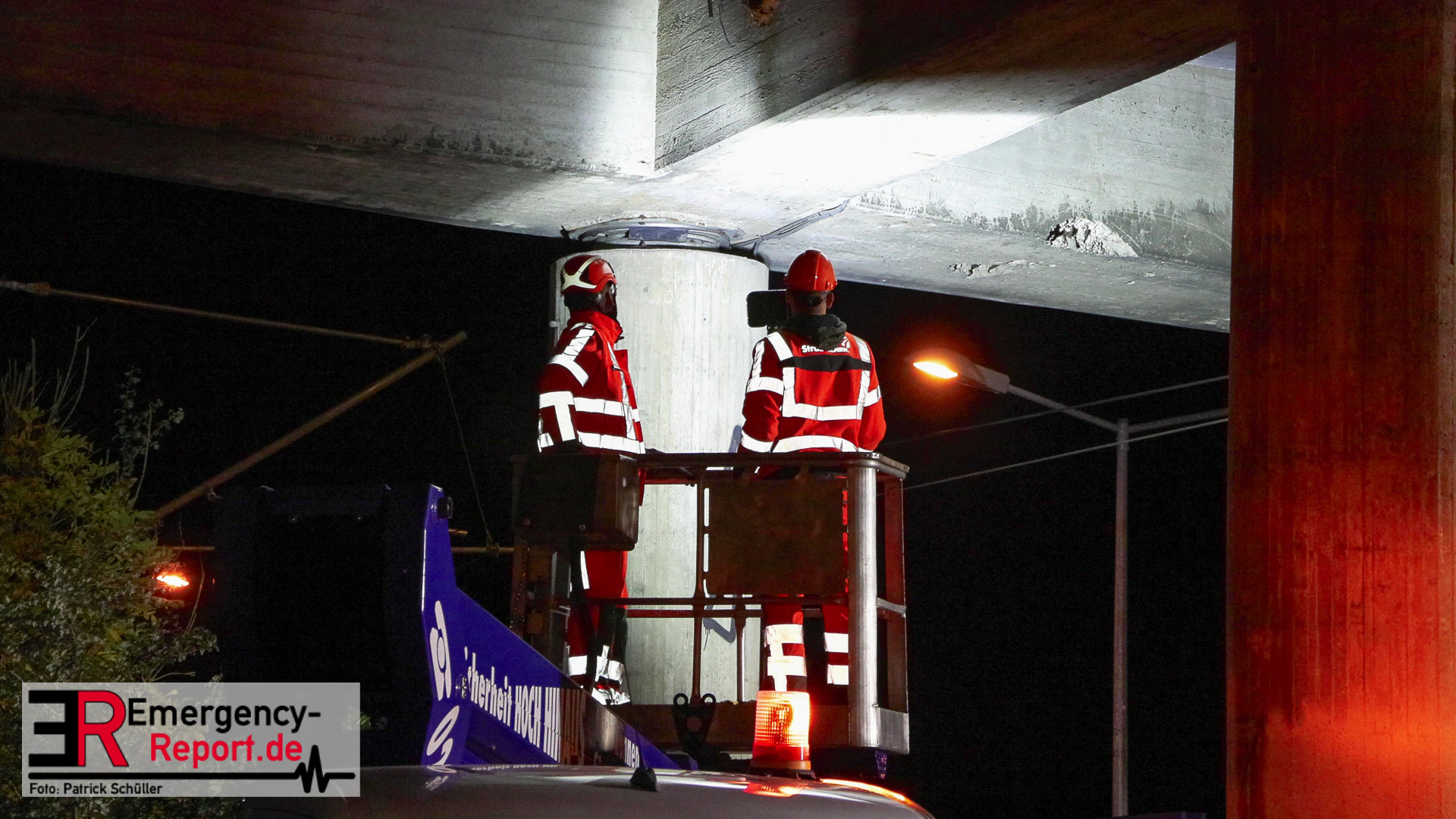 Für die Untersuchung der Brückenunterseite entlang der Oberleitungen setzten die Brückenprüfer eine spezielle Hebebühne der Deutschen Bahn ein, die die Prüfung vor Ort eng begleitet hat. Am späten Abend wurde auch dieser Bereich geprüft und es wurden keine Schäden festgestellt. Daraufhin konnte die Strecke für den Zugverkehr gegen Mitternacht wieder freigegeben werden.