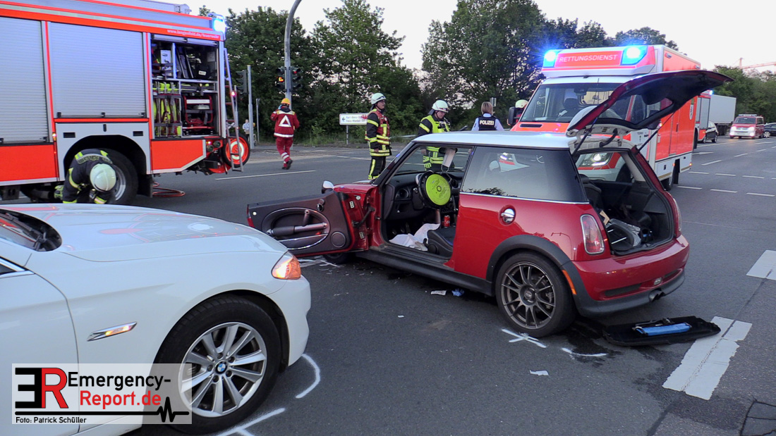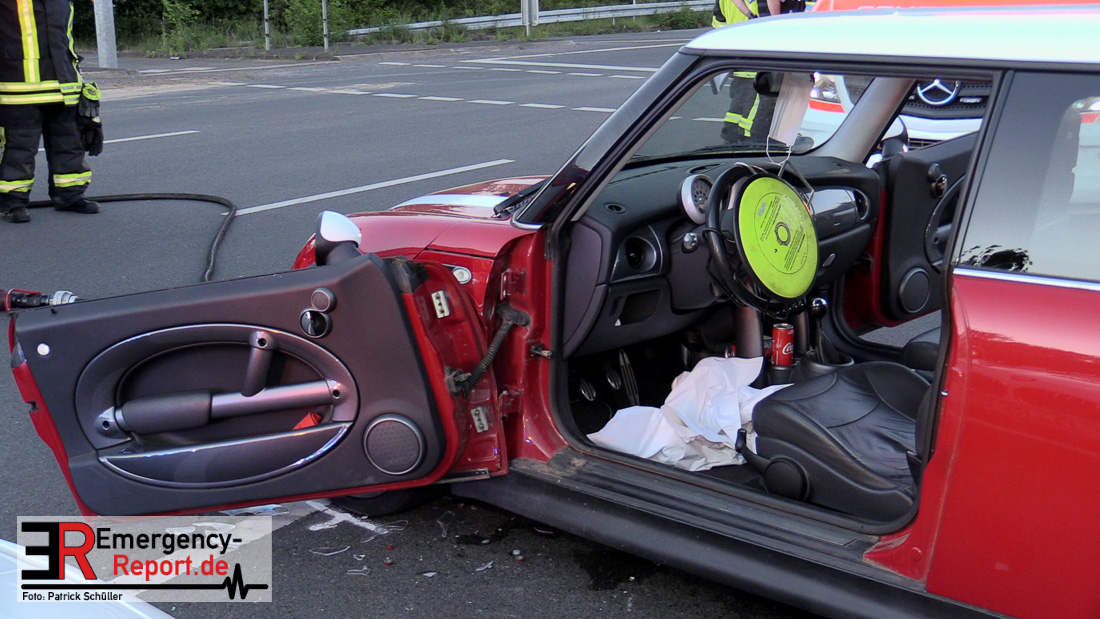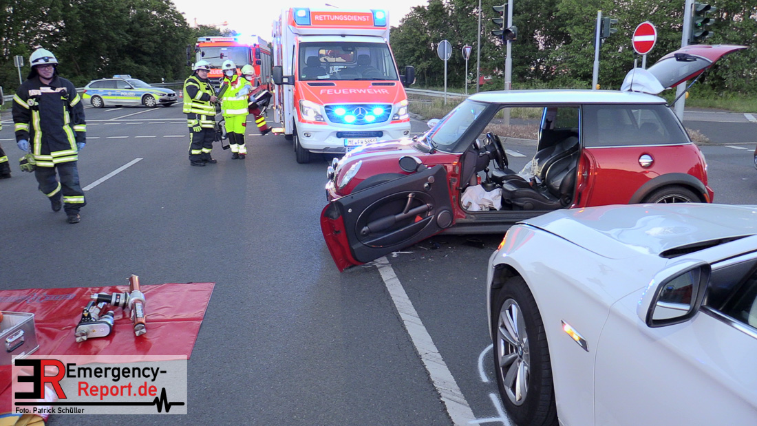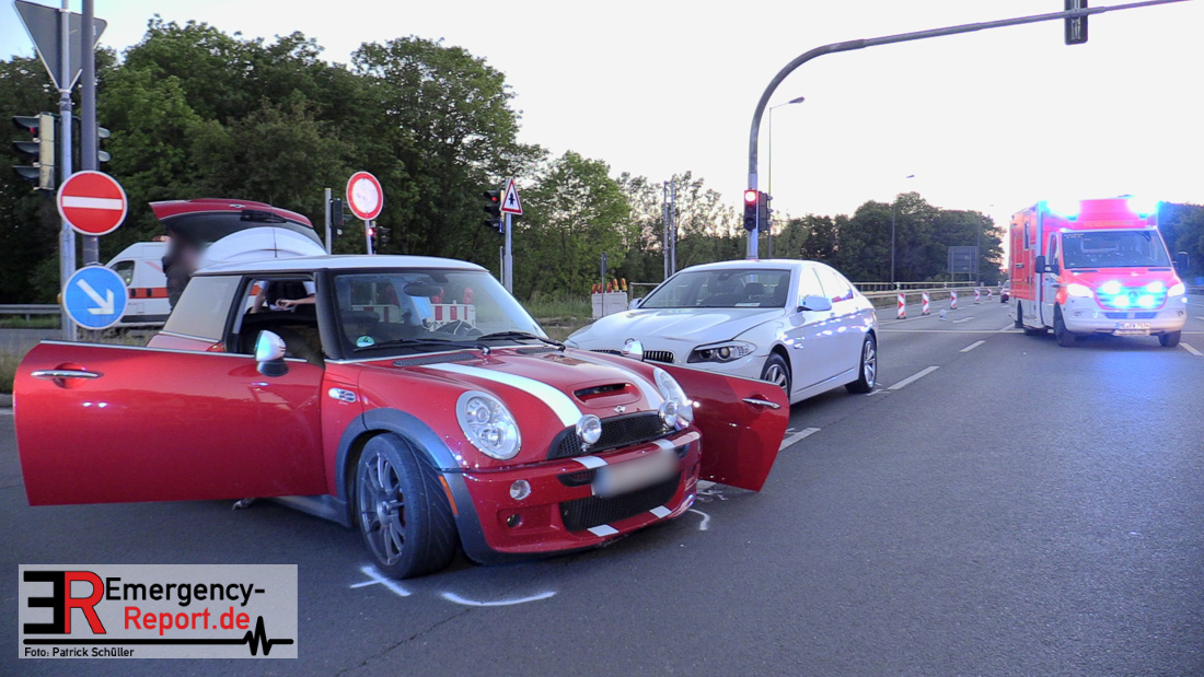 Am 05.05.2020, gegen 20.15 Uhr, ereignete sich auf der Kreuzung Berghausener Straße/Karl-Benz-Straße/Abfahrt A59 in Langenfeld ein Verkehrsunfall mit einer schwer verletzten Person. Nach bisherigen Ermittlungen und Zeugenaussagen befuhr ein 40-jähriger Düsseldorfer mit seinem PKW BMW die Berghausener Straße in Fahrtrichtung Düsseldorfer Straße. Als er in den Kreuzungsbereich zur Karl-Benz-Straße einfuhr, kollidierte er aus bislang unbekannter Ursache mit dem von der BAB 59 kommenden PKW BMW Mini eines 23 -jährigen Langenfelders. Der 40-jährige, sowie sein Kleinkind, welches ebenfalls im PKW auf einem Kindesitz saß, verblieben unverletzt. Der 23-jährige Langenfelder verletzte sich schwer und musste mittels Rettungswagen einem Krankenhaus zugeführt werden. An den Fahrzeugen entstand ein geschätzter Sachschaden im fünfstelligen Bereich. Der BMW Mini war nicht mehr fahrbereit und musste abgeschleppt werden. Die Kreuzung musste für die Dauer der Unfallaufnahme teilweise gesperrt werden.