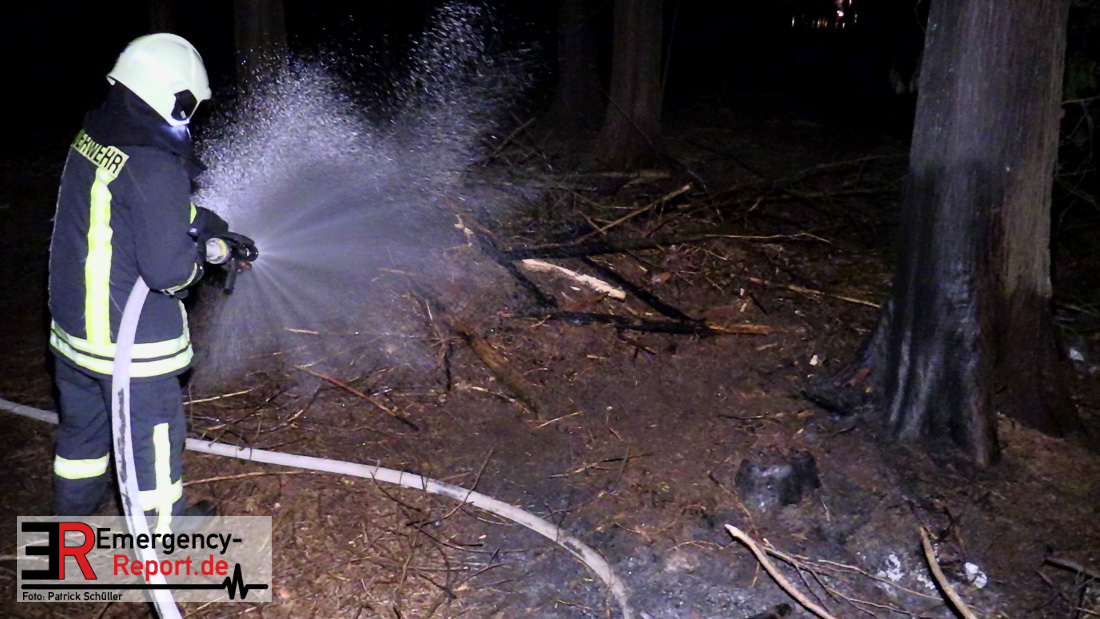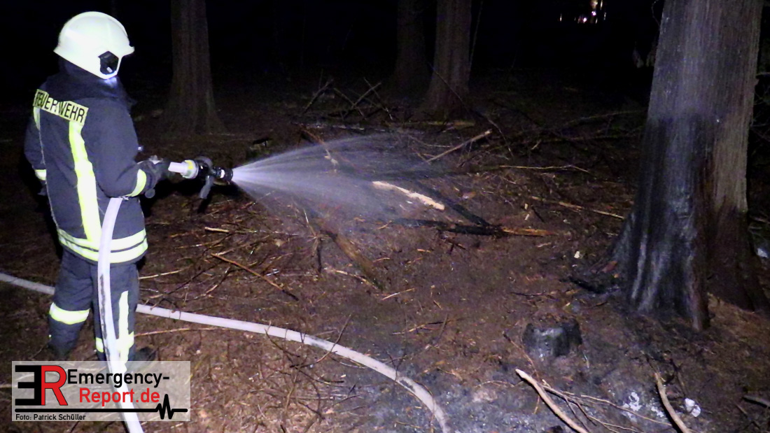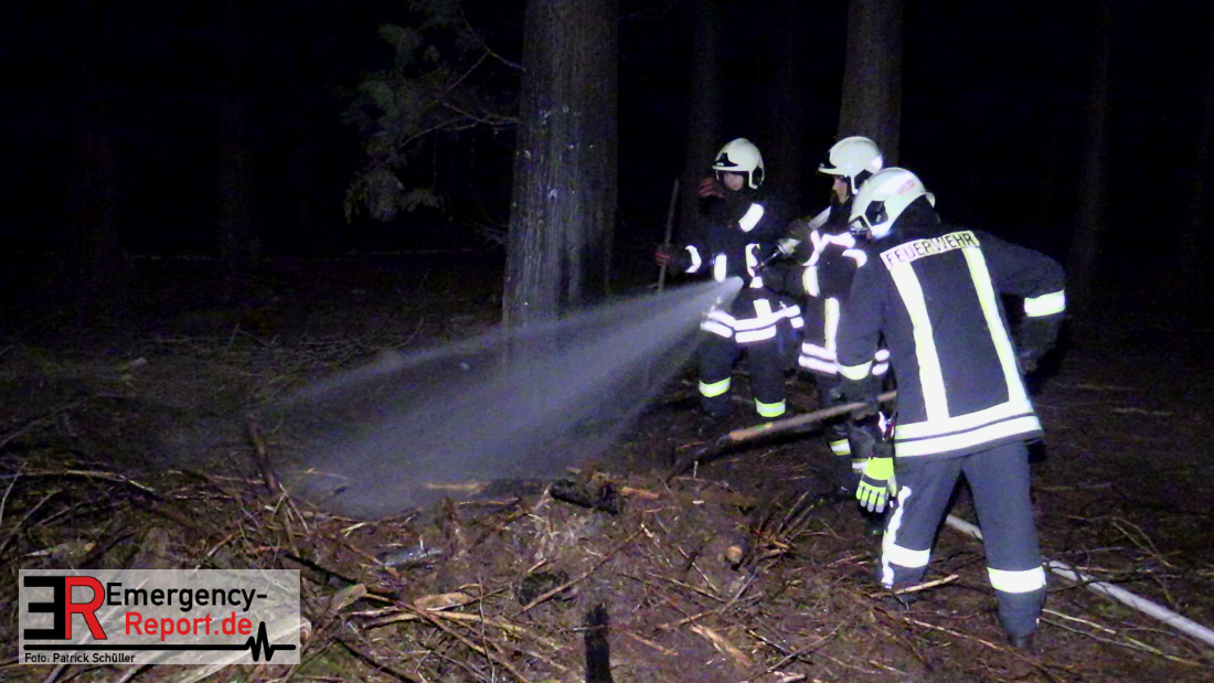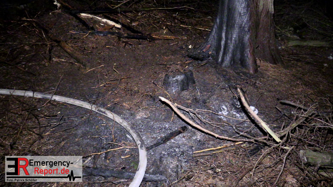 Ca. 10 m² Unterholz brannten abseits von einem Waldweg. Durch den Löschangriff konnte eine weitere Brandausbreitung