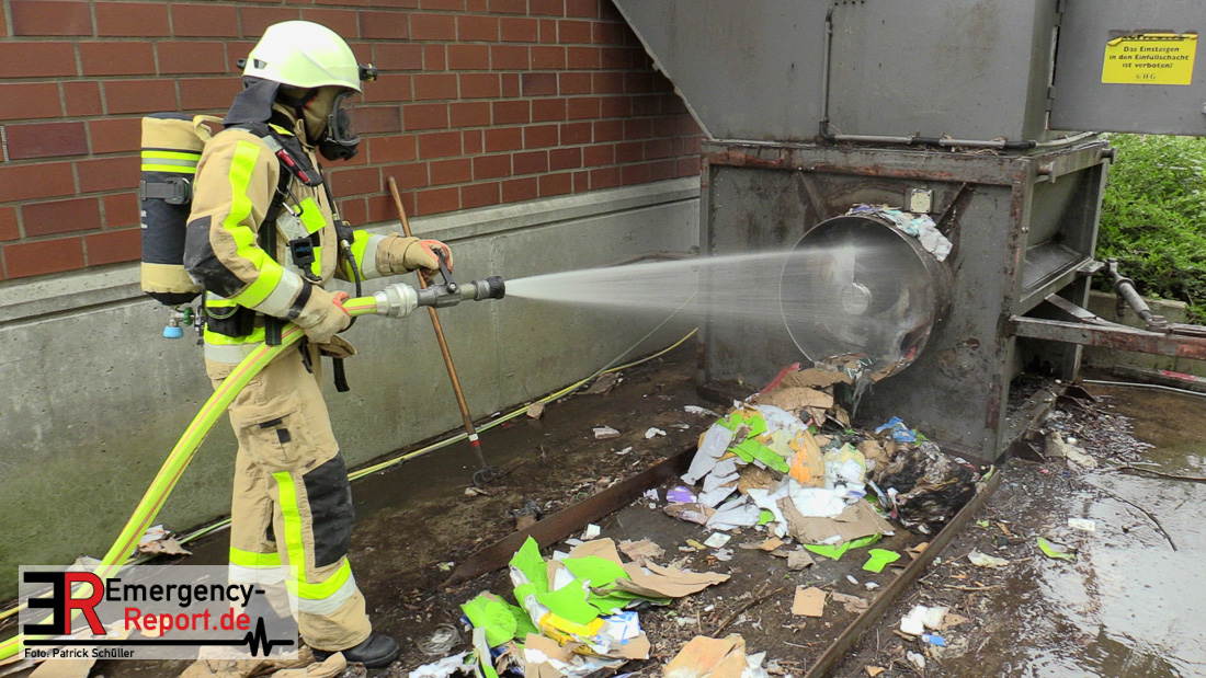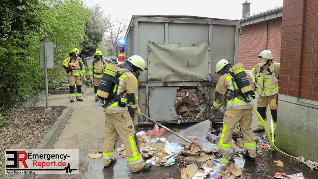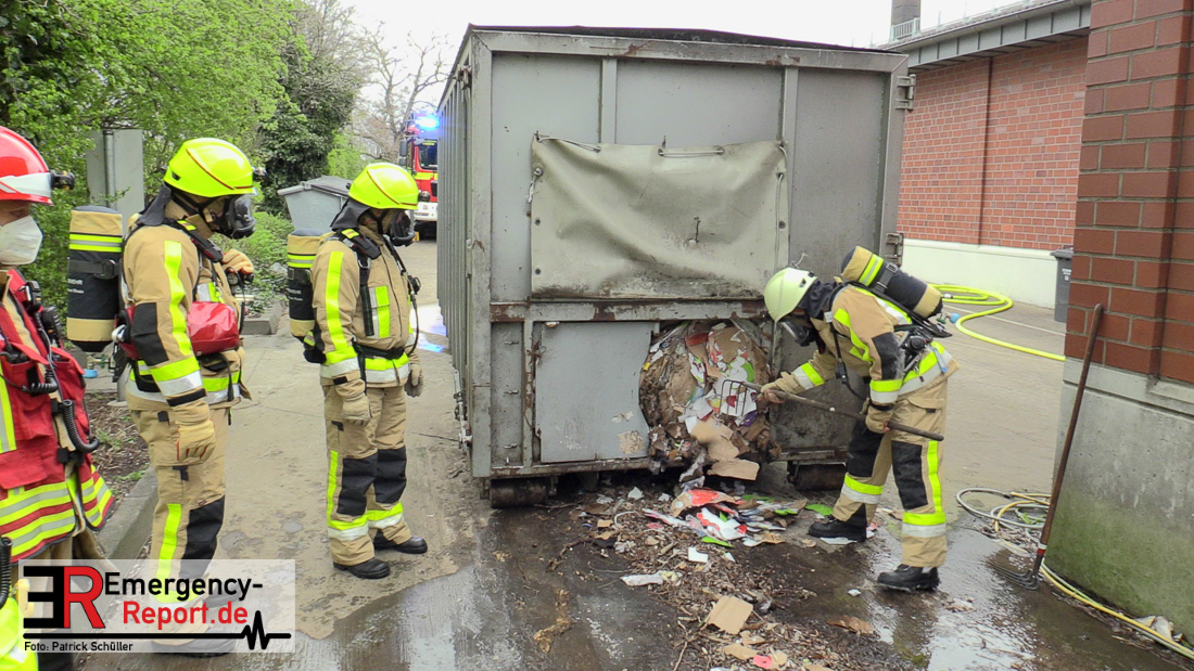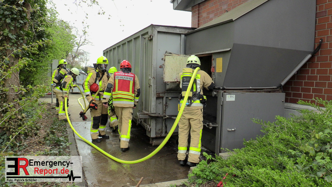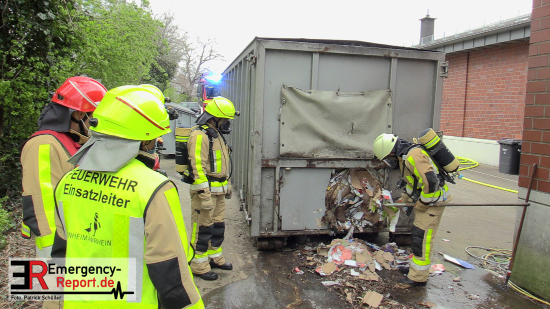 Die Feuerwehr Monheim am Rhein wurde am Nachmittag des 06.04.2022, zu einer Feuermeldung, auf die Benzstraße, alarmiert. Bei Eintreffen der ersten Kräfte stellte sich heraus, dass es zu einem Brand, im Bereich eines Papiercontainers, im Außenbereich eines Discounters, gekommen war. Durch den umgehend eingeleiteten Löschangriff konnte ein Brand, im Inneren des Containers, verhindert werden. Im weiteren Einsatzverlauf wurde der Papiercontainer, mittels Seilwinde, vom Gebäude weggezogen und Nachlöscharbeiten durchgeführt. Der Discounter war während der Einsatzmaßnahmen geräumt, verletzt wurde glücklicherweise niemand.