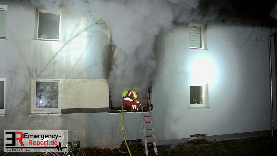 Vier Bewohner, von zwei Balkonen, retteten die Einsatzkräfte über die Drehleiter von der Vorderseite des Gebäudes. Zwei Personen, darunter ein Kleinkind, über tragbare Leitern von der Rückseite des Gebäudes. Mehrere Einsatzkräfte unter Atemschutz suchten parallel das verrauchte Treppenhaus nach weiteren vermissten Personen ab und leiteten die Brandbekämpfung ein. Auf der Rückseite des Mehrfamilienhauses drohten die Flammen auf die überliegende Wohnung und das Dach überzugreifen. Die Kräfte der Feuerwehr verhinderten das Übergreifen des Feuers. „Die Scheiben der überliegenden Wohnung waren bereits geborsten und die Flammen waren so hoch, dass sie die Dachkonstruktion erreichten“ schildert Mader.