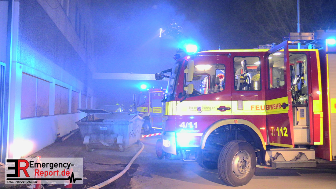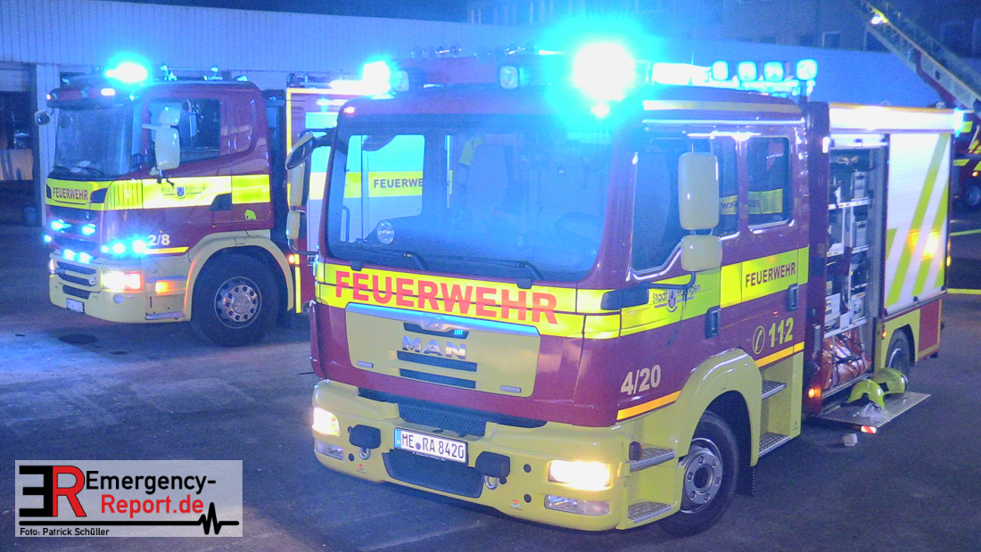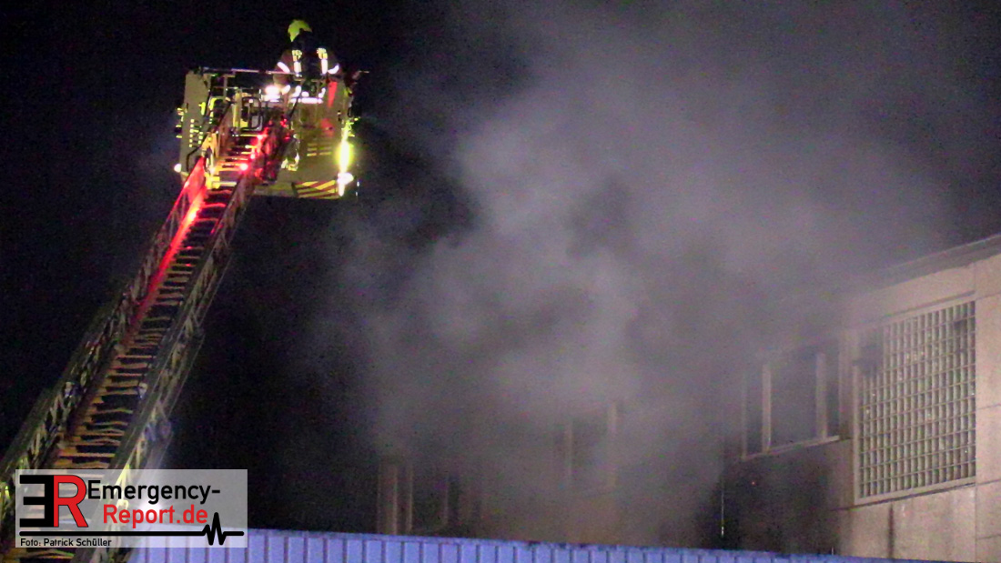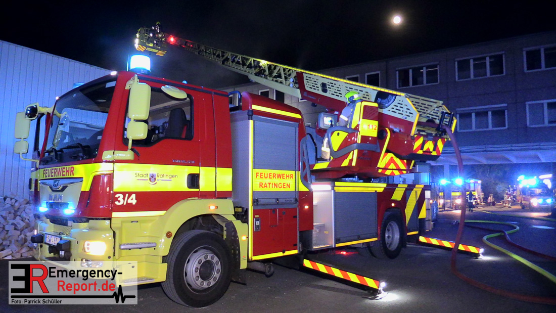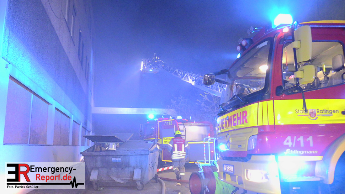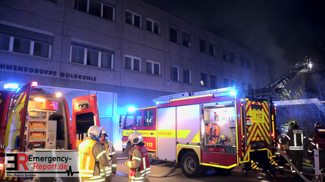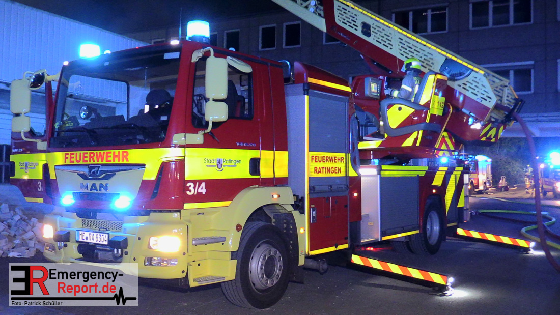 Die Feuerwehr Ratingen wurde am 07.04.2020 um 21:30 Uhr mit einem Großaufgebot zu einer Feuermeldung auf die Bahnhofstraße alarmiert. Bei Eintreffen der ersten Einsatzkräfte stellte sich heraus, dass es auf dem Gelände eines ehemaligen Gewerbebetriebes zu einem ausgedehnten Brandereignis gekommen war. Aus mehreren Fenstern im 1. Obergeschoss des ehemaligen Verwaltungsgebäudes schlugen Flammen, die Rauchentwicklung war weithin sichtbar. Augenblicklich wurde ein umfangreicher Löschangriff mit 2 C-Rohren im Innenangriff und 2 Wenderohren über Drehleitern eingeleitet. Bereits nach 20 Minuten war das Feuer unter Kontrolle, jedoch waren die Nachlöscharbeiten sehr zeitintensiv. Die Feuerwehr Ratingen war mit 4 Löschzügen im Einsatz. Die Polizei hat die Ermittlungen zur Brandursache aufgenommen.