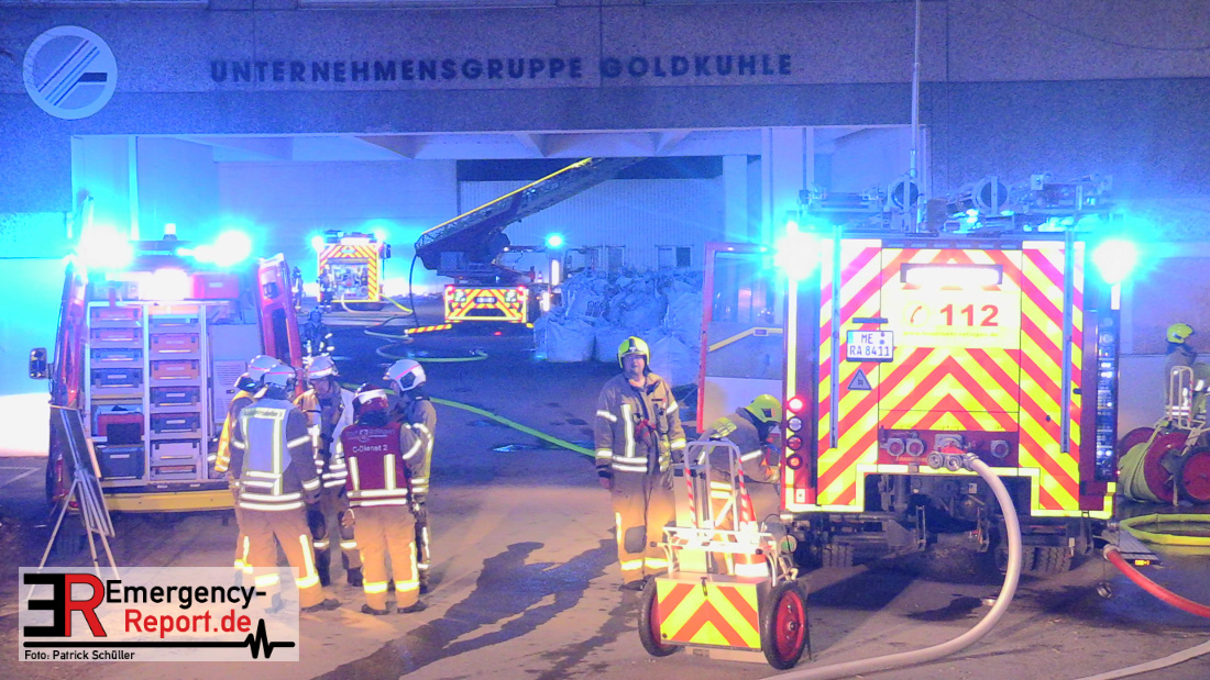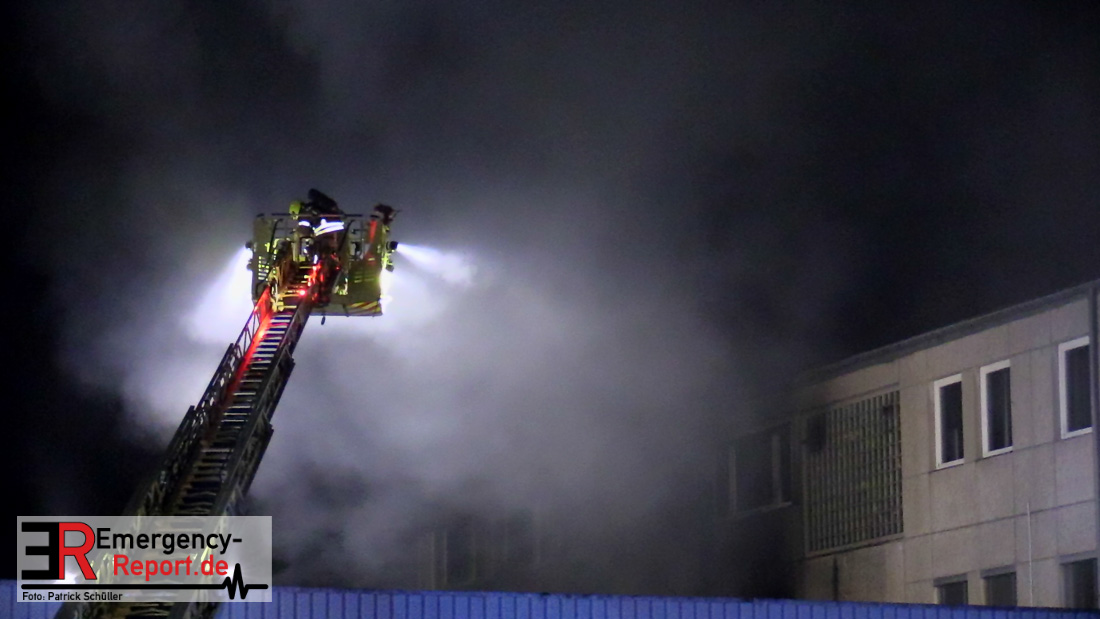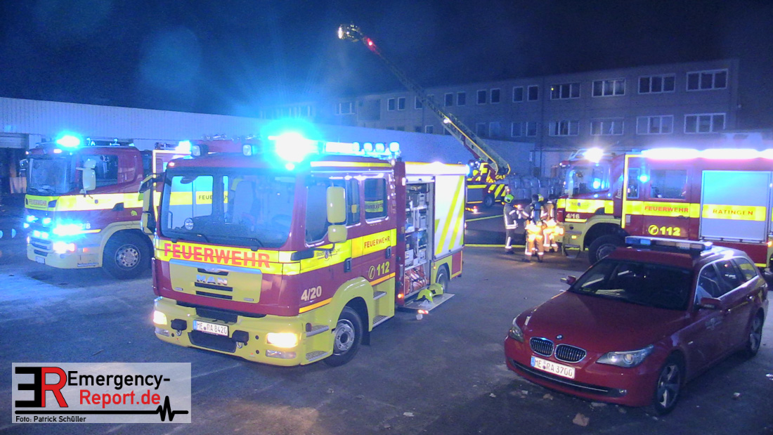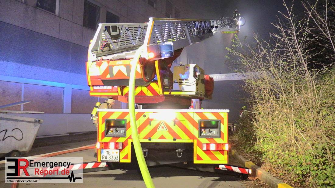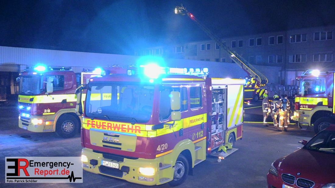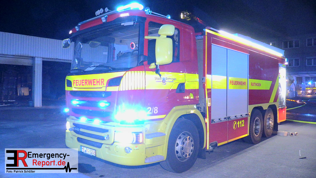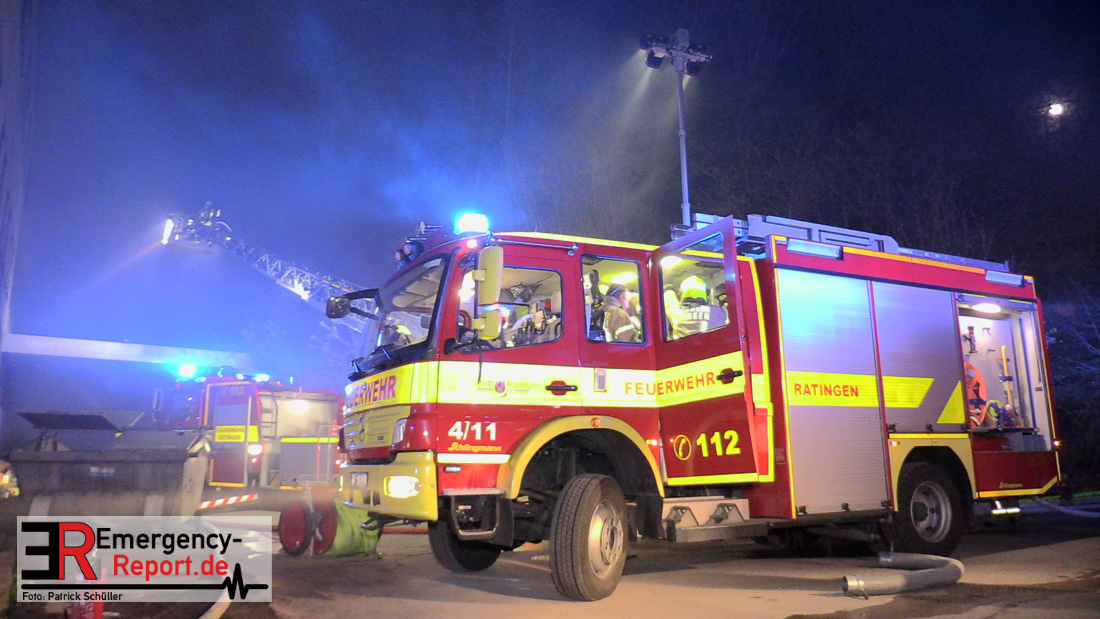 Die Feuerwehr Ratingen wurde am 07.04.2020 um 21:30 Uhr mit einem Großaufgebot zu einer Feuermeldung auf die Bahnhofstraße alarmiert. Bei Eintreffen der ersten Einsatzkräfte stellte sich heraus, dass es auf dem Gelände eines ehemaligen Gewerbebetriebes zu einem ausgedehnten Brandereignis gekommen war. Aus mehreren Fenstern im 1. Obergeschoss des ehemaligen Verwaltungsgebäudes schlugen Flammen, die Rauchentwicklung war weithin sichtbar. Augenblicklich wurde ein umfangreicher Löschangriff mit 2 C-Rohren im Innenangriff und 2 Wenderohren über Drehleitern eingeleitet. Bereits nach 20 Minuten war das Feuer unter Kontrolle, jedoch waren die Nachlöscharbeiten sehr zeitintensiv. Die Feuerwehr Ratingen war mit 4 Löschzügen im Einsatz. Die Polizei hat die Ermittlungen zur Brandursache aufgenommen.