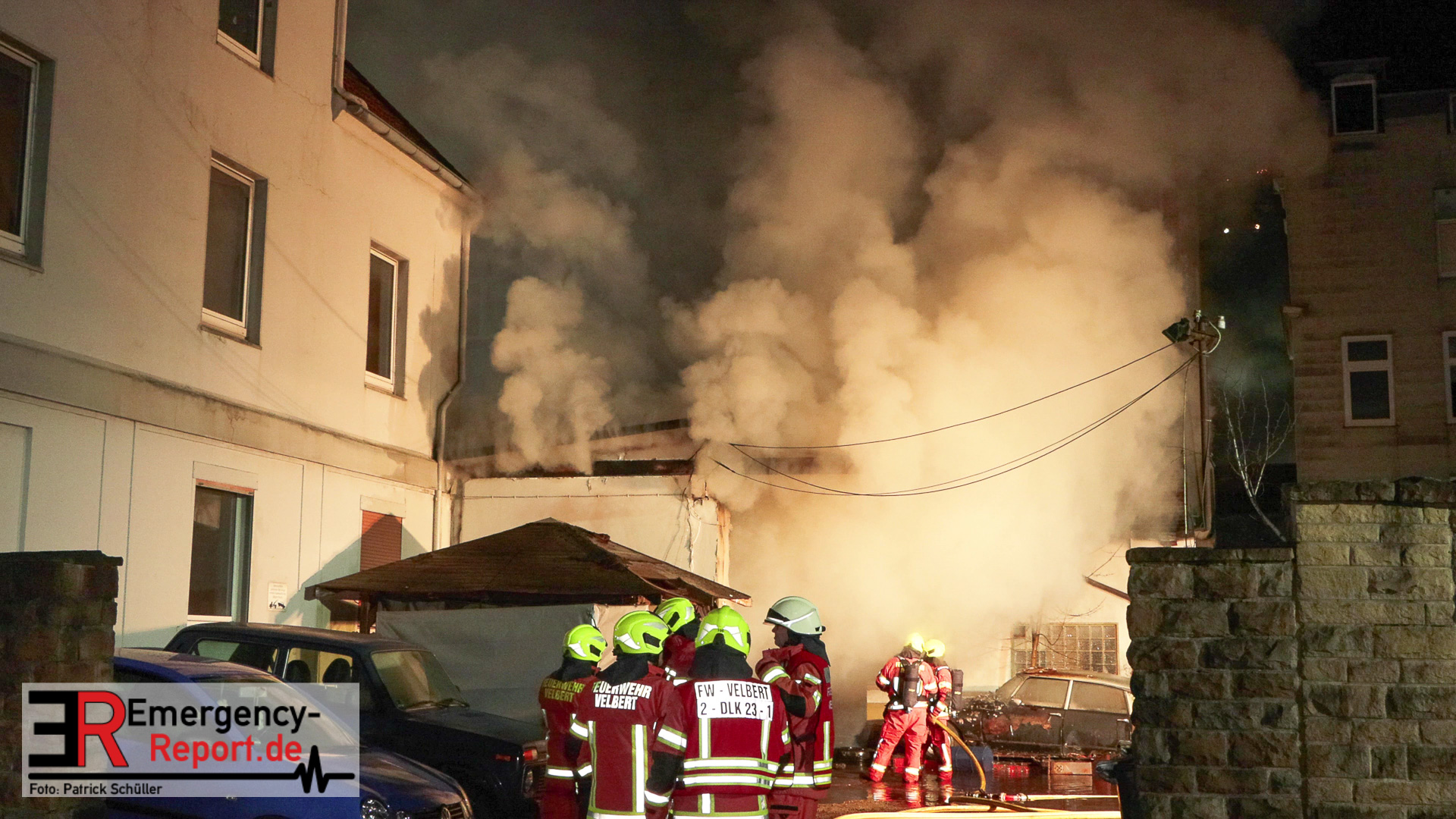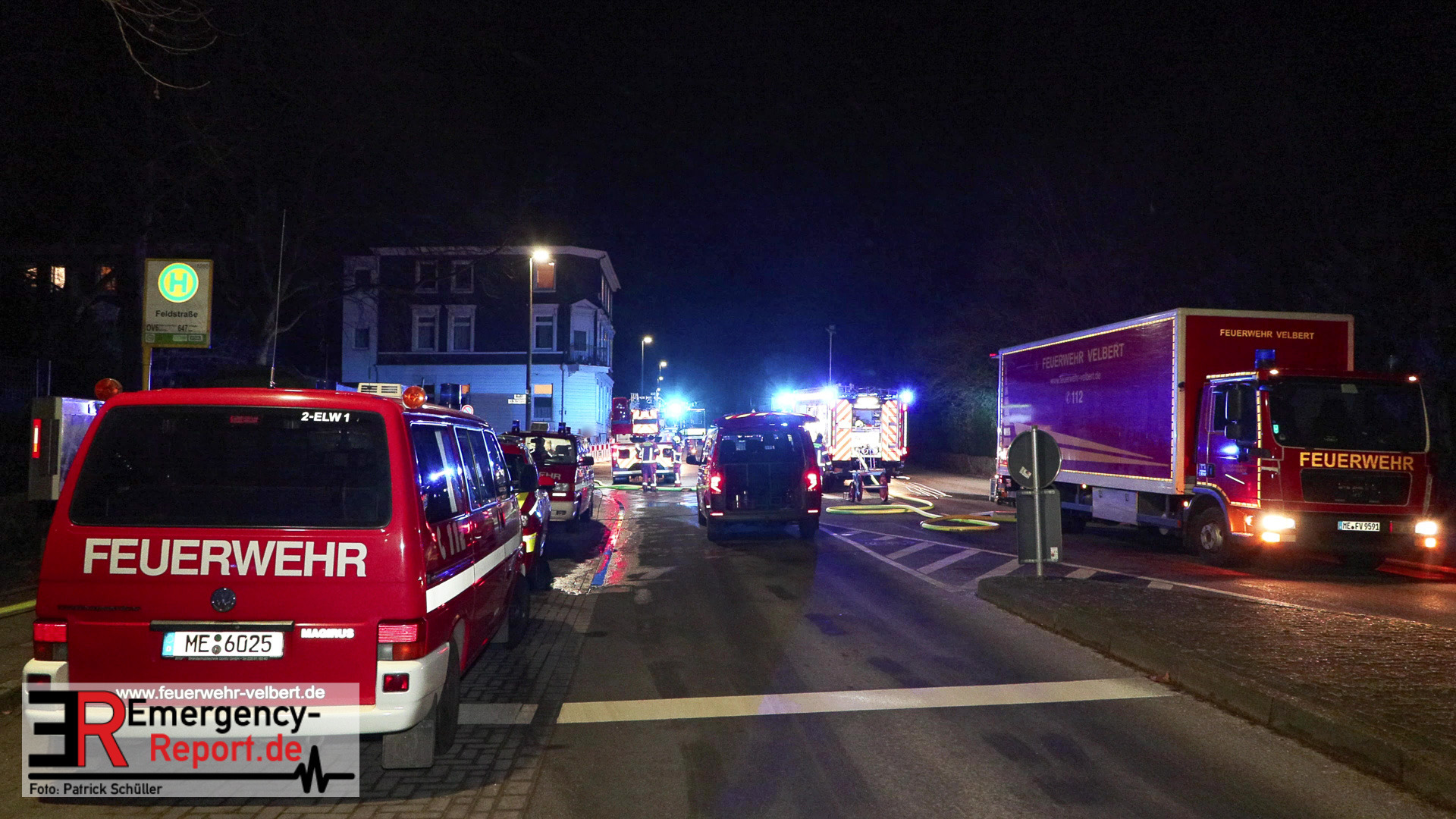 Am Mittwoch, 08.02.2023, um 17:08 Uhr wurde die Feuerwehr Velbert zu einem PKW-Brand in einer KFZ-Werkstatt alarmiert. Bereits auf der Anfahrt war ein massive Rachentwicklung kilometerweit sichtbar. Beim Eintreffen der ersten Kräfte war das Feuer bereits auf das Gebäude übergegriffen. Die Mitarbeiter der Werkstatt konnten sich zuvor ins Freie retten. Es wurde unmittelbar ein Löschangriff vorgenommen und die Wasserversorgung sichergestellt. Die betroffene Werkstatt lag mitten in einem Wohngebiet. An die Halle grenzten direkt zwei Mehrfamilienhäuser sowie ein Garagenhof mit einer Vielzahl an Garagen. Durch den Polizei wurden die angrenzenden Gebäuden geräumt und eine Teil der Bewohner/innen vorerst in einem beheizten Lienienbus untergebracht.