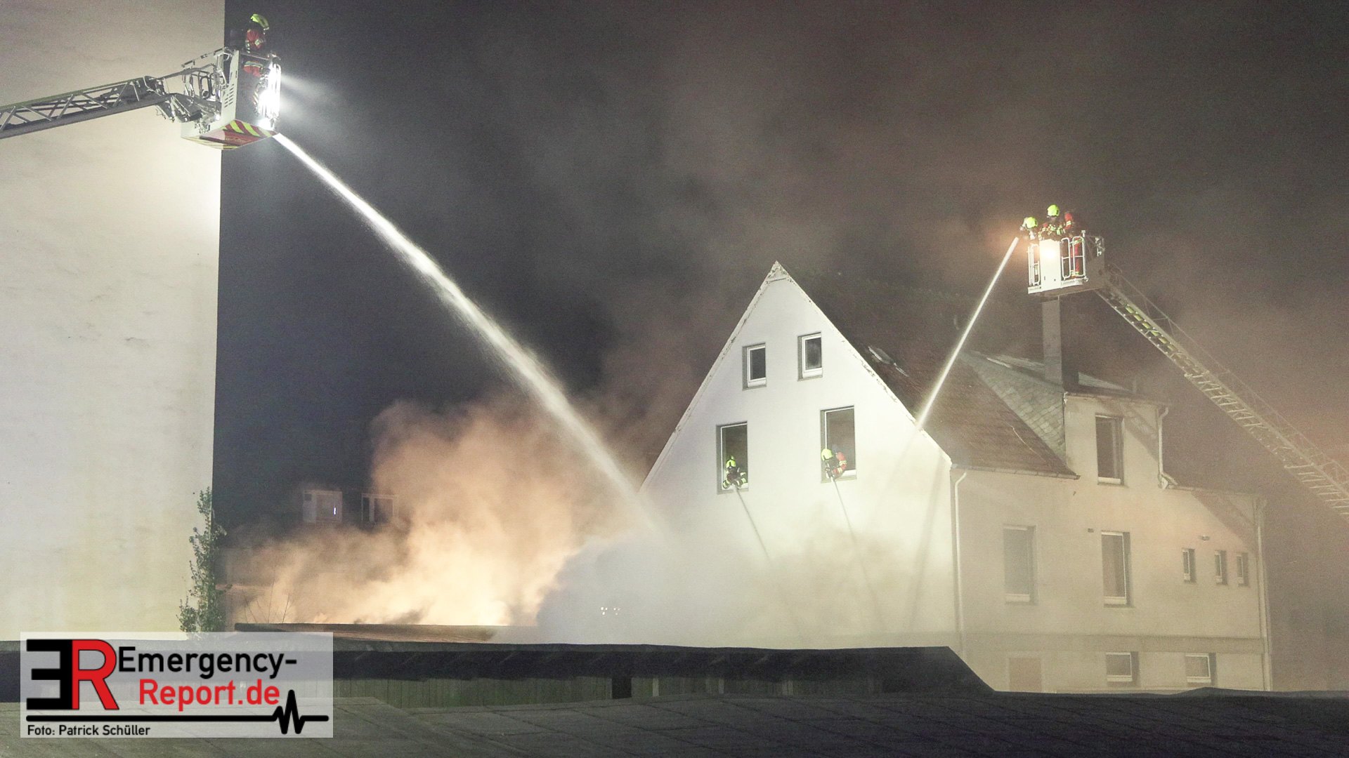 Aufgrund von weitere anhaltenden, immer wieder auffachenden Brandstellen in der Zwischendecke sowie im hinteren Bereich der Halle wurde durch ein lokales Bauunternehmen ein Bagger zu der Einsatzstelle nachgefordert. Dieser entfernte zunächst ein Fahrzeug im vorderen Bereich der Halle und trug das Dach des Gebäudes ab. Dabei auftretende Glutnester wurden parallel abgelöscht. Im Verlauf wurde die komplette Halle abgerissen. Durch die umfangreichen Maßnahmen der Feuerwehr konnte ein Übergreifen des Feuers auf die Wohngebäude sowie auf den Garagenhof verhindert werden.