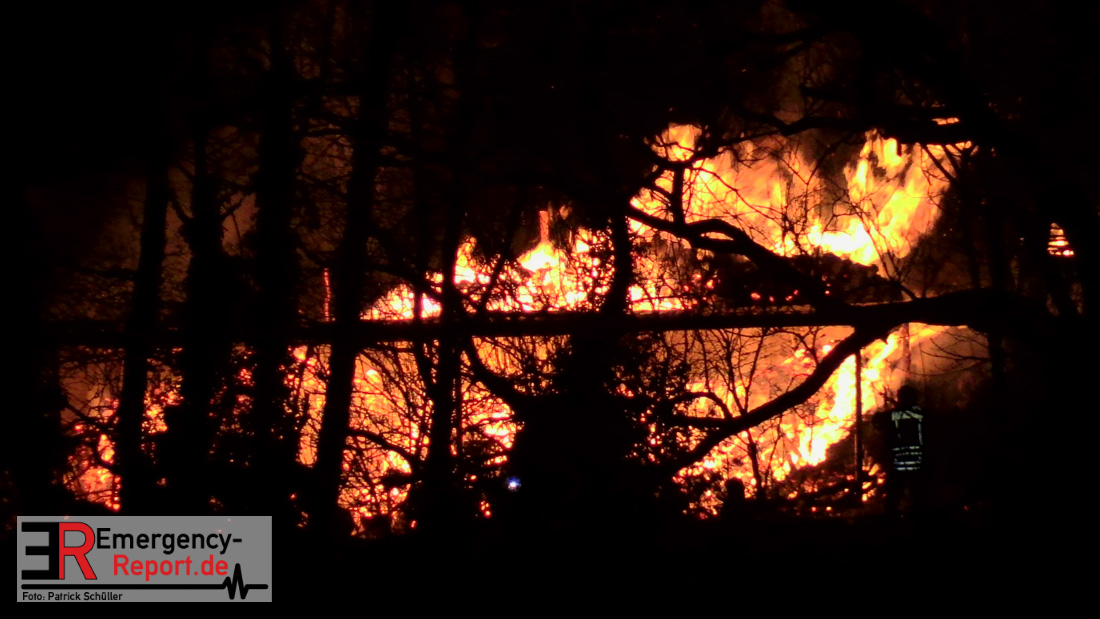 Bei Eintreffen der ersten Einsatzkräfte stellte sich heraus, dass es auf einem abgelegenen Gelände zu einem ausgedehnten Brandereignis gekommen war.