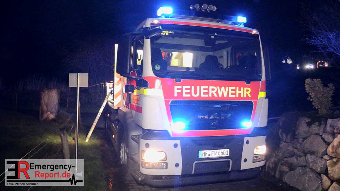 Die Feuerwehr Wülfrath wurde in der Nacht (09.03.2020) zu einer Feuermeldung auf die Straße „Unterdüssel“ alarmiert.