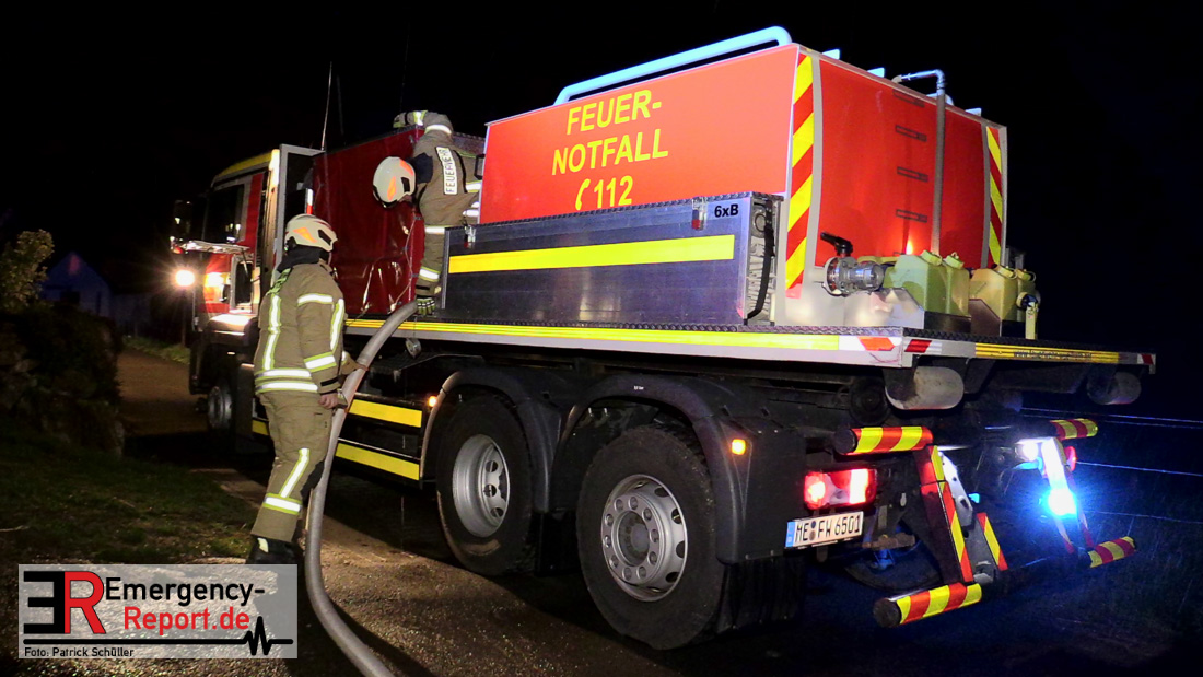 Da es im unmittelbaren Bereich der Einsatzstelle keinen Hydranten gab, musste ein Pendelverkehr mit einem Lösch- und einem Wechselladerfahrzeug eingerichtet werden.