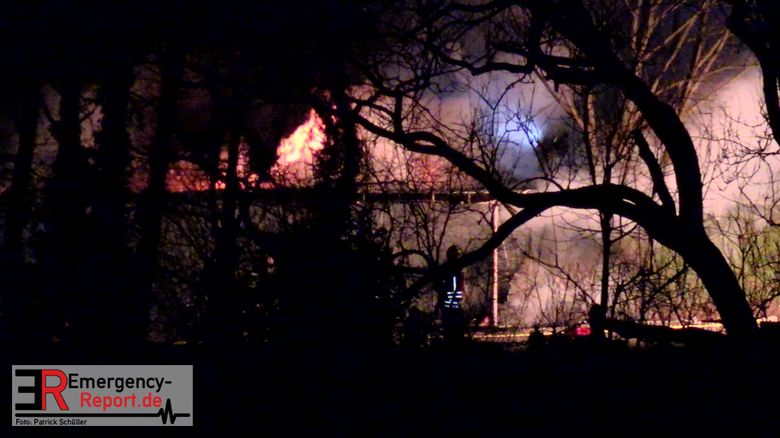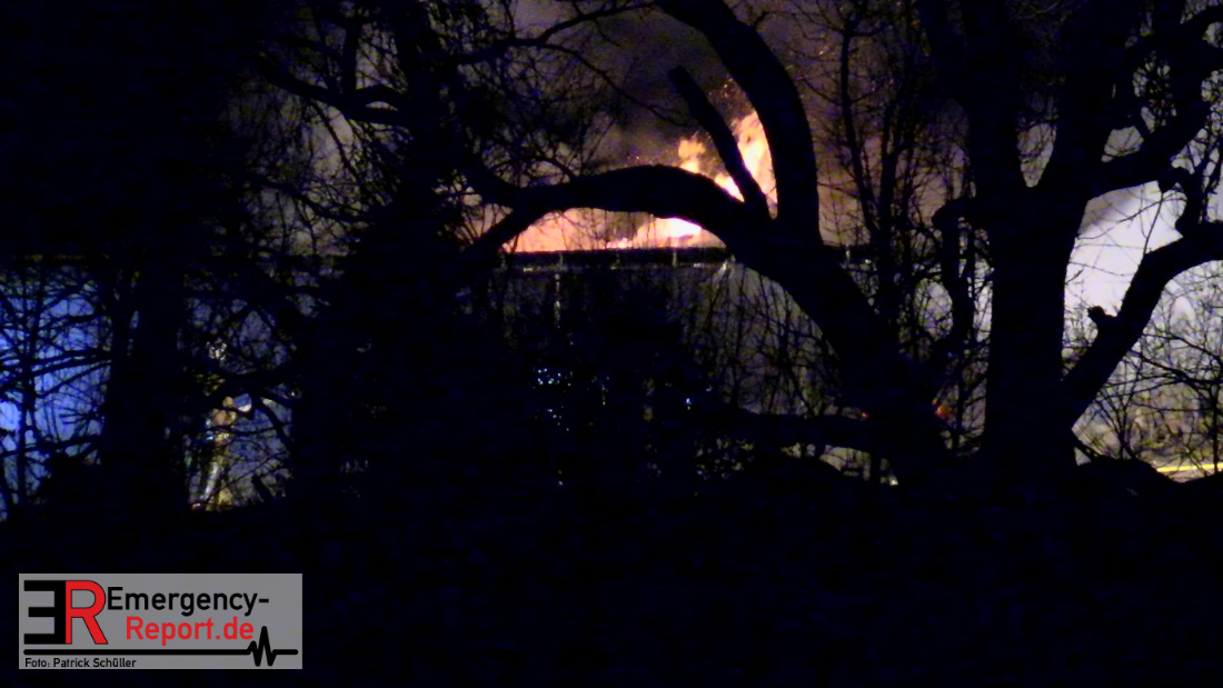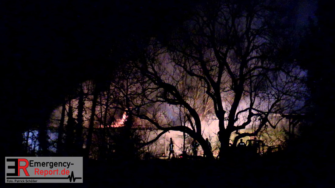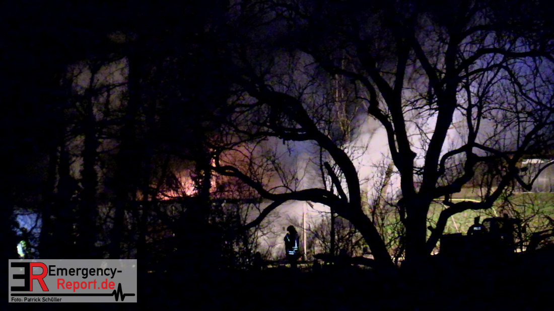 Ein Unterstand mit Gerätschaften brannte in voller Ausdehnung. Die Flammen schlugen meterhoch in den Nachthimmel.