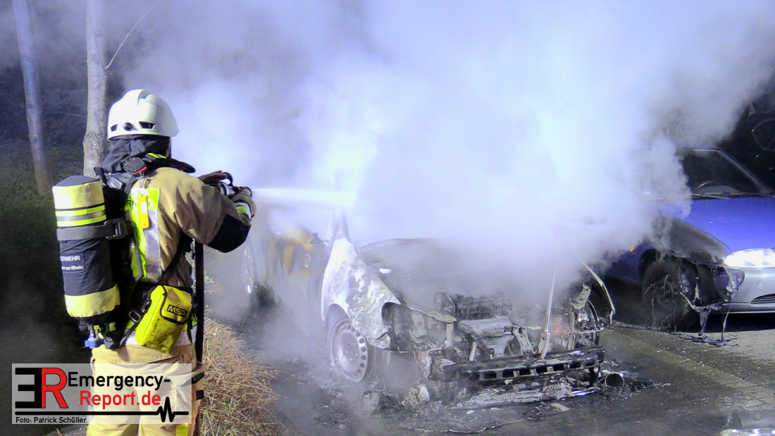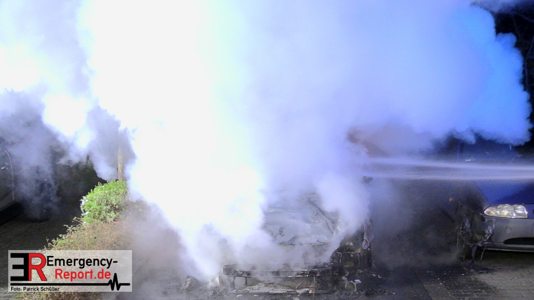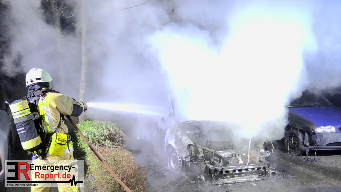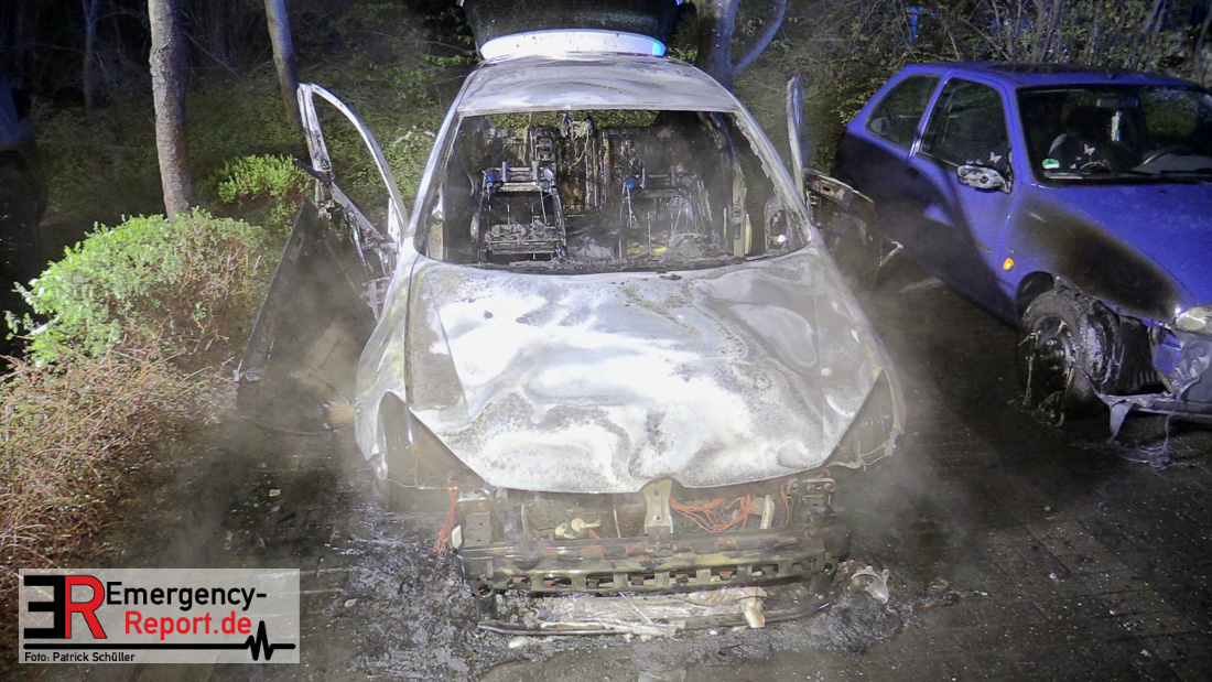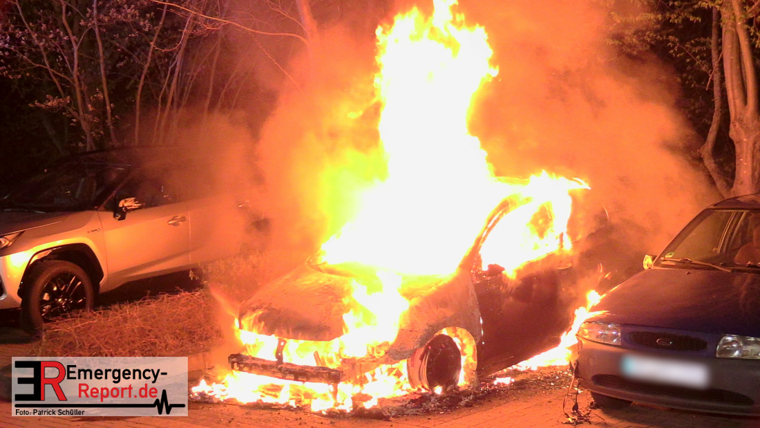 In der Nacht zu Freitag (9. April 2021) ist gegen 1.30 Uhr ein grauer VW Golf auf dem Parkplatz vor der Kindertagesstätte Linzer Straße in Monheim-Baumberg in Brand geraten und komplett zerstört worden. Die beiden neben dem Golf abgestellten Fahrzeuge, ein blauer Ford Fiesta und grauer Toyota RAV4, sind von der starken Hitzeentwicklung ebenfalls in Mitleidenschaft gezogen worden. Insgesamt entstand ein Sachschaden an allen drei Fahrzeugen in fünfstelliger Höhe.