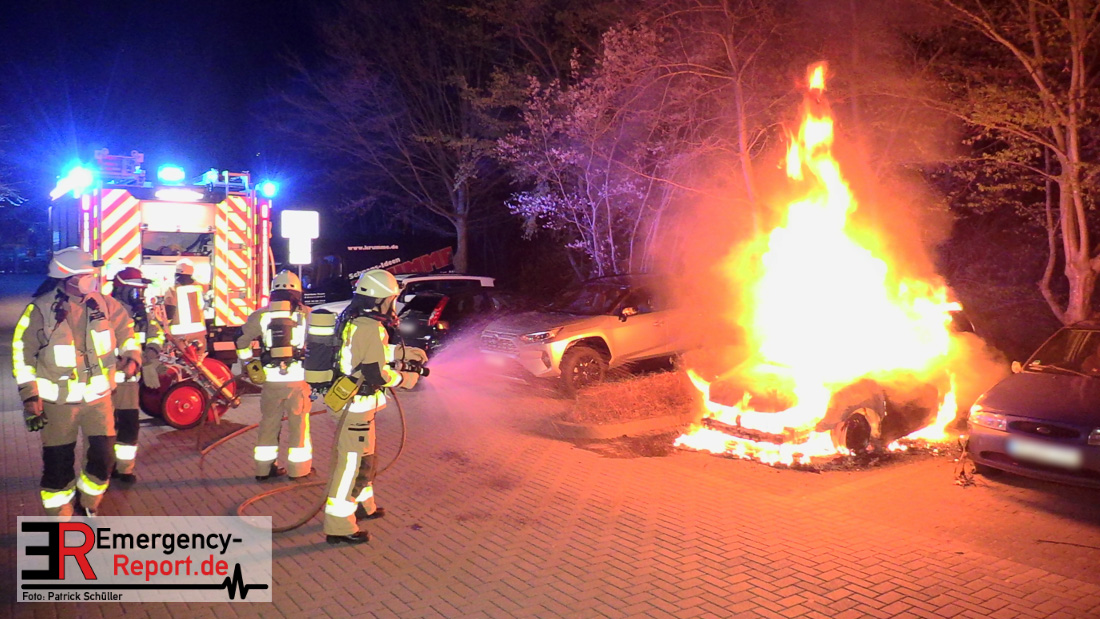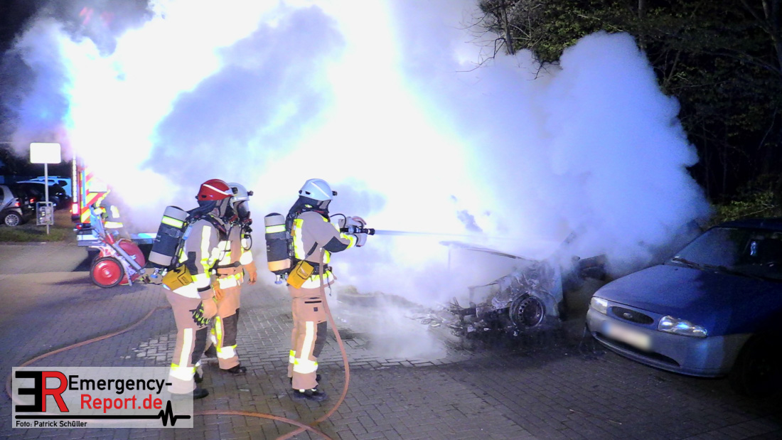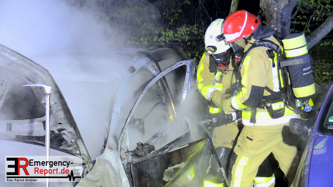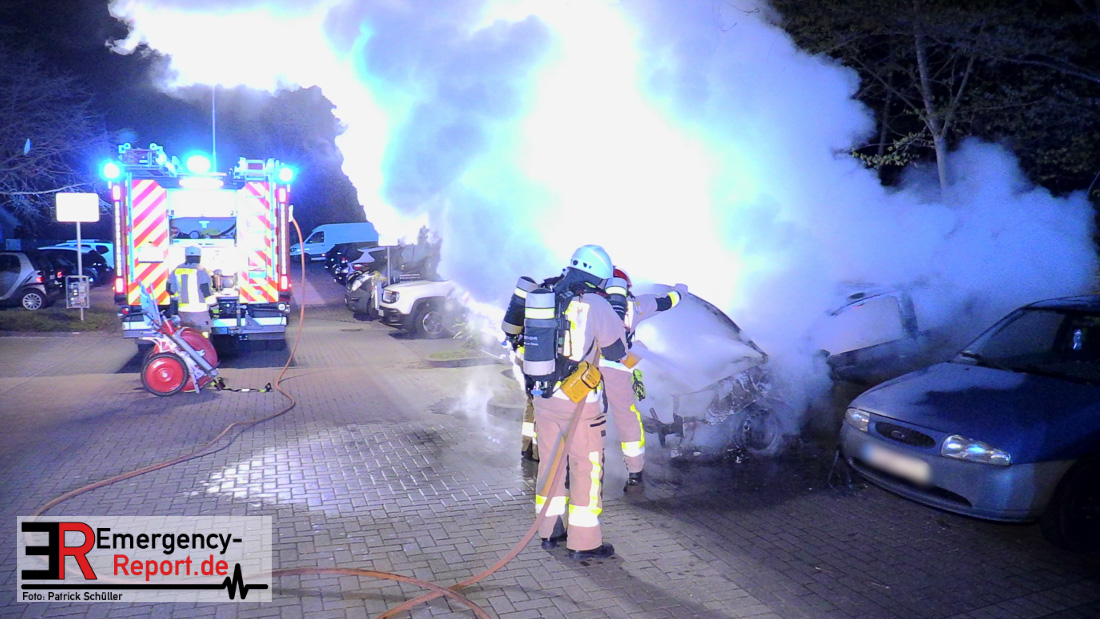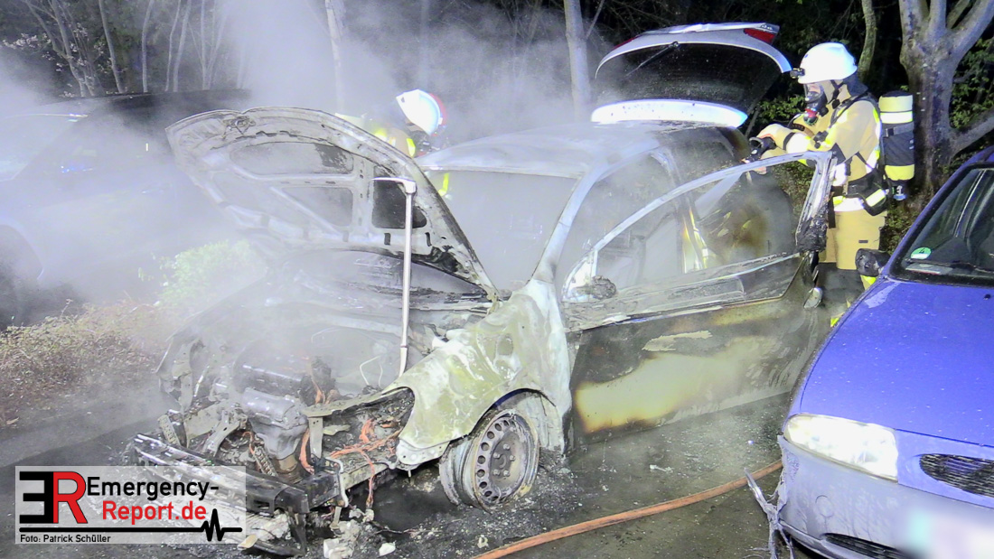 In der Nacht zu Freitag (9. April 2021) ist gegen 1.30 Uhr ein grauer VW Golf auf dem Parkplatz vor der Kindertagesstätte Linzer Straße in Monheim-Baumberg in Brand geraten und komplett zerstört worden. Die beiden neben dem Golf abgestellten Fahrzeuge, ein blauer Ford Fiesta und grauer Toyota RAV4, sind von der starken Hitzeentwicklung ebenfalls in Mitleidenschaft gezogen worden. Insgesamt entstand ein Sachschaden an allen drei Fahrzeugen in fünfstelliger Höhe.