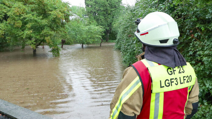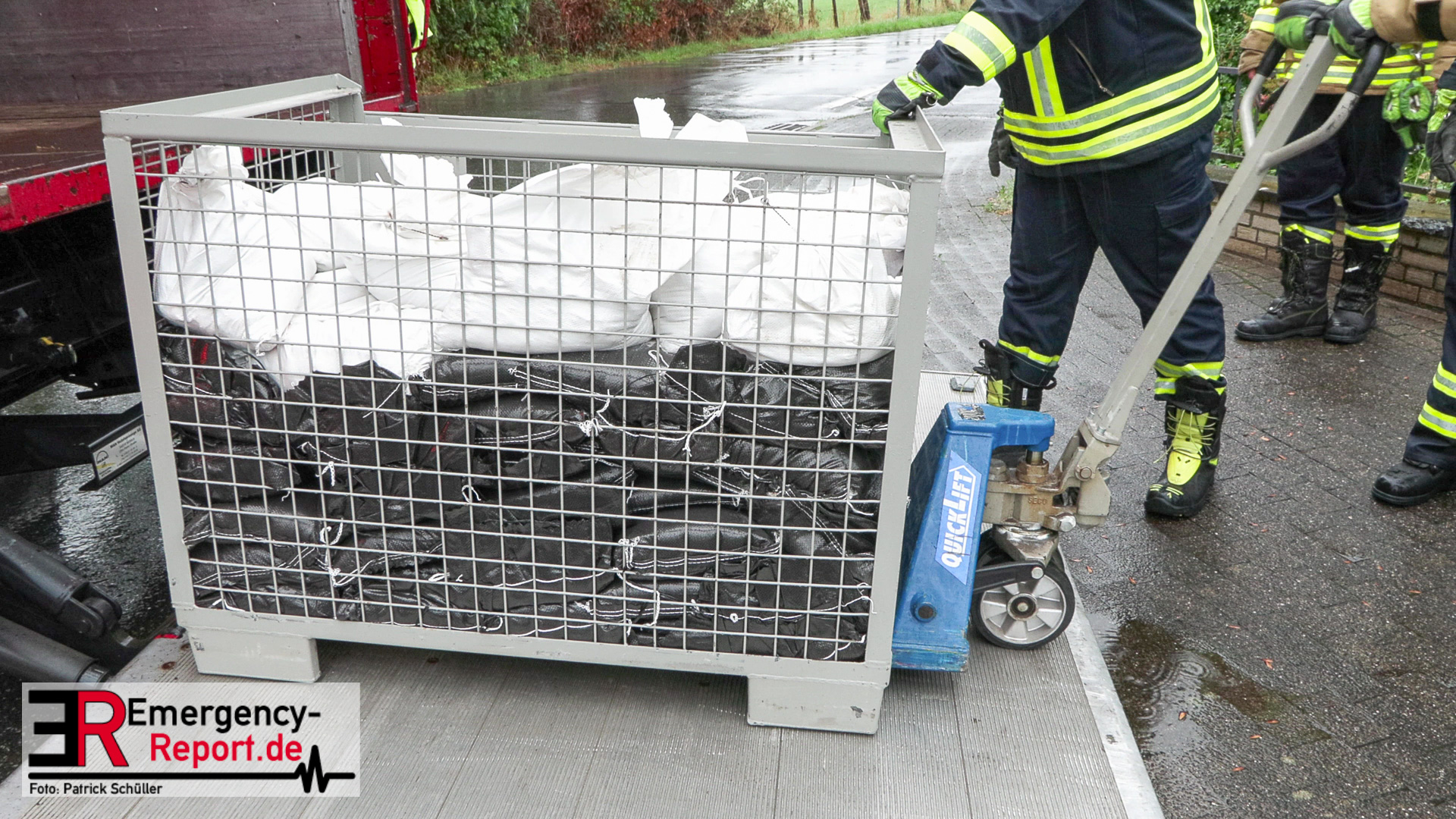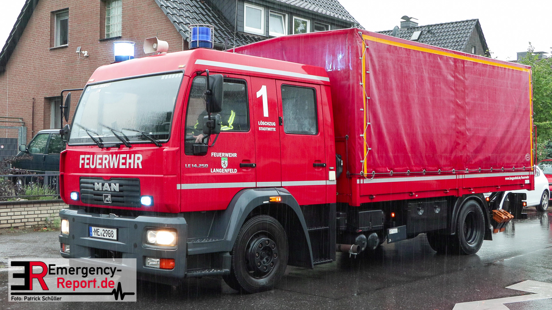 Am 09.09.2025 sorgte mehrstündiger Regen dafür, dass es in Langenfeld zu mehreren Feuerwehreinsätzen kam. Die Aufnahmen zeigen eine Einsatzstelle auf der Straße Rietherbach. Dort war der Viehbach über die Ufer getreten. Häuser waren laut offiziellen Informationen nicht bedroht. Sandsäcke wurden vorsorglich bereitgestellt.
