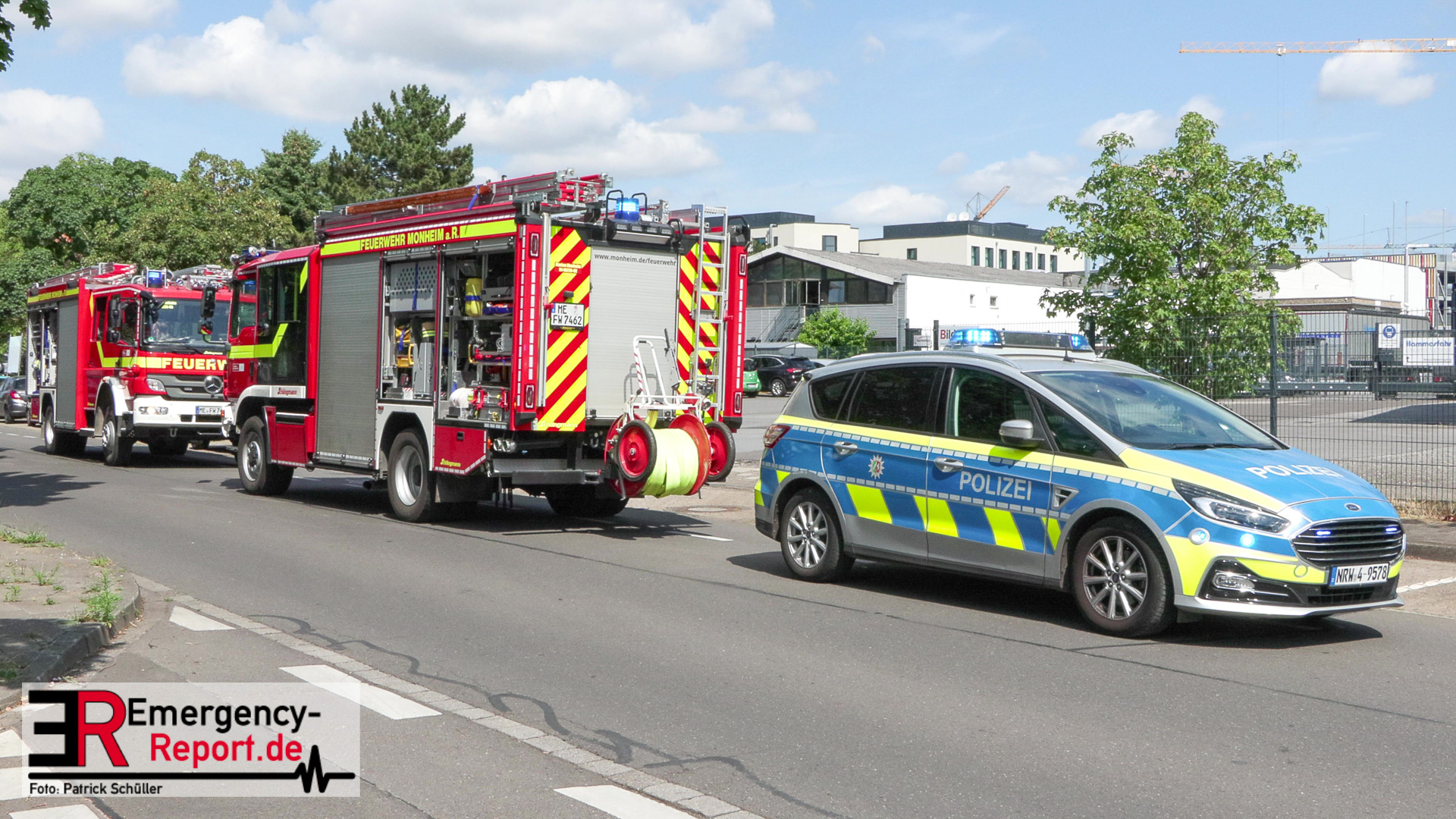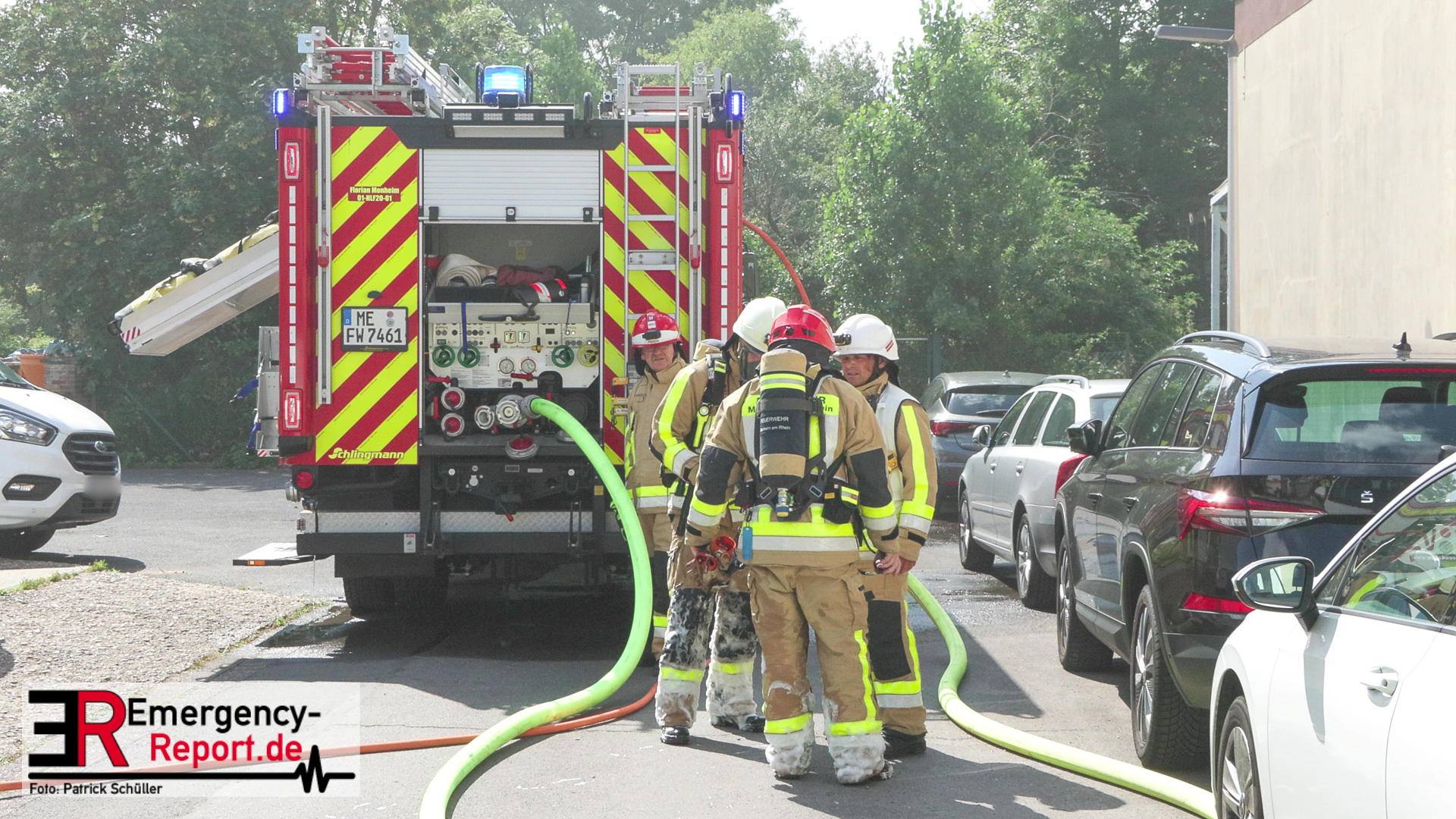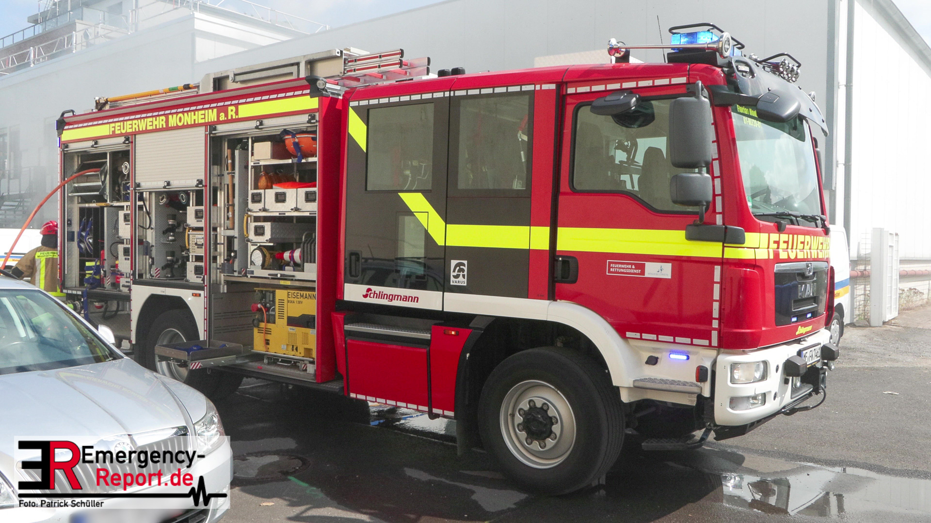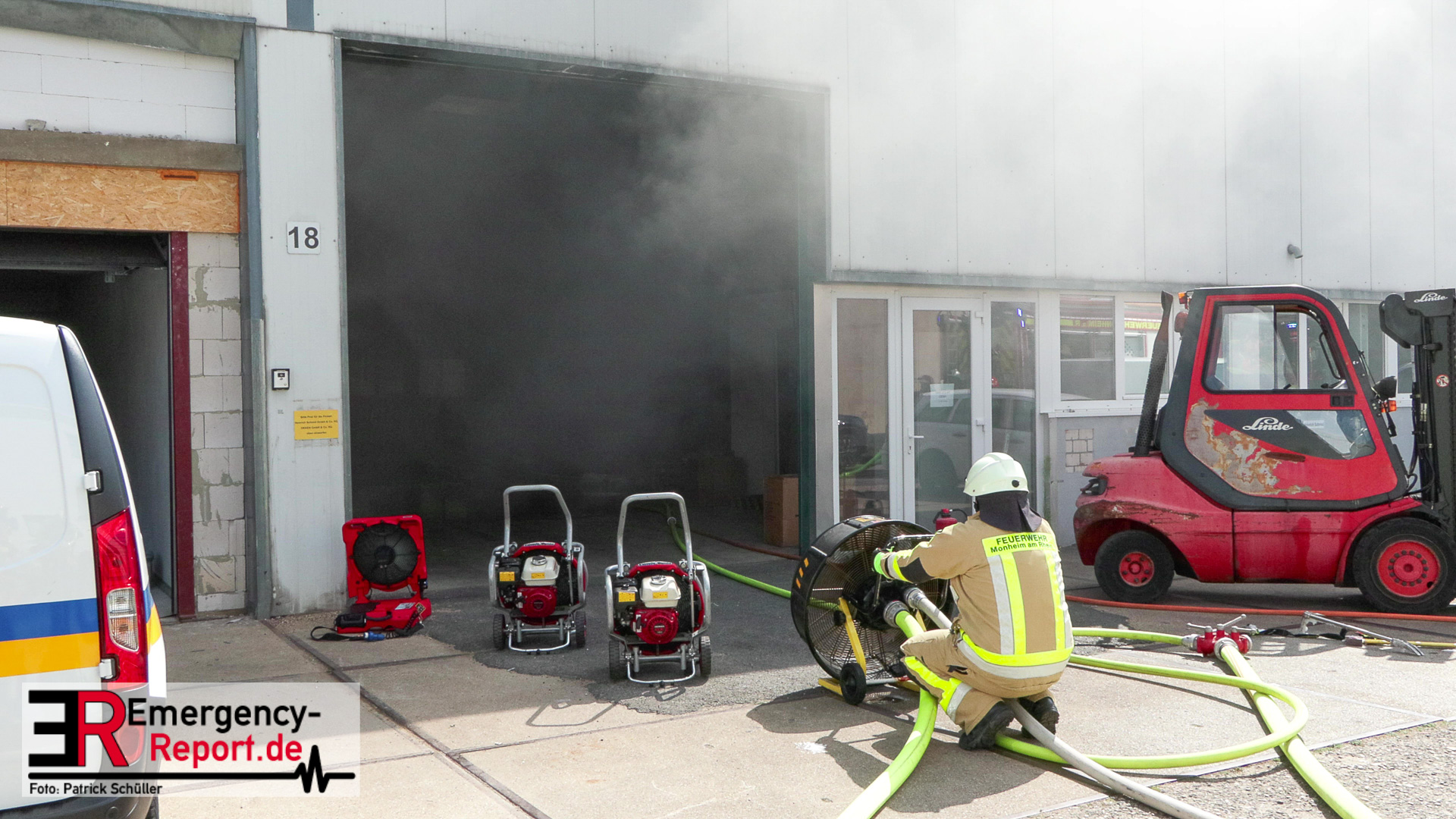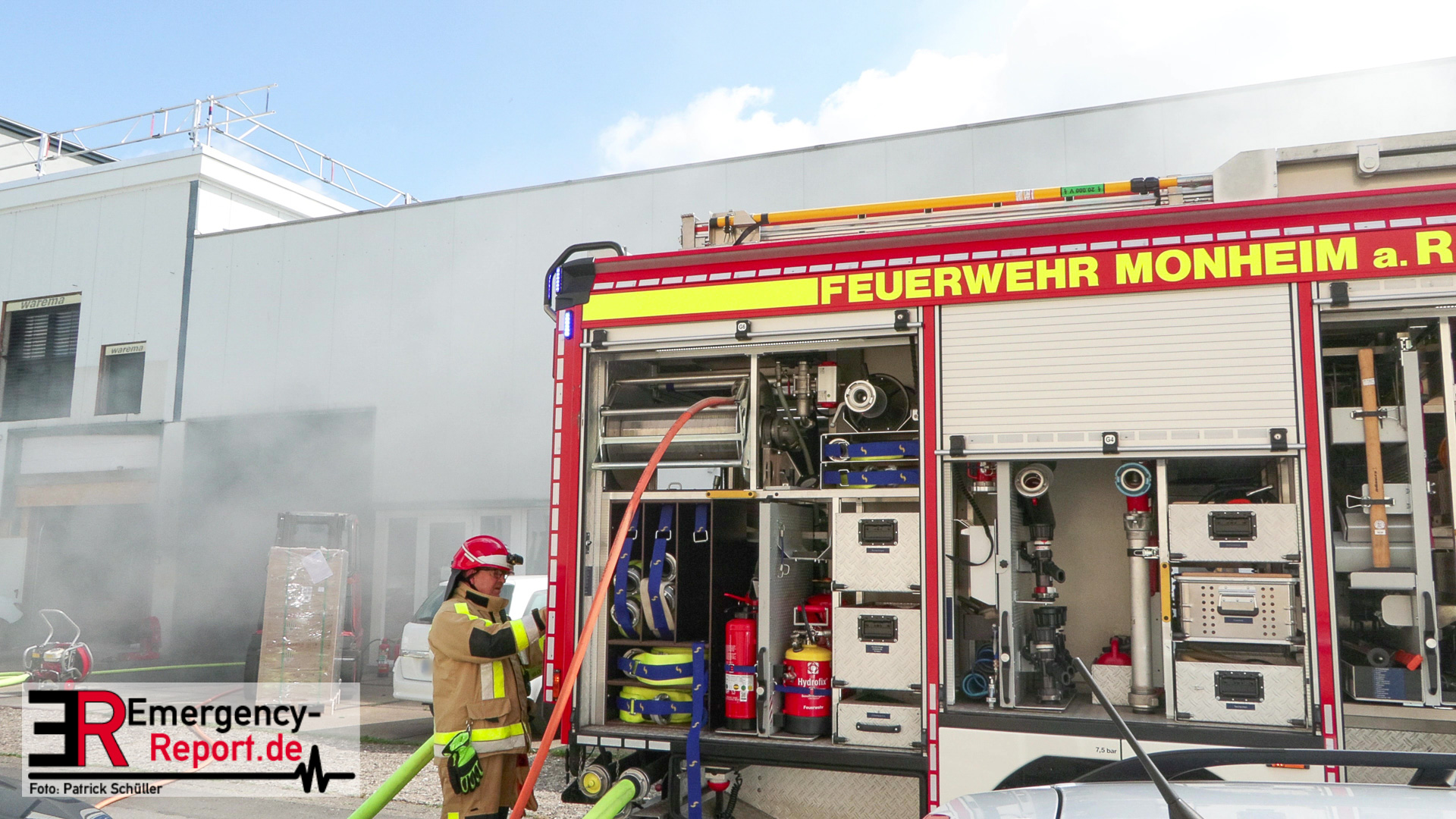 Die Feuerwehr Monheim wurde am Vormittag des 10.07.2023 zu einer Feuermeldung, auf die Niederstraße, alarmiert. Bei Eintreffen der ersten Einsatzkräfte stellte sich heraus, dass eine Halle massiv verraucht war. Der Grund für die starke Rauchentwicklung war ein brennender Mercedes im Gebäude. Durch den unverzüglich eingeleiteten Löschangriff konnte eine weitere Brandausbreitung verhindert werden. Aufgrund der enormen Verrauchung wurden umfangreiche Lüftungsmaßnahmen durchgeführt. Verletzt wurde niemand. Während der Einsatzmaßnahmen war die Niederstraße, im Bereich der Einsatzstelle, gesperrt. Die Polizei hat die Ermittlungen zur Brandursache aufgenommen.