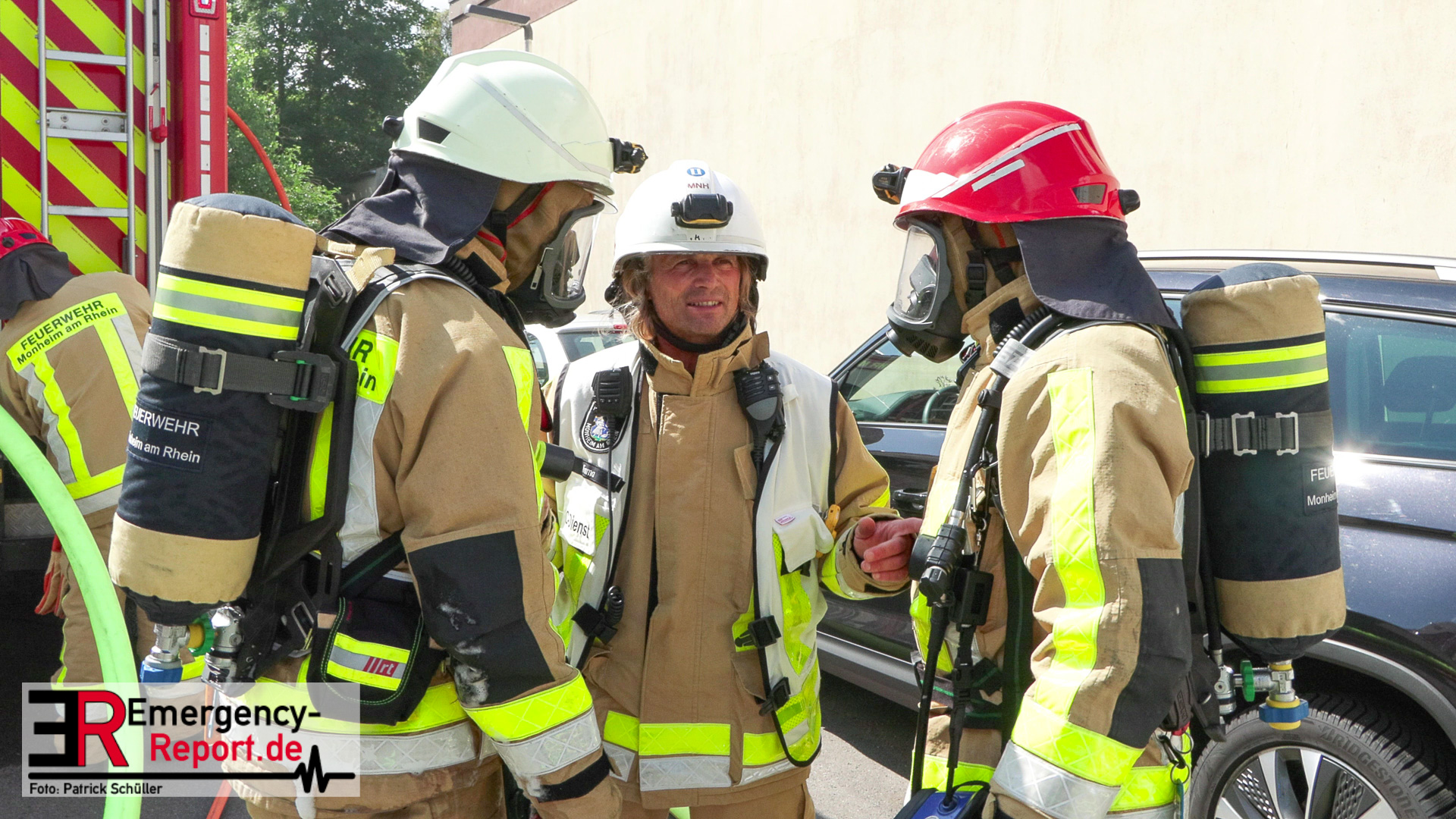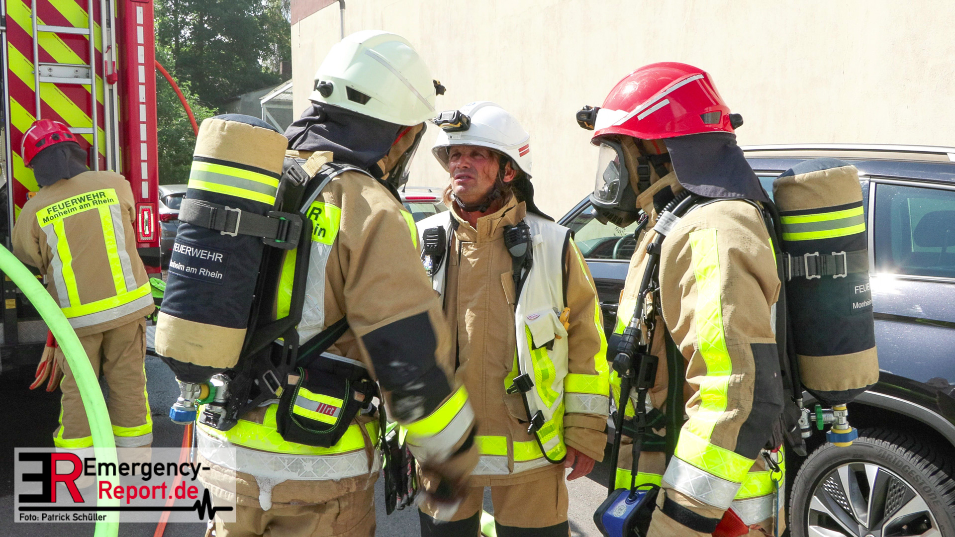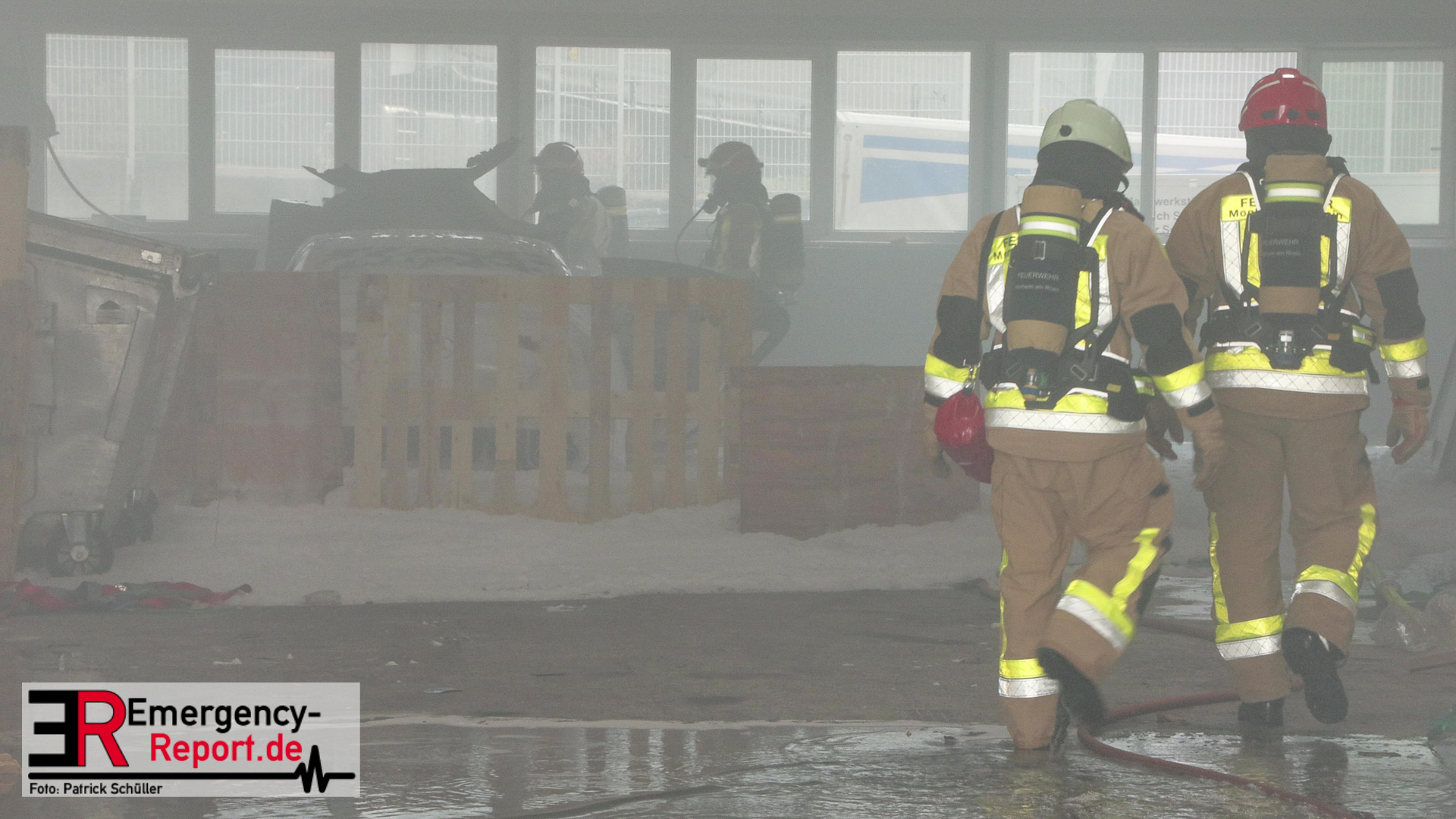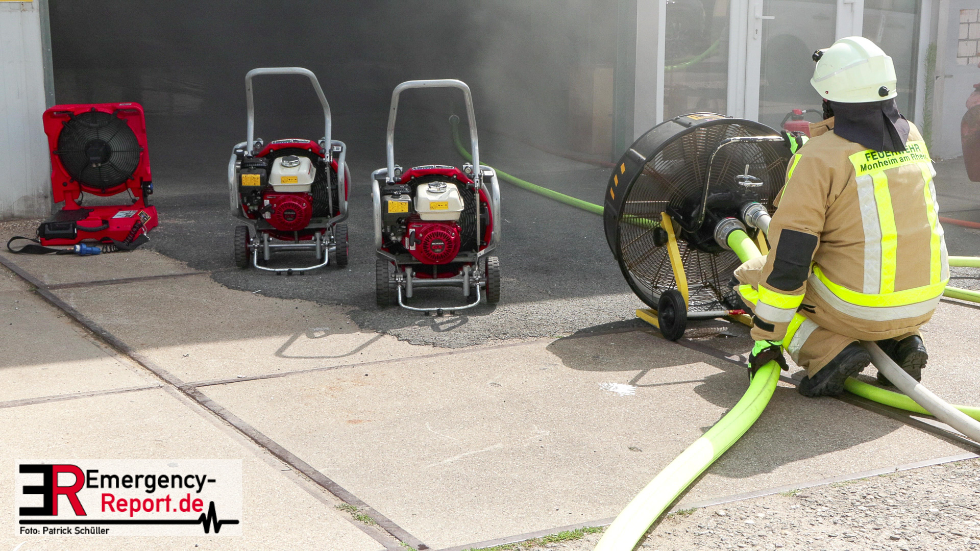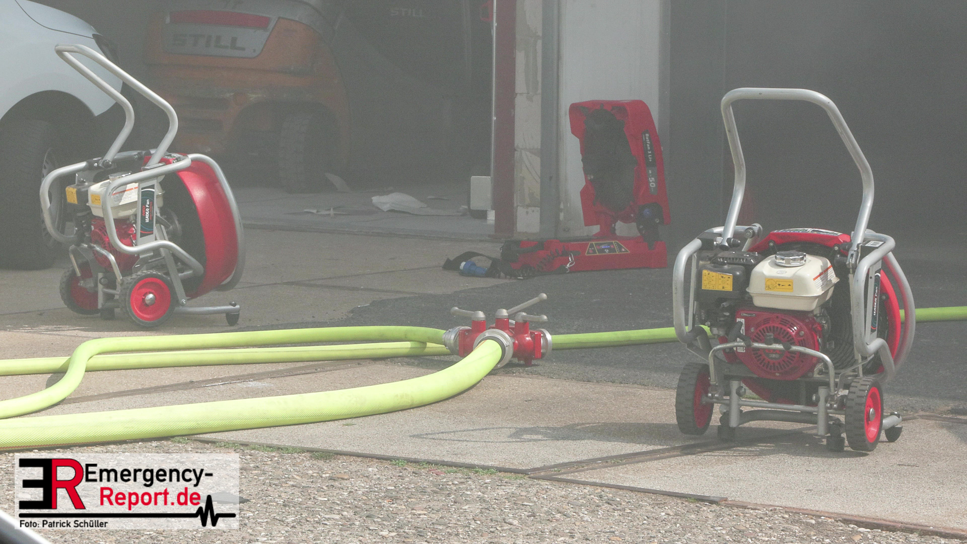 Die Feuerwehr Monheim wurde am Vormittag des 10.07.2023 zu einer Feuermeldung, auf die Niederstraße, alarmiert. Bei Eintreffen der ersten Einsatzkräfte stellte sich heraus, dass eine Halle massiv verraucht war. Der Grund für die starke Rauchentwicklung war ein brennender Mercedes im Gebäude. Durch den unverzüglich eingeleiteten Löschangriff konnte eine weitere Brandausbreitung verhindert werden. Aufgrund der enormen Verrauchung wurden umfangreiche Lüftungsmaßnahmen durchgeführt. Verletzt wurde niemand. Während der Einsatzmaßnahmen war die Niederstraße, im Bereich der Einsatzstelle, gesperrt. Die Polizei hat die Ermittlungen zur Brandursache aufgenommen.