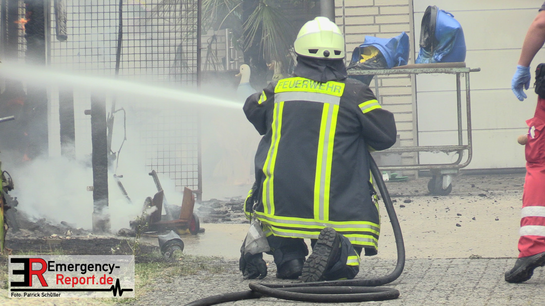 Die Feuerwehr Langenfeld wurde am frühen Nachmittag des 11.08.2019 gegen 13:40 Uhr zu einem Brandeinsatz auf die Hermann-Köhl-Straße alarmiert. Bereits auf der Anfahrt war eine starke Rauchentwicklung für die Kräfte sichtbar. Bei Eintreffen der ersten Einsatzkräfte stellte sich heraus, dass ein Kaninchenstall und mehrere Bäume in voller Ausdehnung brannten. Umgehend wurde damit begonnen die Kaninchen in Sicherheit zu bringen, dennoch verendeten einige der Tiere in den Flammen. Parallel zu der Tierrettung wurde der Löschangriff eingeleitet und eine weitere Brandausbreitung verhindert. Die Polizei hat die Ermittlungen zur Brandursache aufgenommen.