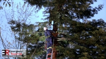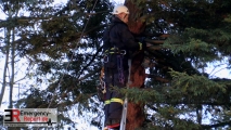 Durch die Einsatzkräfte der Feuerwehr Erkrath wurde als erste Maßnahme das untere Astwerk mittels einer Motorkettensäge entfernt, sodass eine 3-teilige Steckleiter in Stellung gebracht und ein Feuerwehrmann mit Höhensicherungsausrüstung im gesicherten Vorstieg zu dem Jungen vorsteigen und ihn sichern konnte.