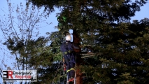 Dort befand sich ein 6 Jahre alter Junge in ca. 10 Meter Höhe auf einer Tanne, die er zuvor hinaufgeklettert war und nun nicht mehr herunter kam. Aufmerksame Spaziergänger wurden auf die Situation aufmerksam und alarmierten folgerichtig die Feuerwehr. Noch auf der Anfahrt zur Einsatzstelle wurden zusätzlich die speziell für solche Einsätze ausgebildeten Höhenretter der Berufsfeuerwehr Düsseldorf nachalarmiert.